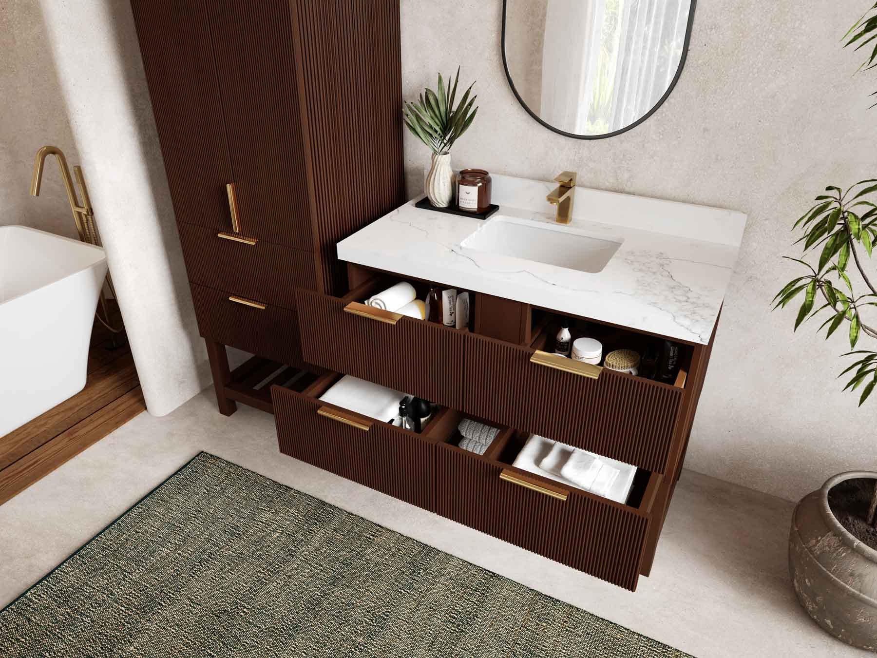 Vanity Countertops options: For Calacatta Laza Quartz, Empira White Quartz, Pure White Quartz, Palissandro Quartz, Calacatta Nuvo Quartz, Carrara Marble, Carrara Quartz, Piatra Gray Quartz, Pearl Light Gray Quartz, Calacatta Black Quartz, Calacatta Gold Quartz, Calacatta Sienna Quartz, Calacatta Poanazzo Quartz, Venatino Quartz, Viola Brown Quartz, Viola Gold Quartz, Viola Night Quartz, Viola Biagio Quartz, Berkshire Brass Quartz, Frosty Carrara Quartz, Onyx Quartz we have Straight - Mitered Edge option.