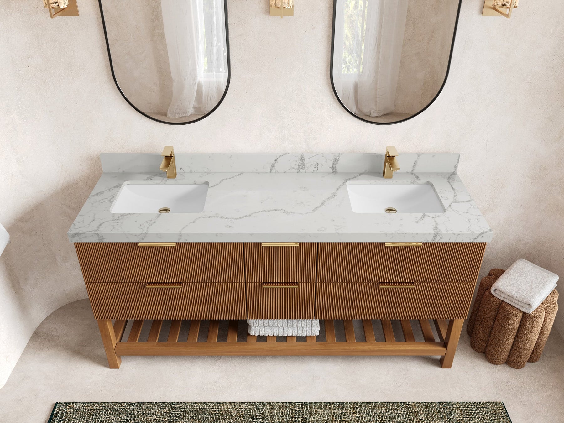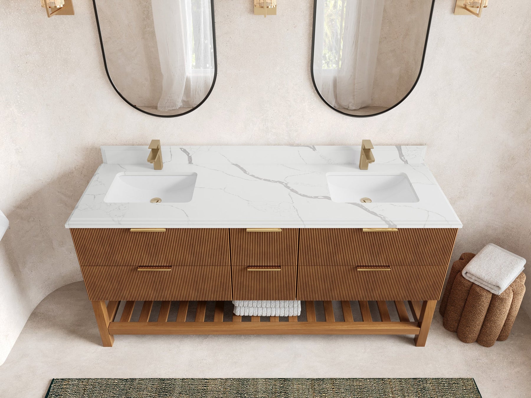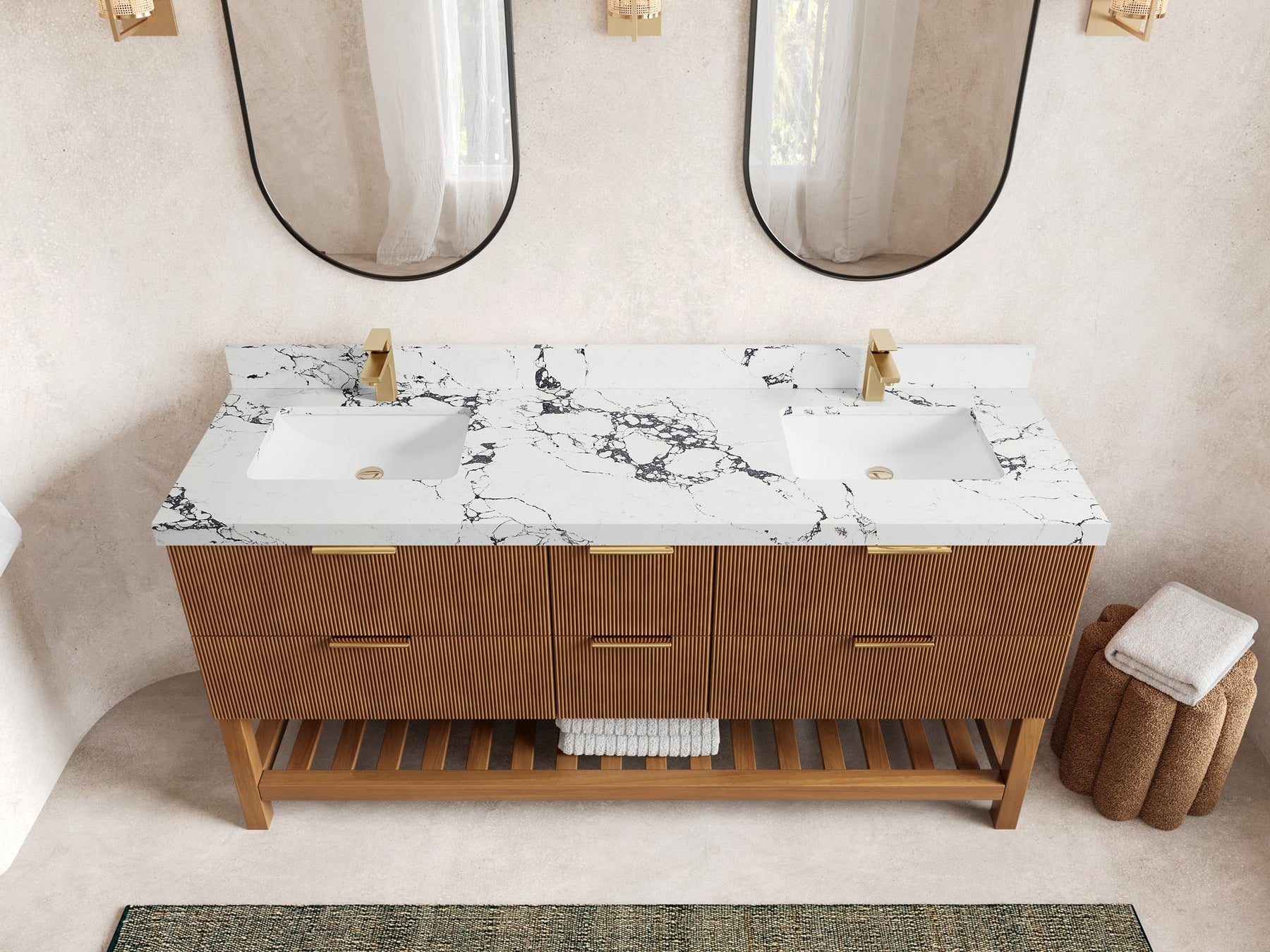 Faucet Hole(S): Comes with Single Faucet, 8 (in.) Widespread Faucet, Wall mount Faucets - Only Available for White Quartz and Carrara Quartz. (PLEASE ADD THIS CONFIGURATION UNDER COUNTERTOPS SECTION )