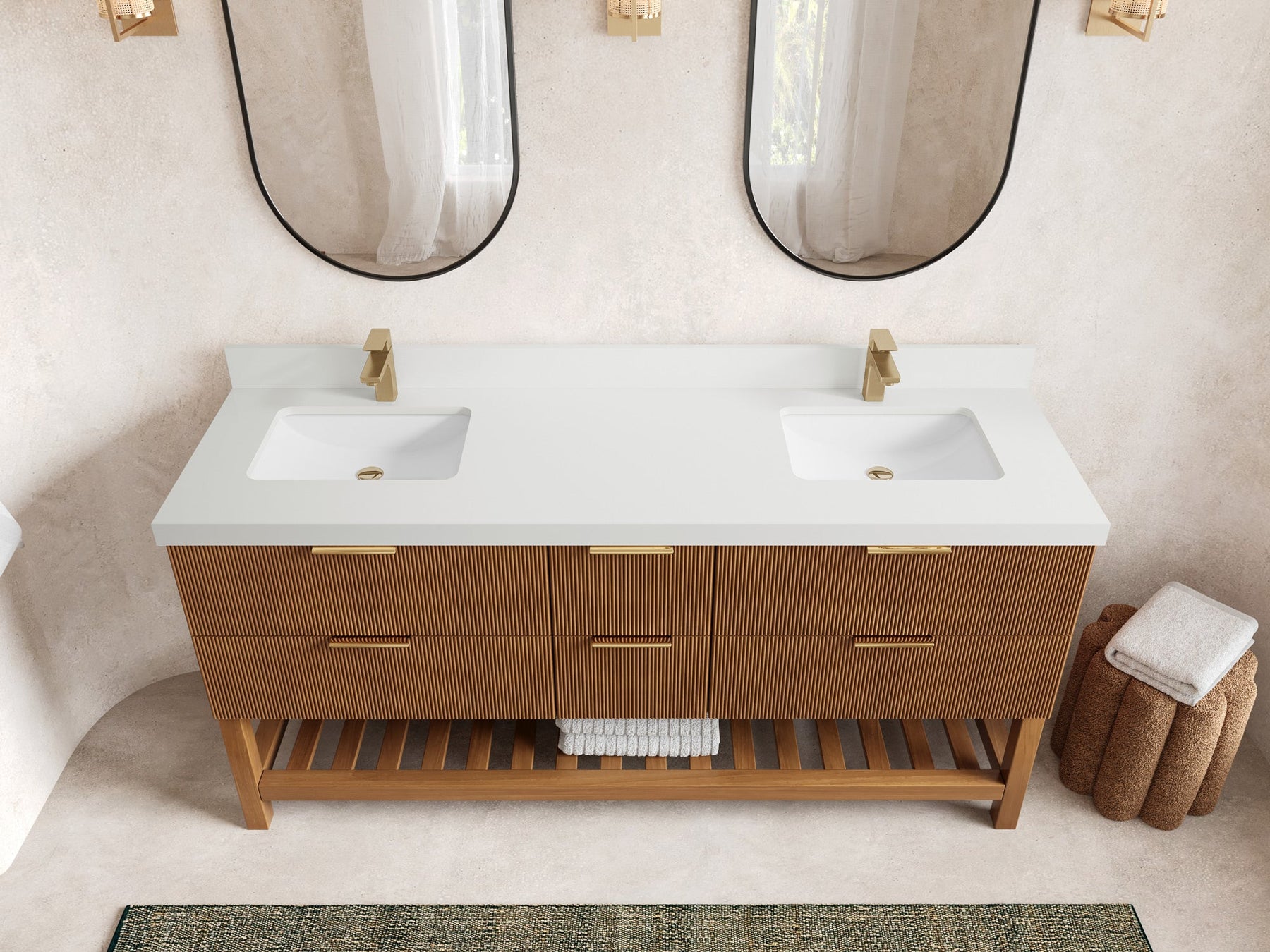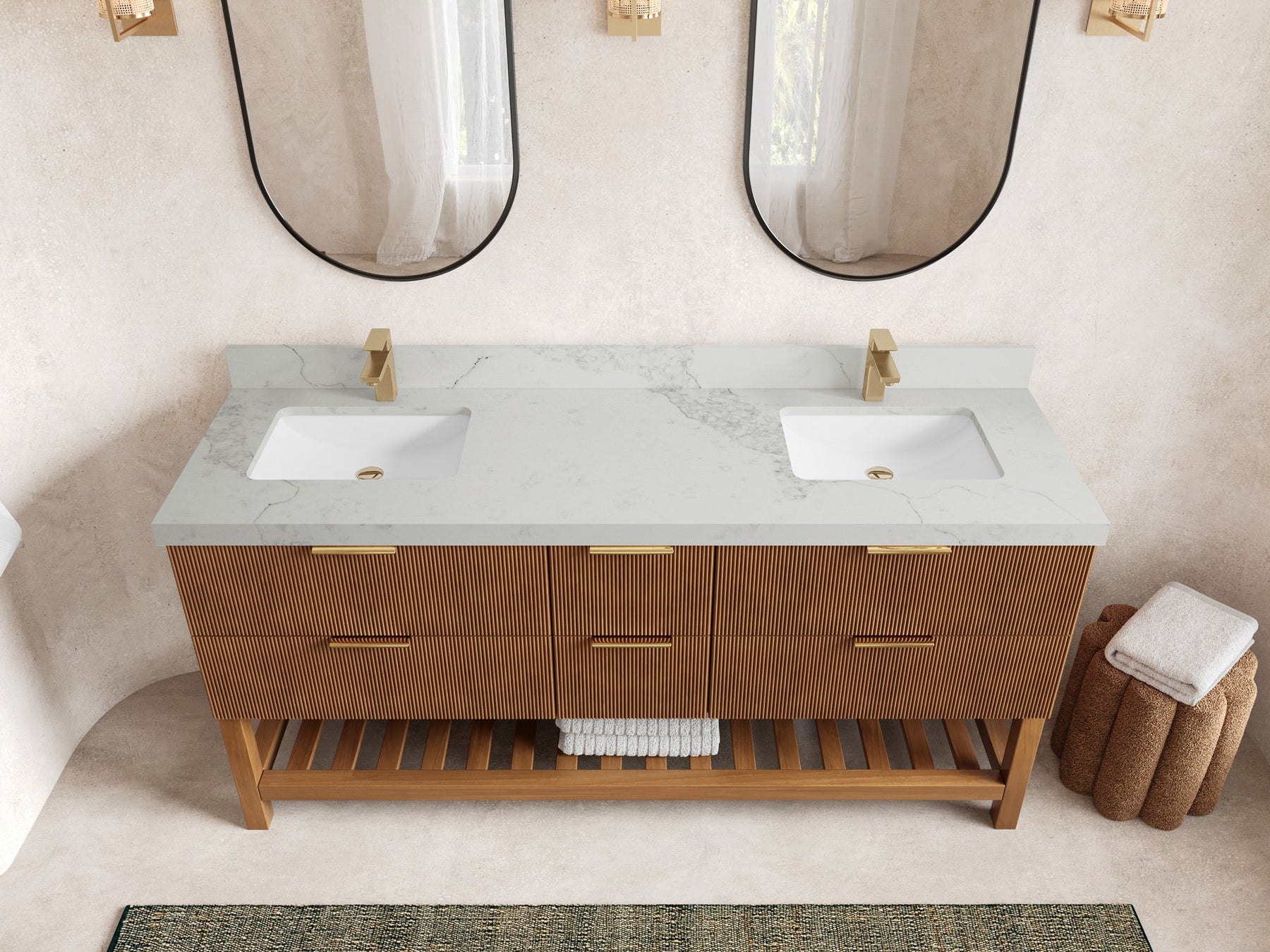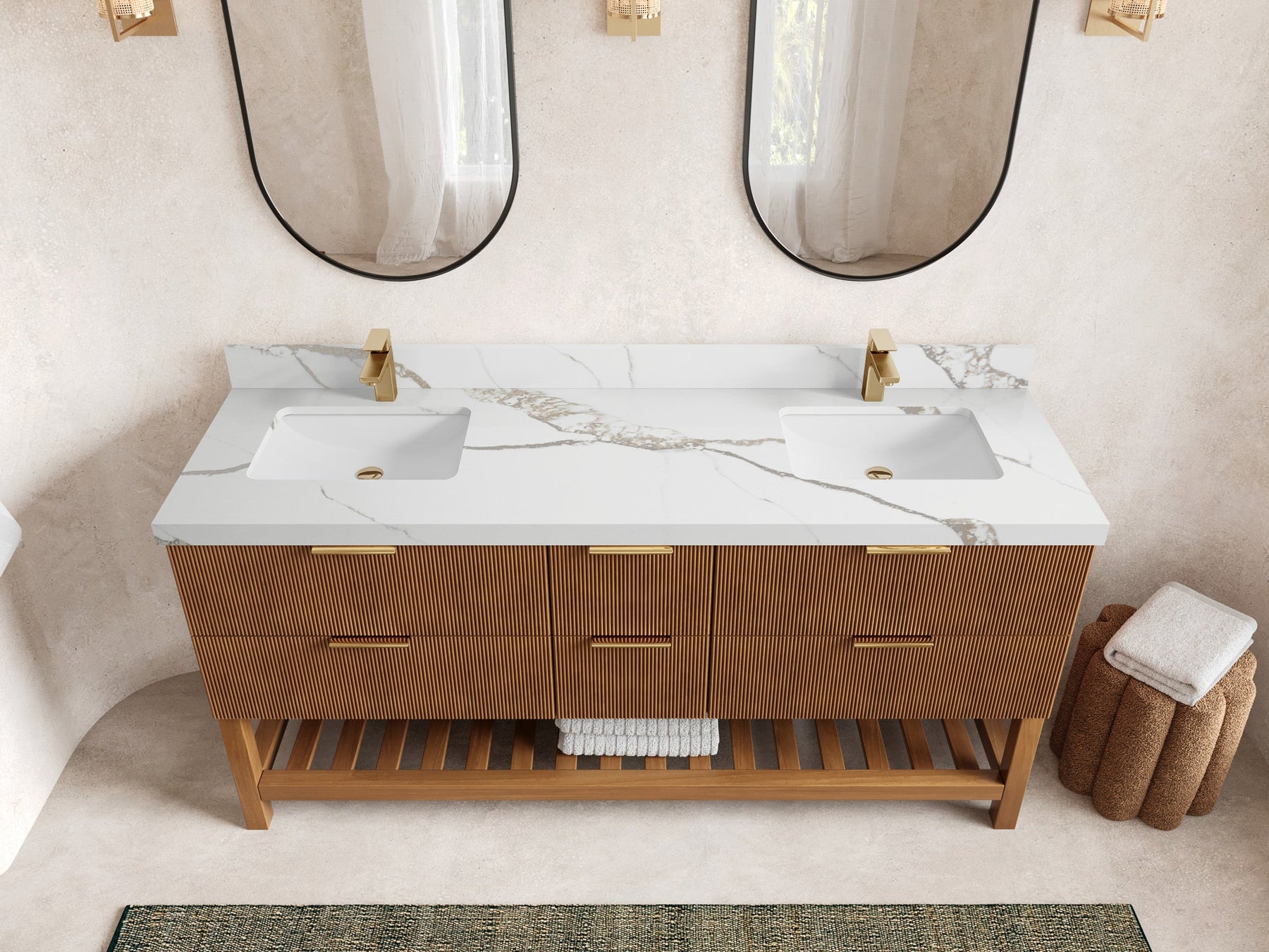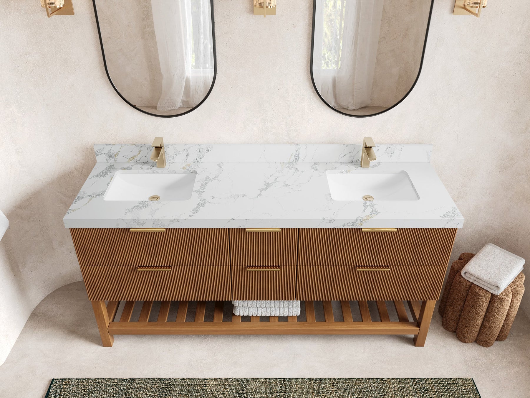 Faucet Hole(S): Comes with Single Faucet, 8 (in.) Widespread Faucet, Wall mount Faucets - Only Available for White Quartz and Carrara Quartz. (PLEASE ADD THIS CONFIGURATION UNDER COUNTERTOPS SECTION )