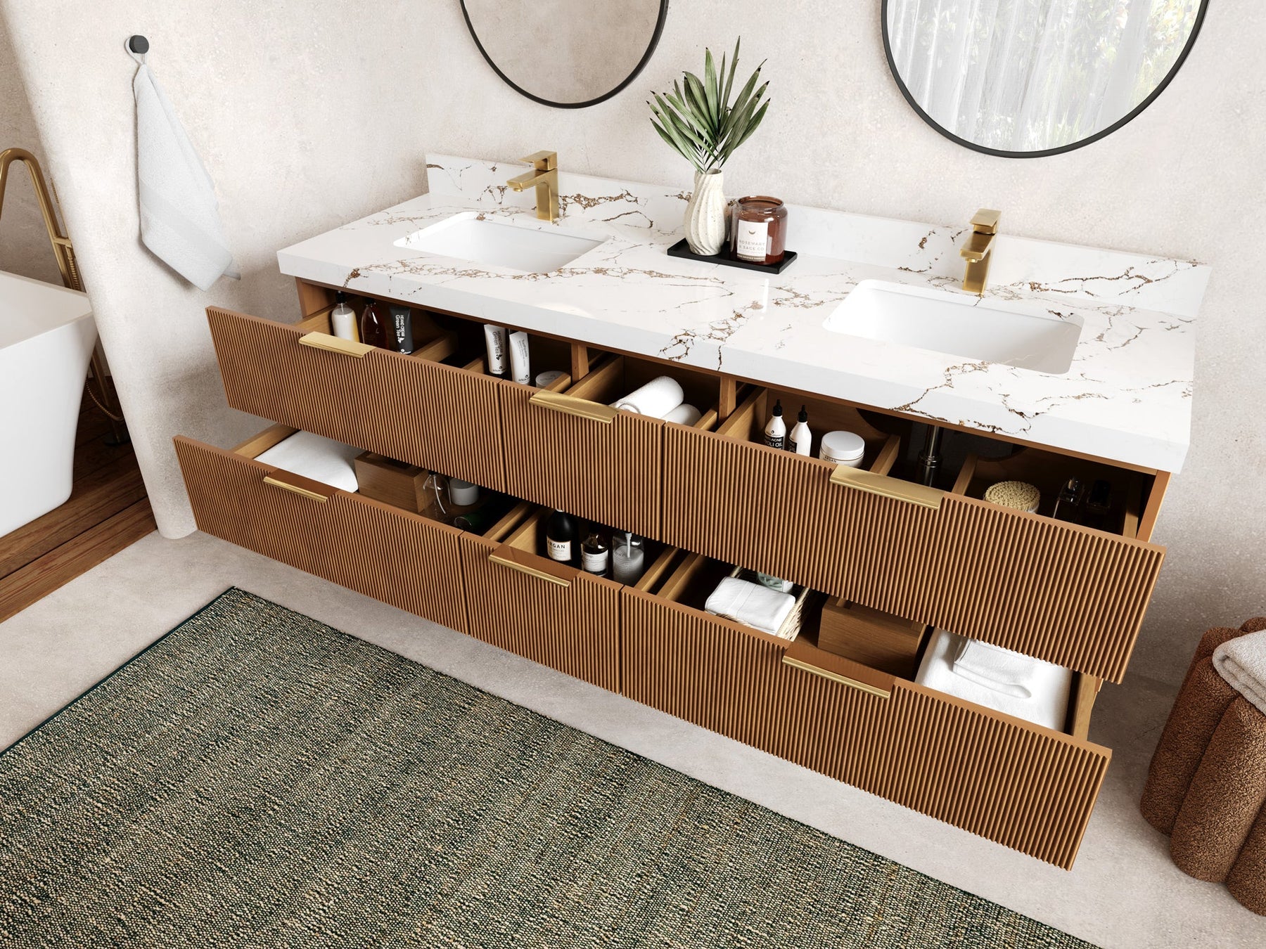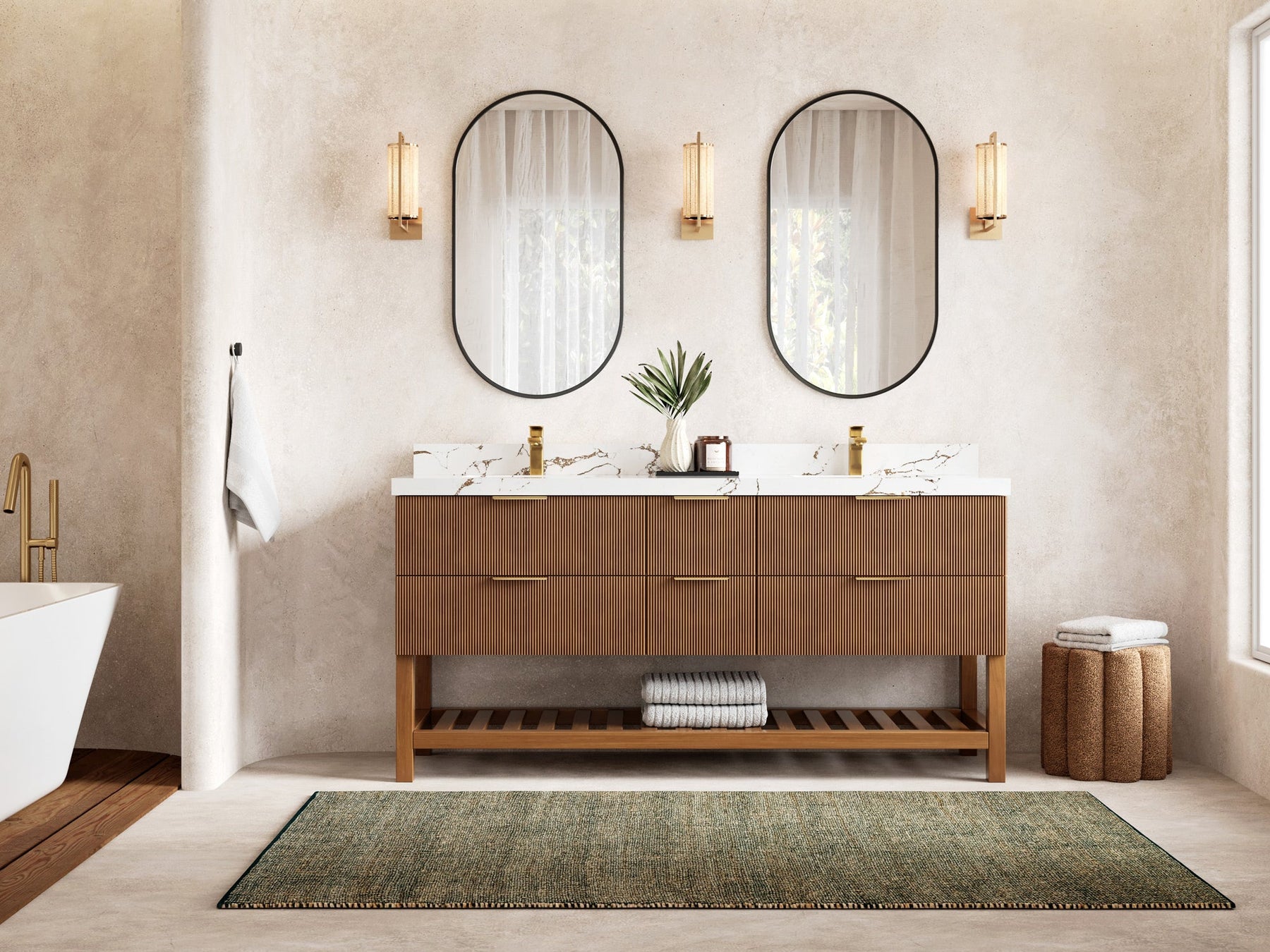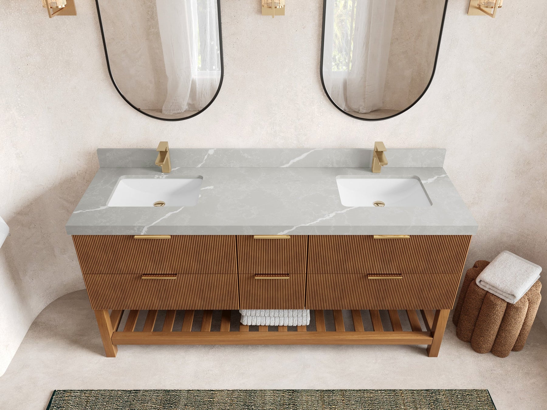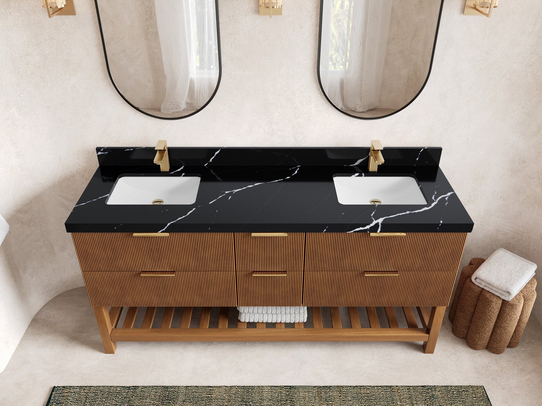 Vanity Countertops options: For Calacatta Laza Quartz, Empira White Quartz, Pure White Quartz we have 2 options Straight-Mitered Edge & Double Cove Edge, For Calacatta Black Quartz, Calacatta Gold Quartz, Calacatta Nuvo Quartz, Carrara Marble, Carrara Quartz, Pearl Light Gray Quartz, Piatra Gray Quartz, Venatino Quartz, and Light Concrete Gray Quartz we only have Straight - Mitered Edge option.