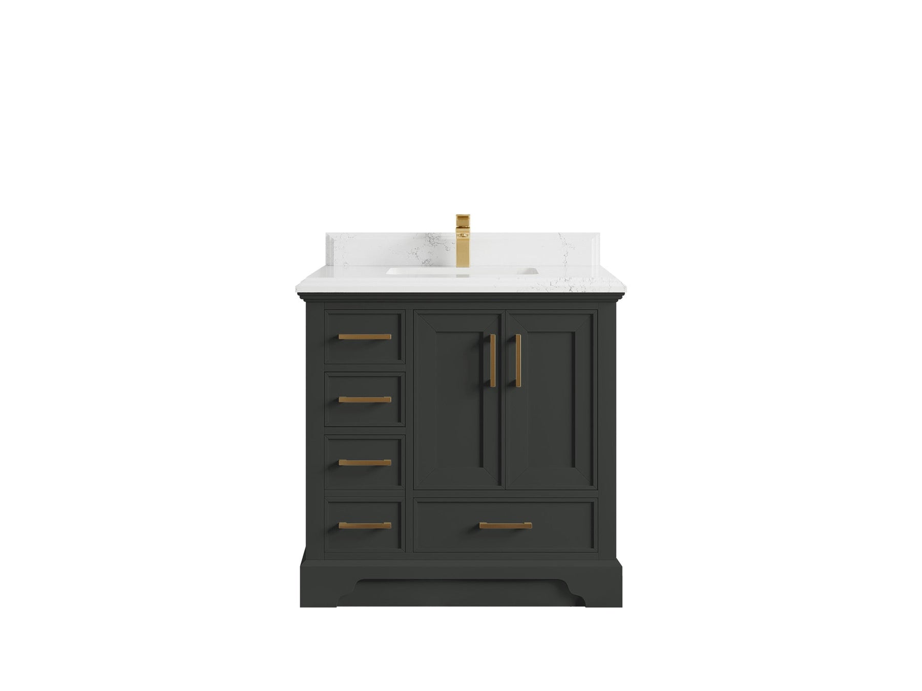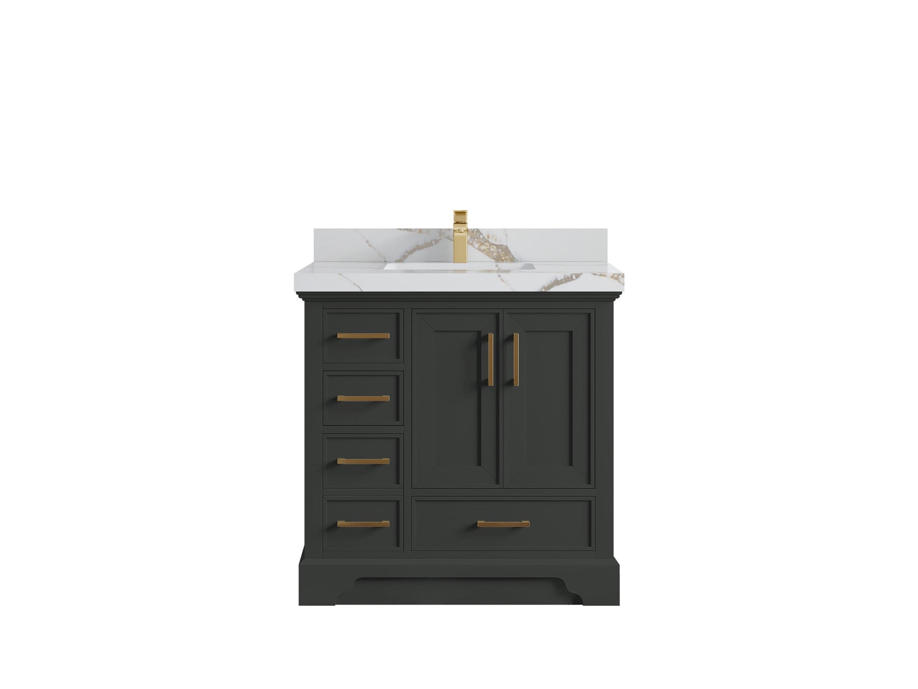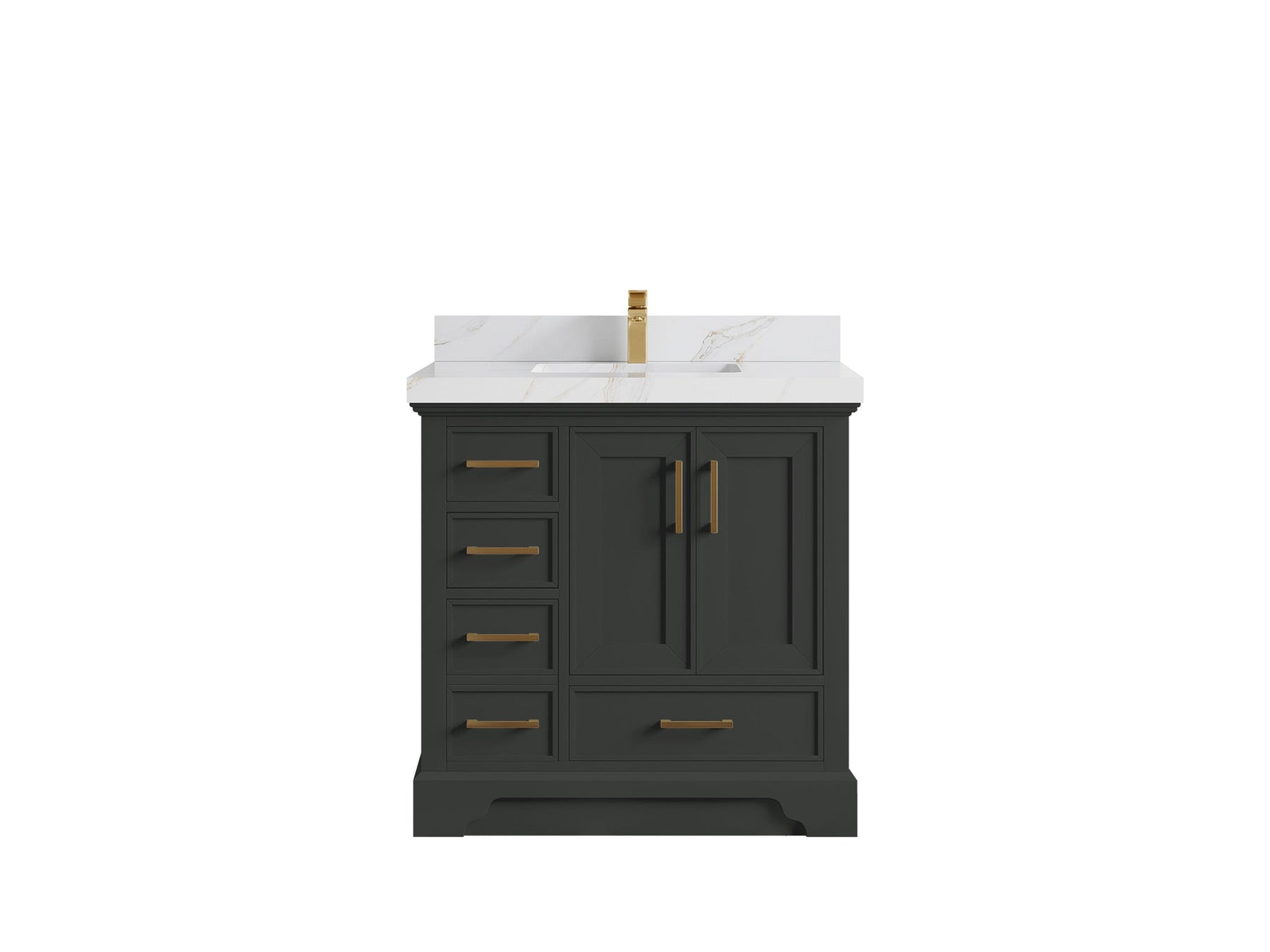 Catalina 36 in. W x 22 in. D Single Sink Bathroom Vanity in Black with 2 in Calacatta Laza Quartz Countertop