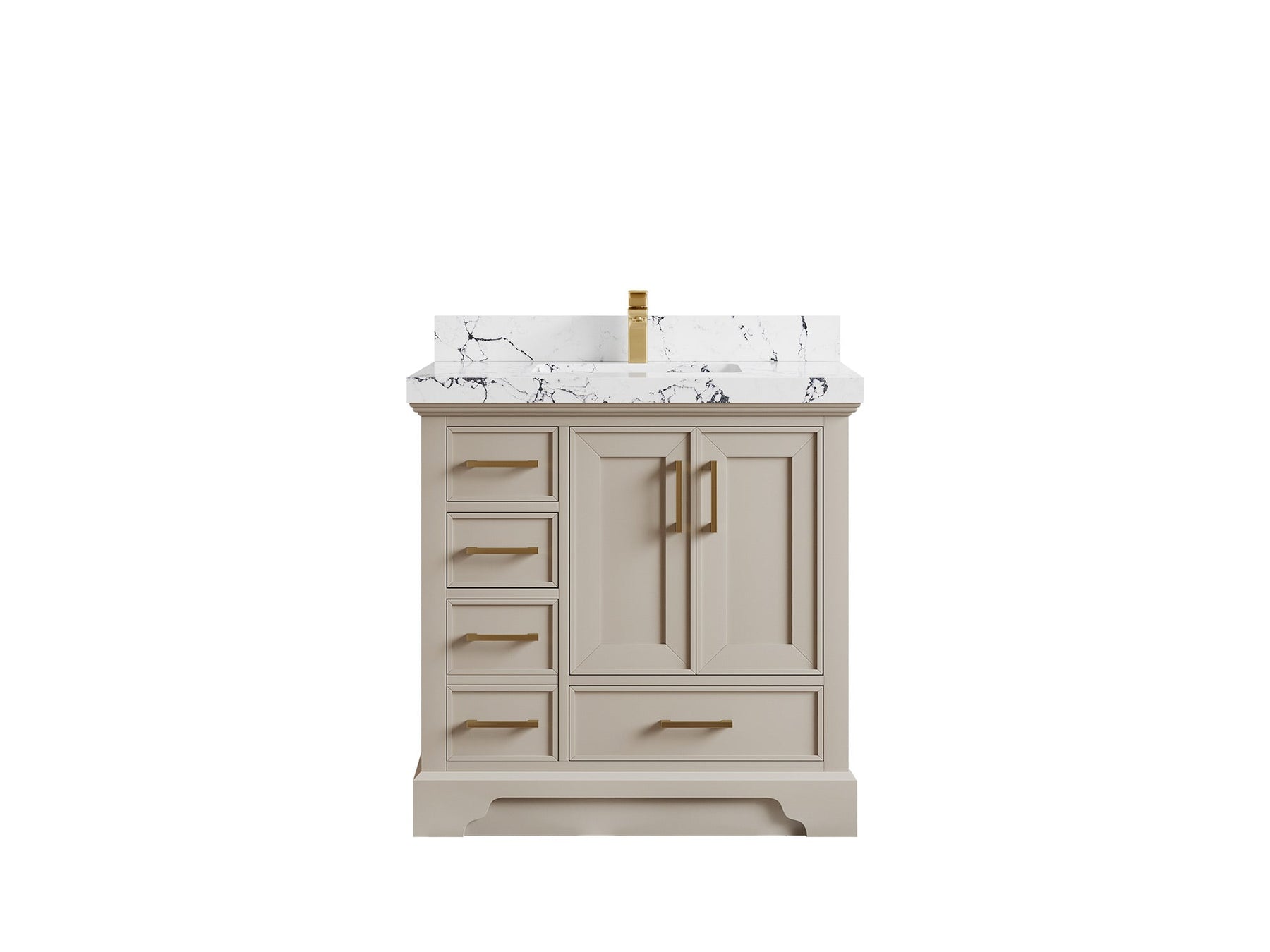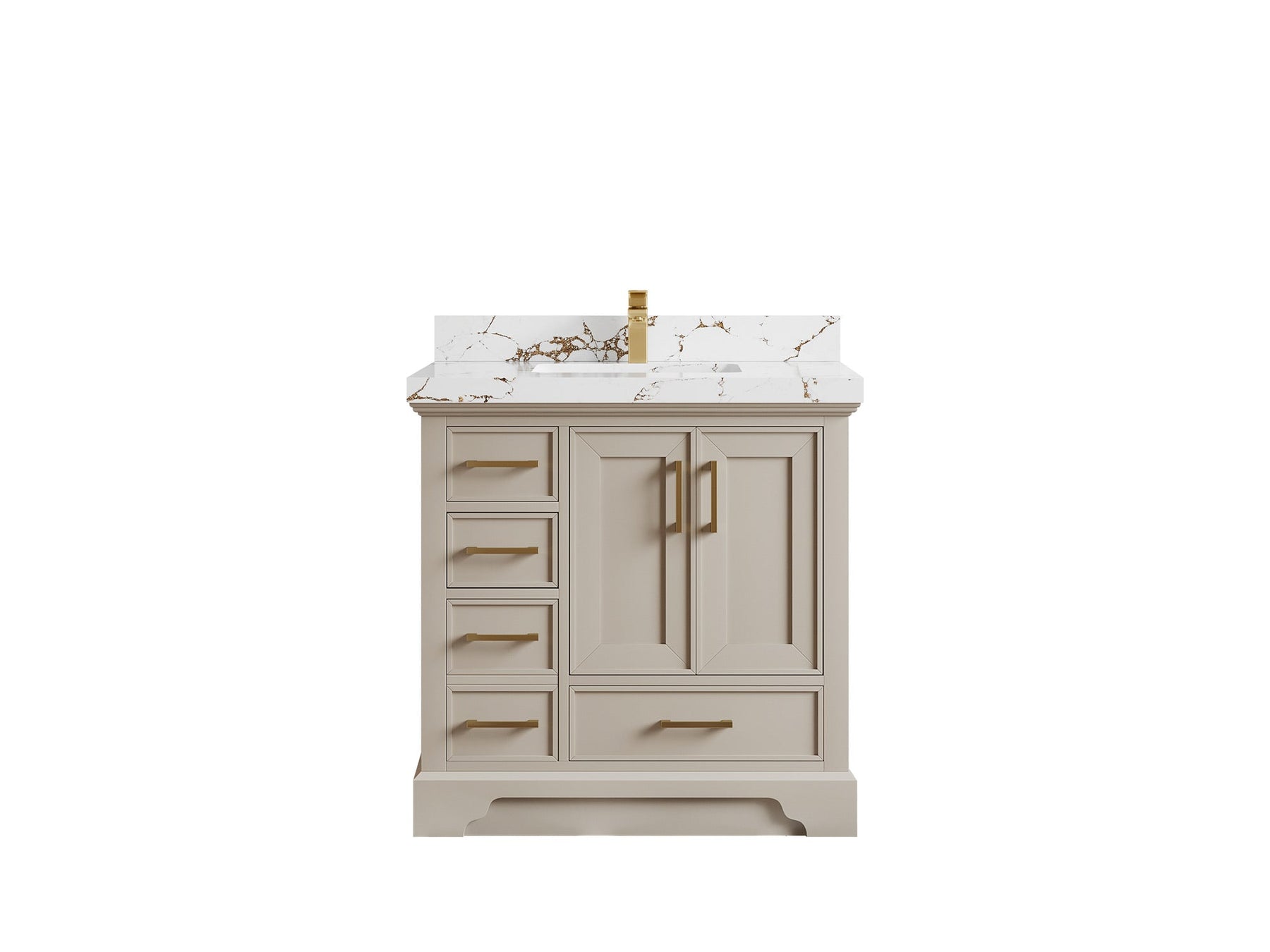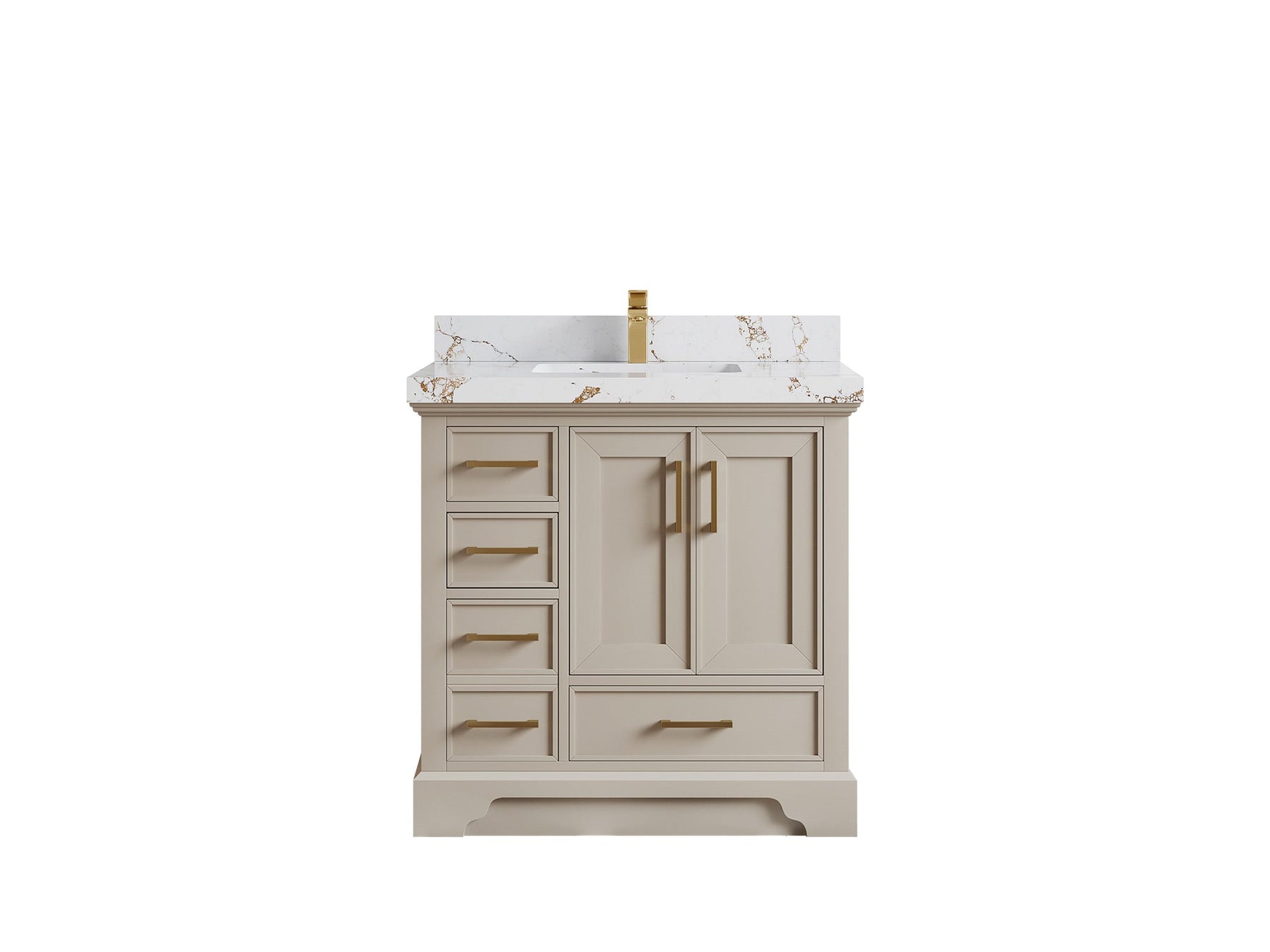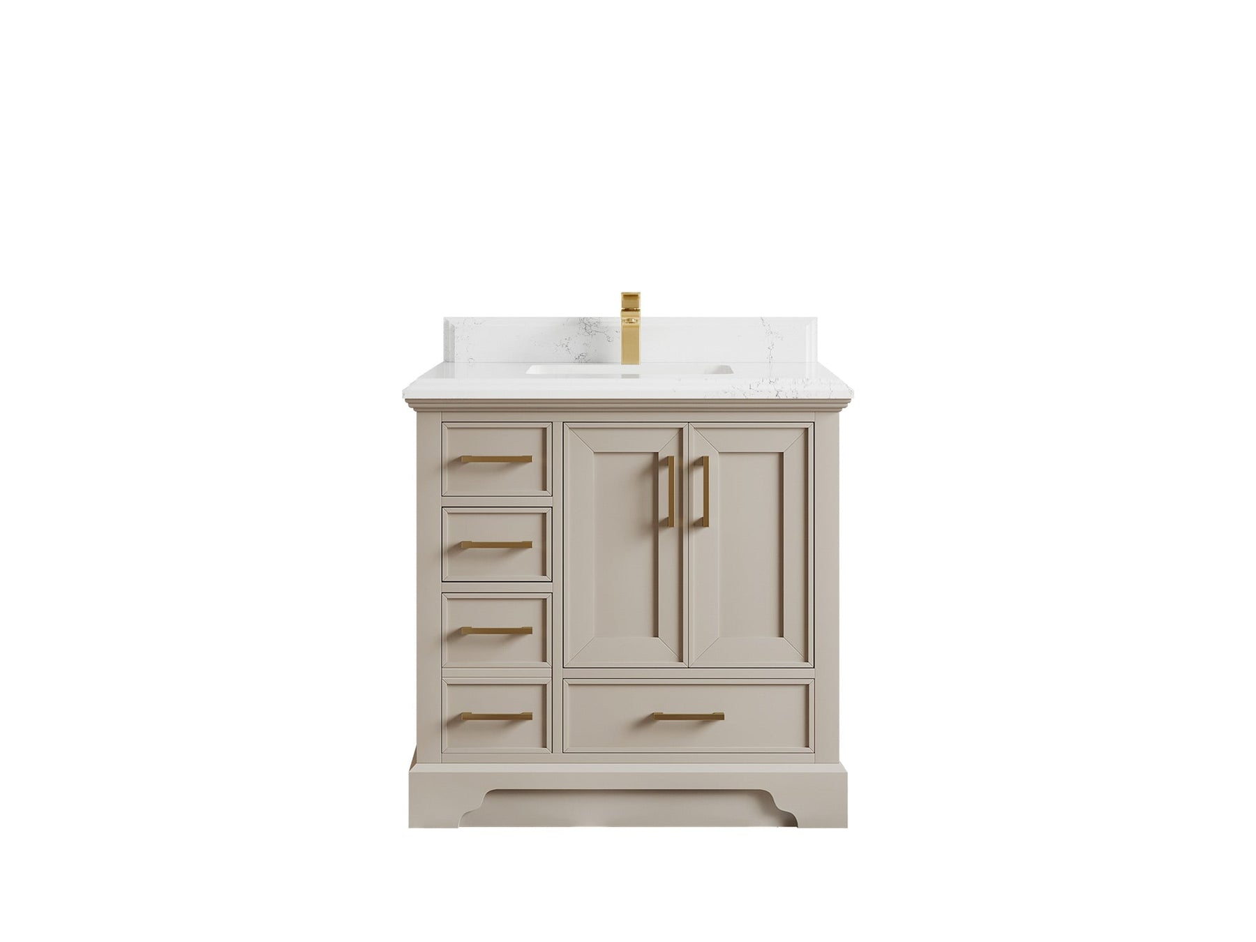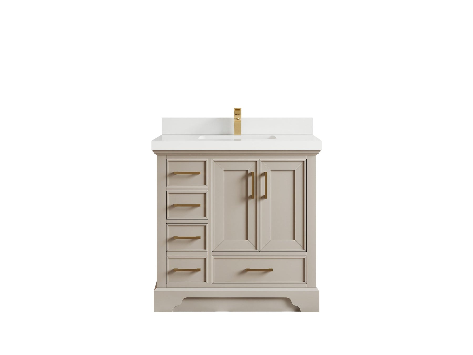 Choose from our range of bathroom vanities with quartz countertops to perfectly match your bathroom's style and color scheme. Our countertops are designed to withstand daily use and are resistant to scratches, stains, and heat.
