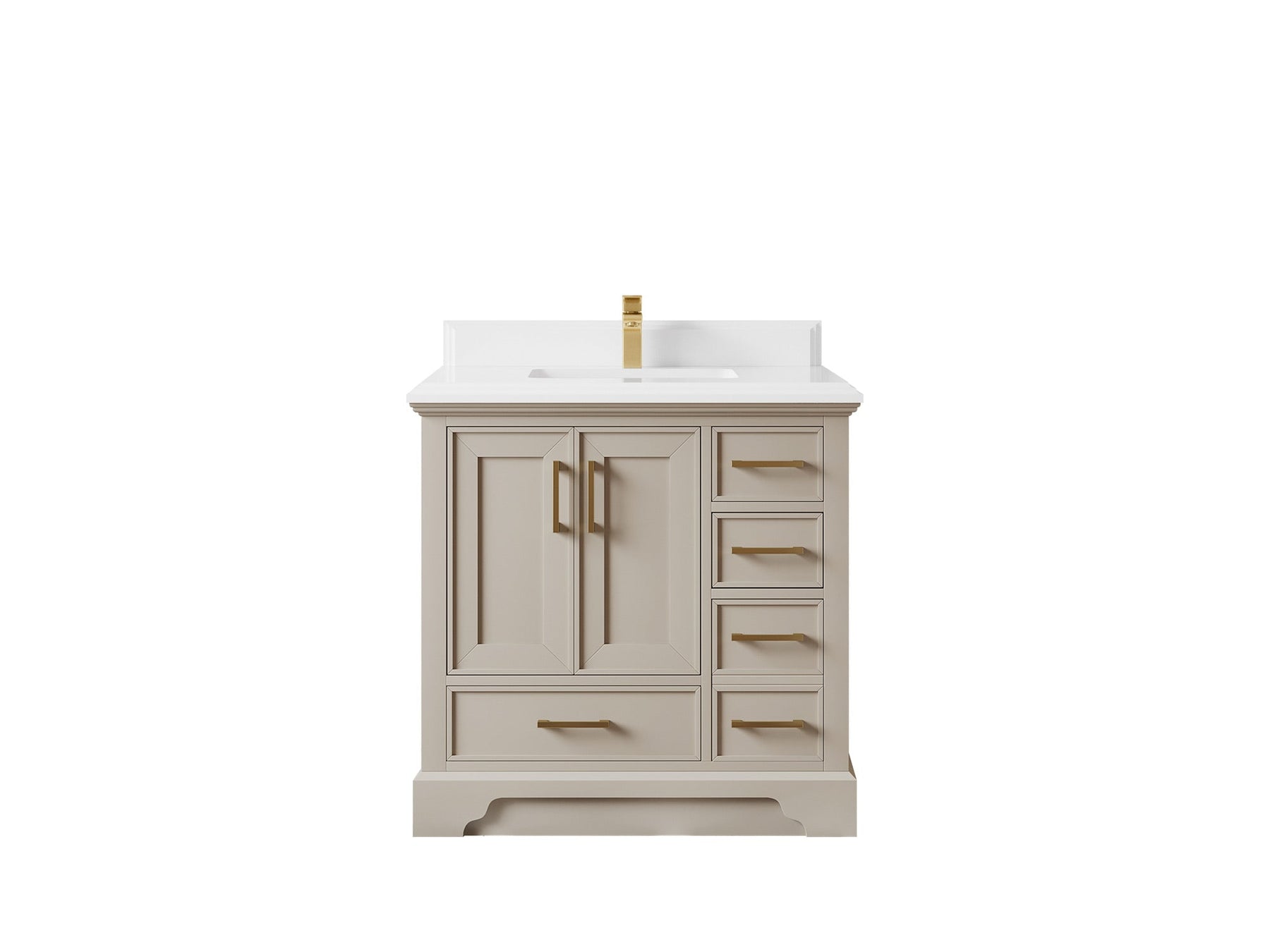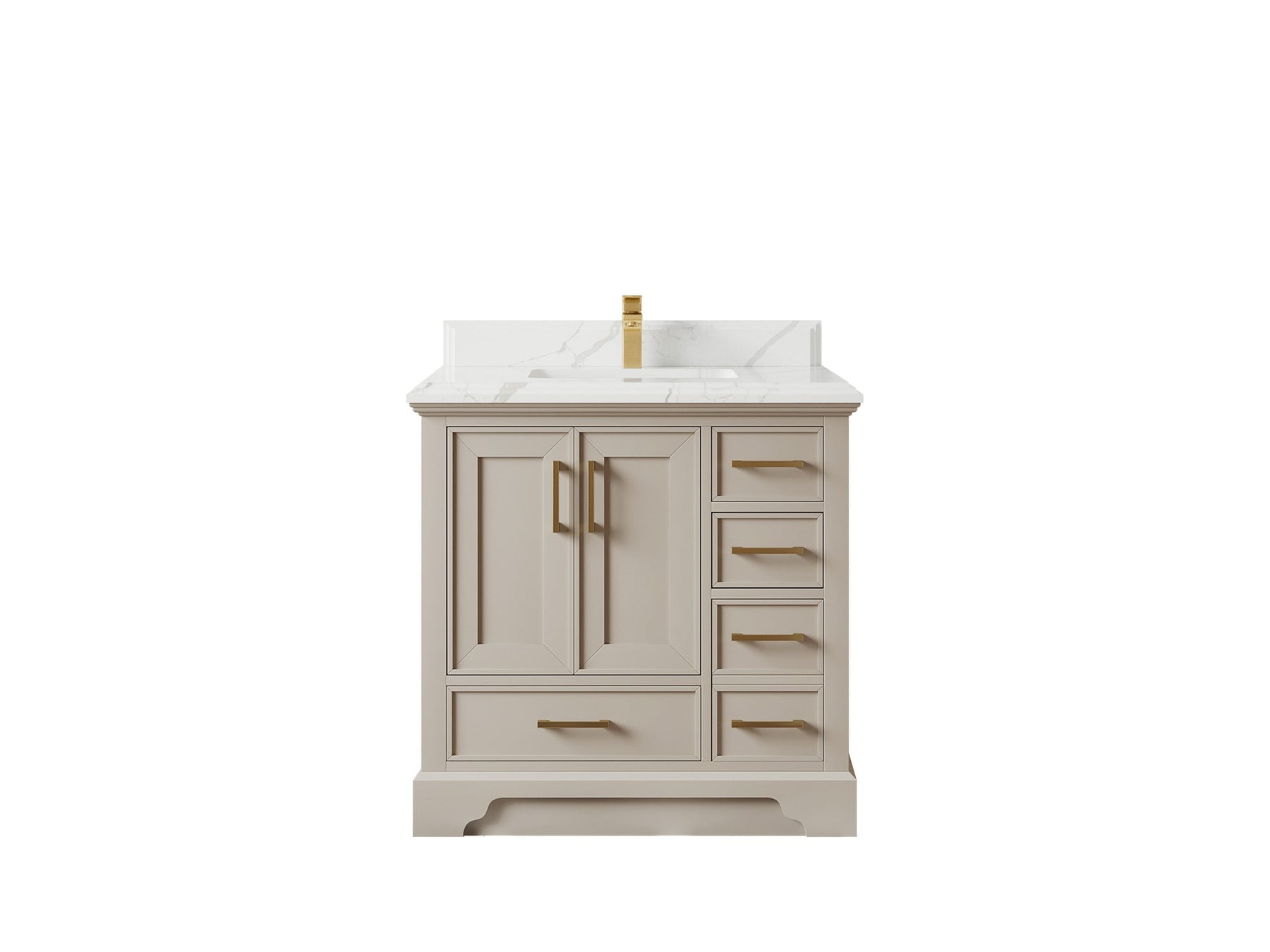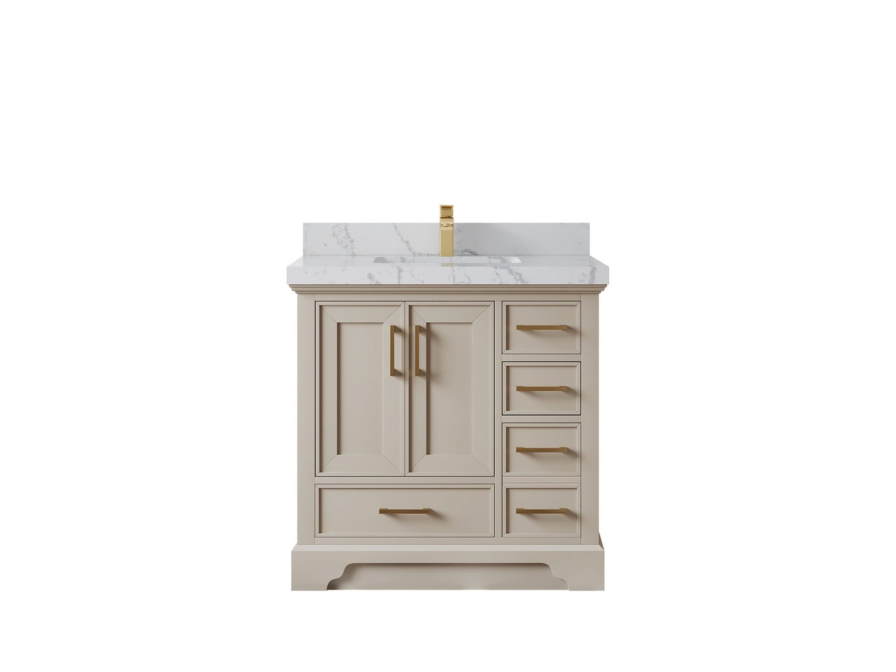 Choose from our range of bathroom vanities with quartz countertops to perfectly match your bathroom's style and color scheme. Our countertops are designed to withstand daily use and are resistant to scratches, stains, and heat.
