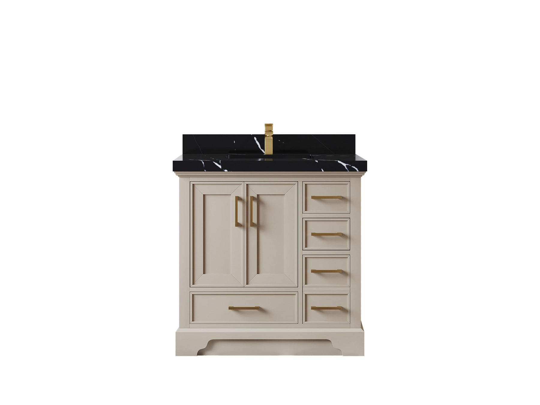 Catalina 36 in. W x 22 in. D Single Sink Bathroom Vanity in Black with 2 in Calacatta Laza Quartz Countertop