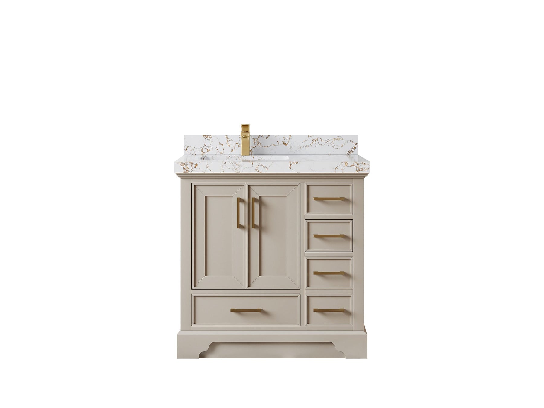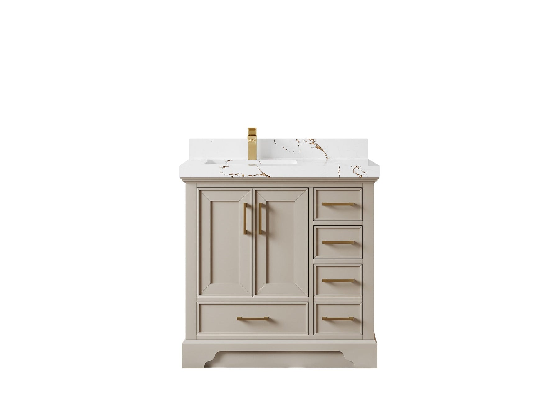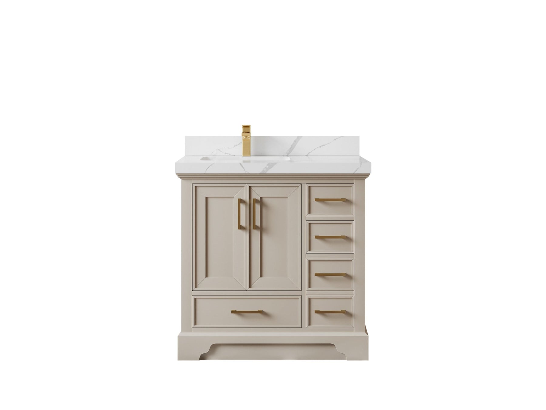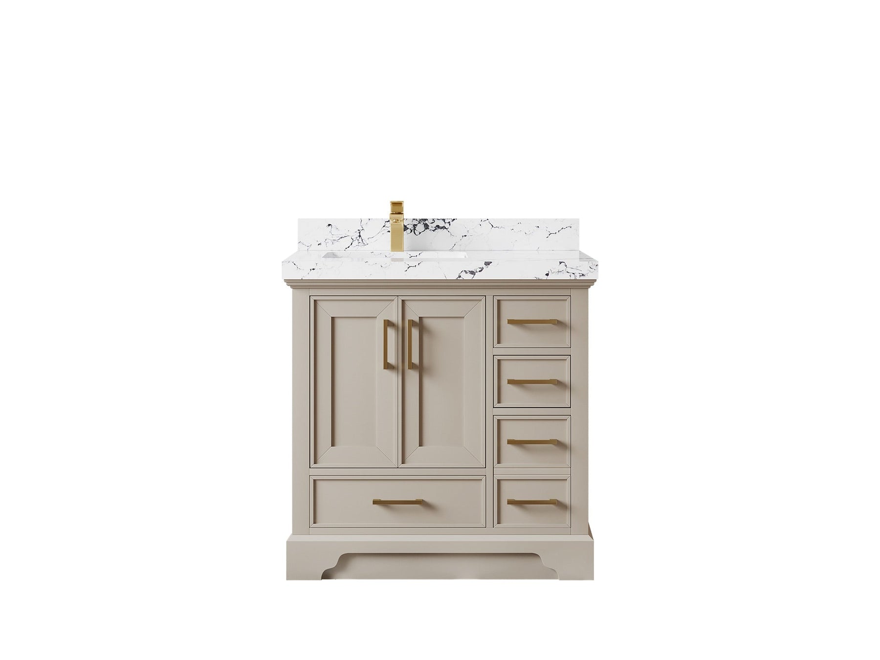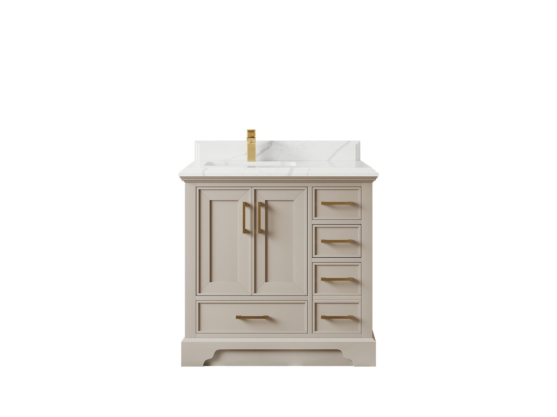 Choose from our range of bathroom vanities with quartz countertops to perfectly match your bathroom's style and color scheme. Our countertops are designed to withstand daily use and are resistant to scratches, stains, and heat.