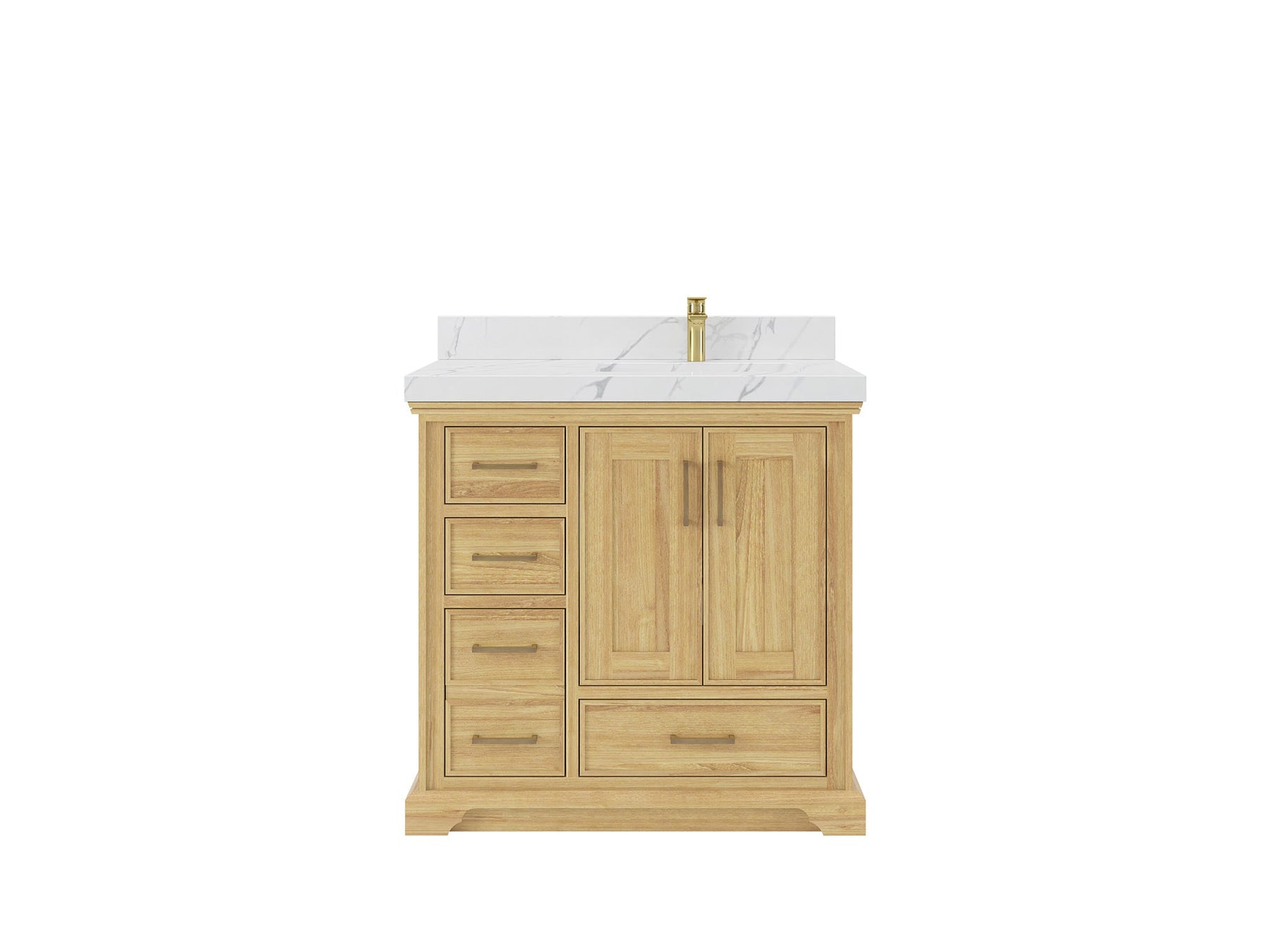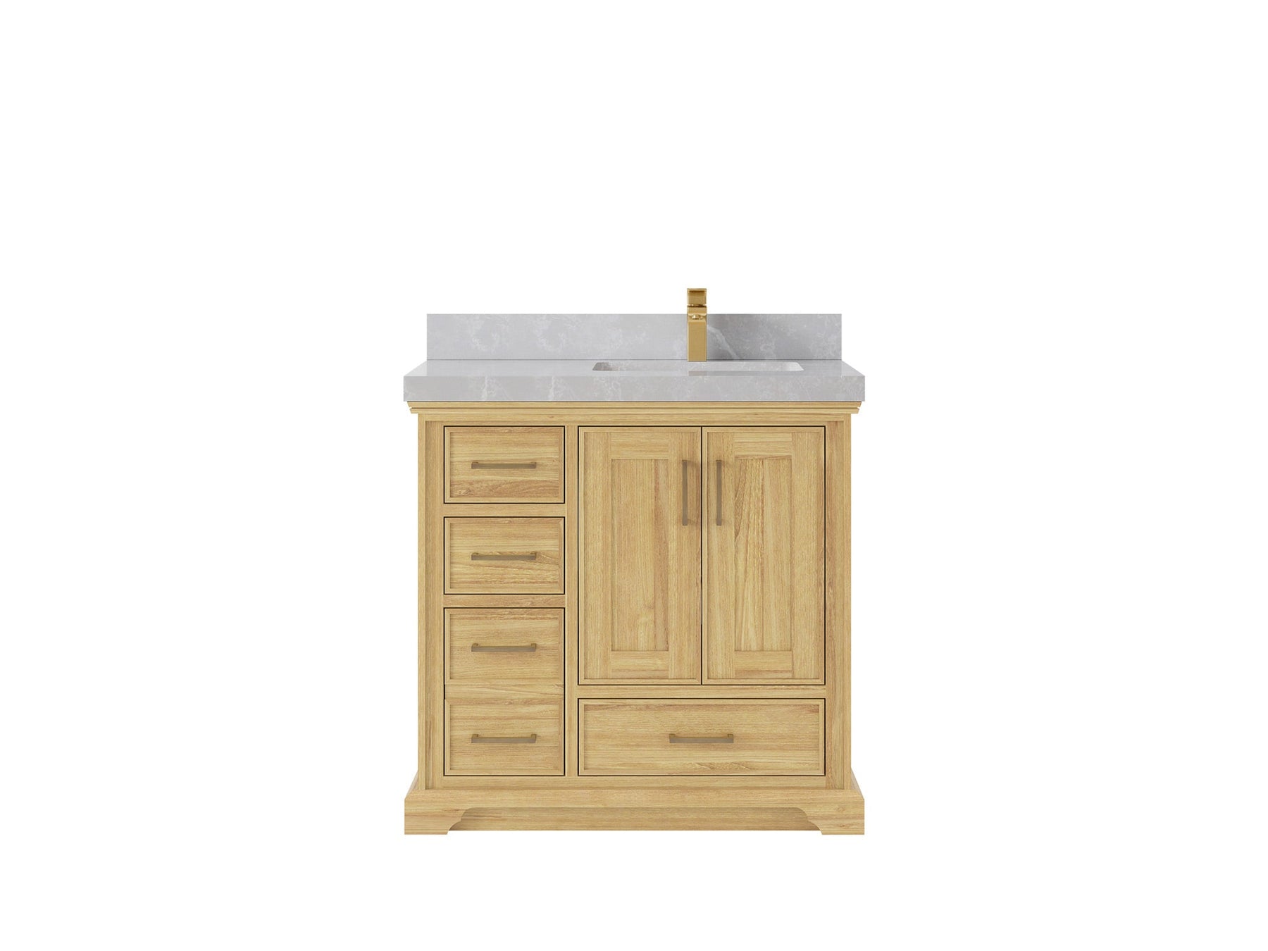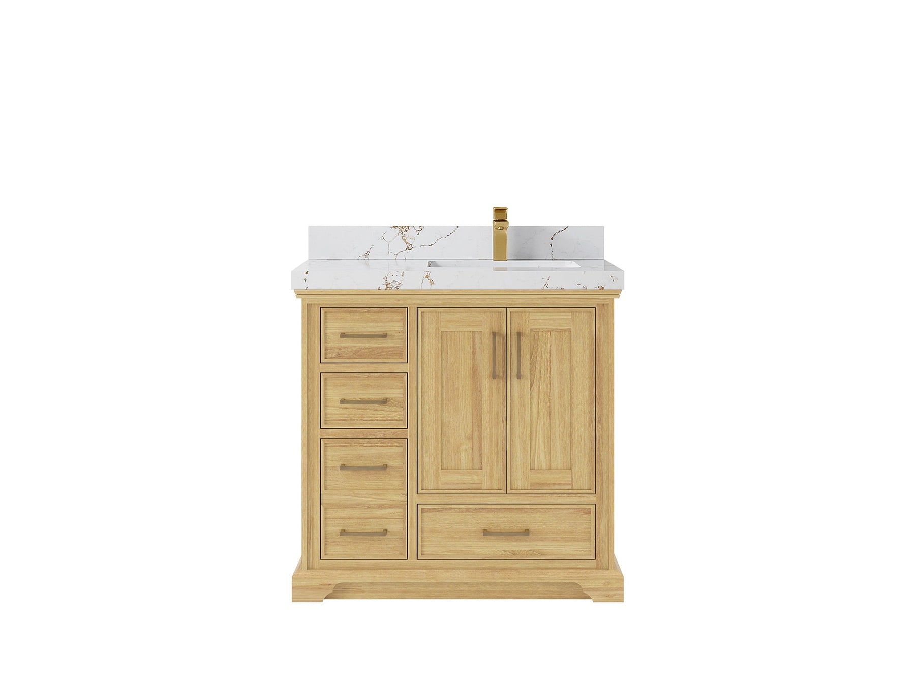 Charlotte Teak 36 in. W x 22 in. D Right Offset Sink Bathroom Vanity in Light Natural - Cabinet Only