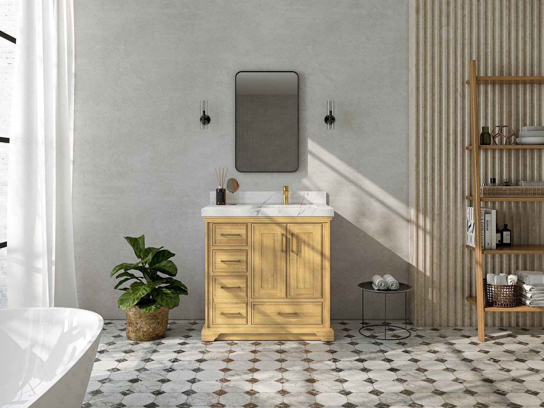 Charlotte 36 in. W x 22 in. D Right Offset Sink Bathroom Teak Wood Vanity | Light Natural Teak