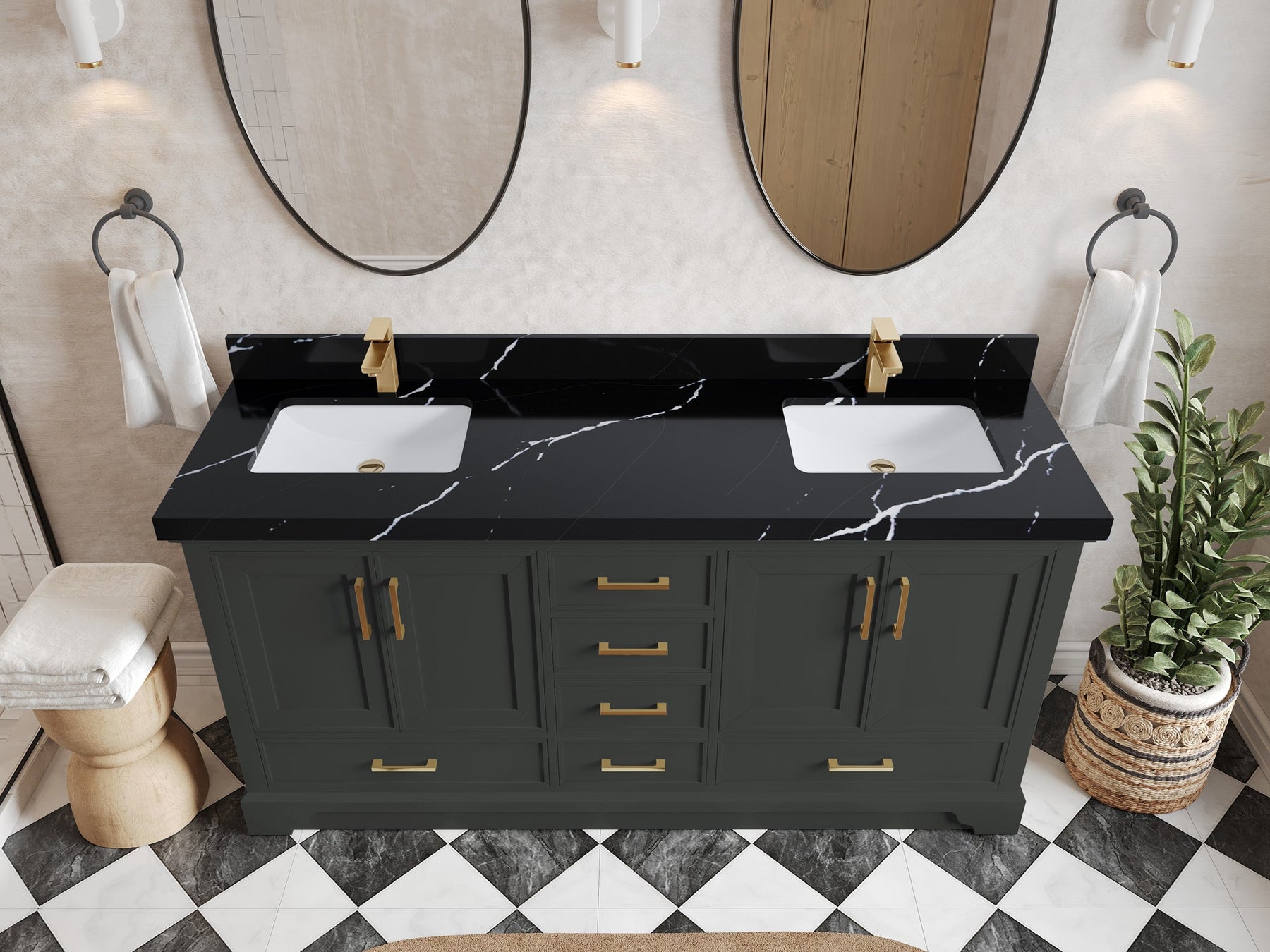 Charlotte 72 in. W x 22 in. D Double Sink Bathroom Vanity | Black Top