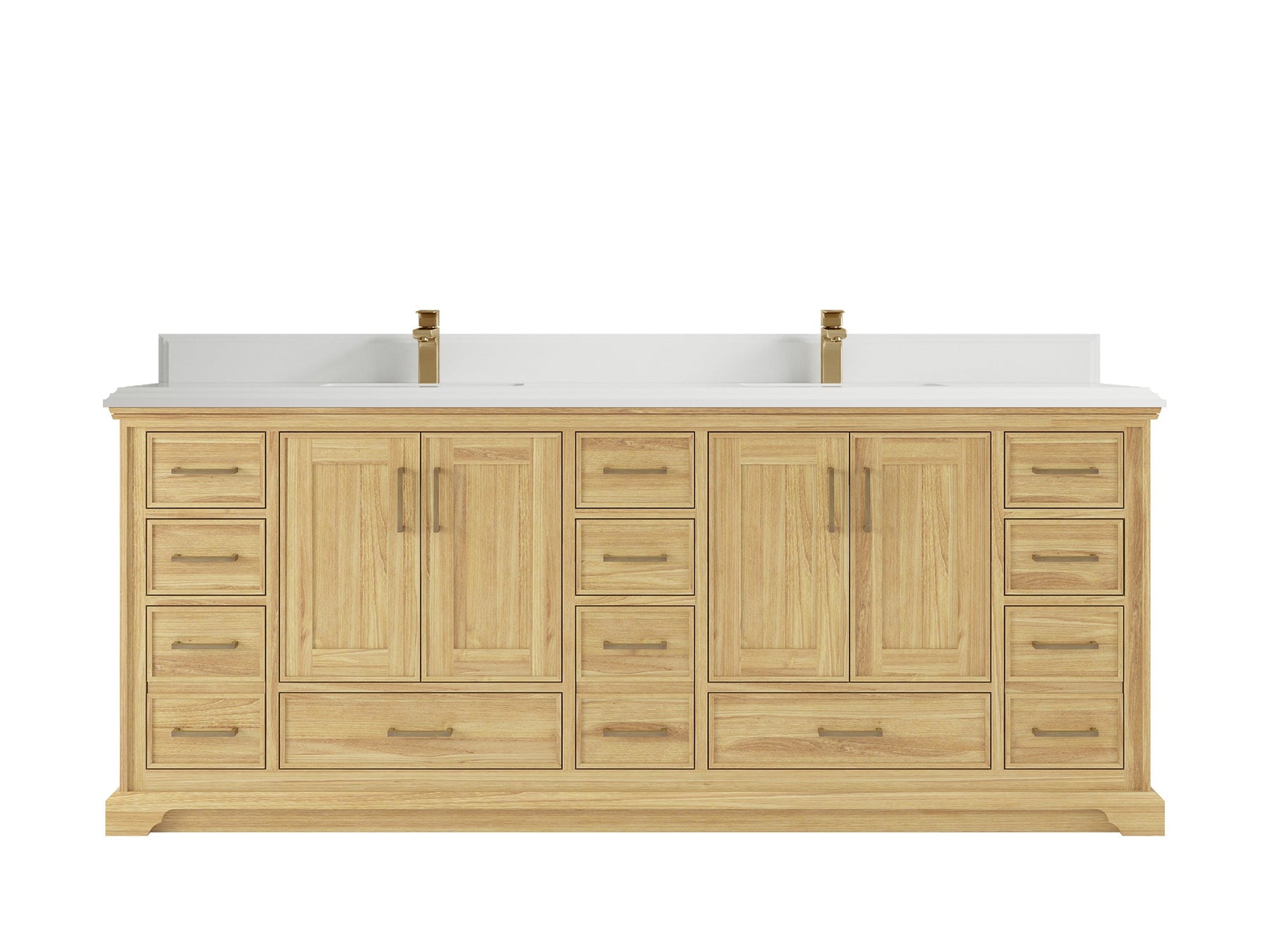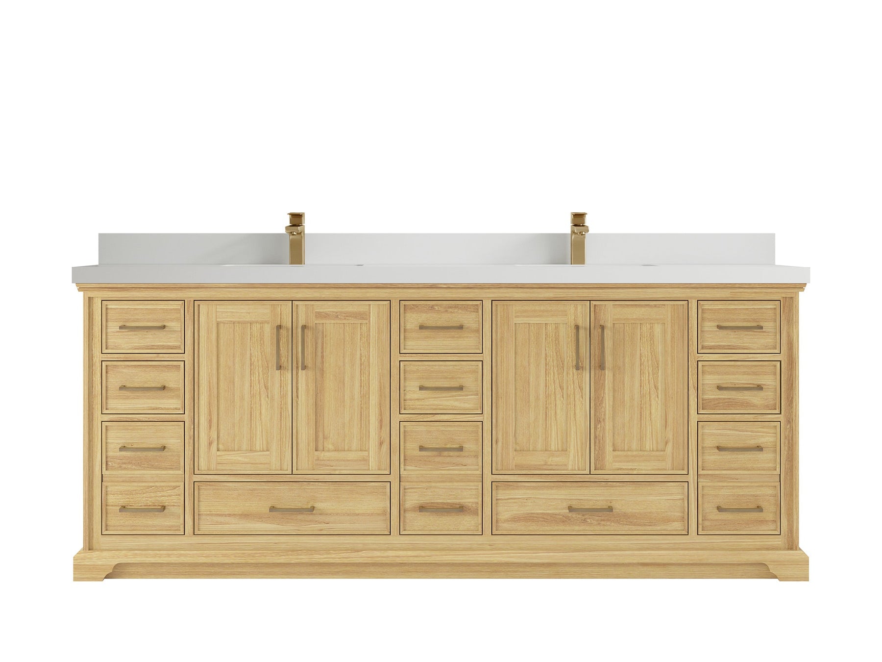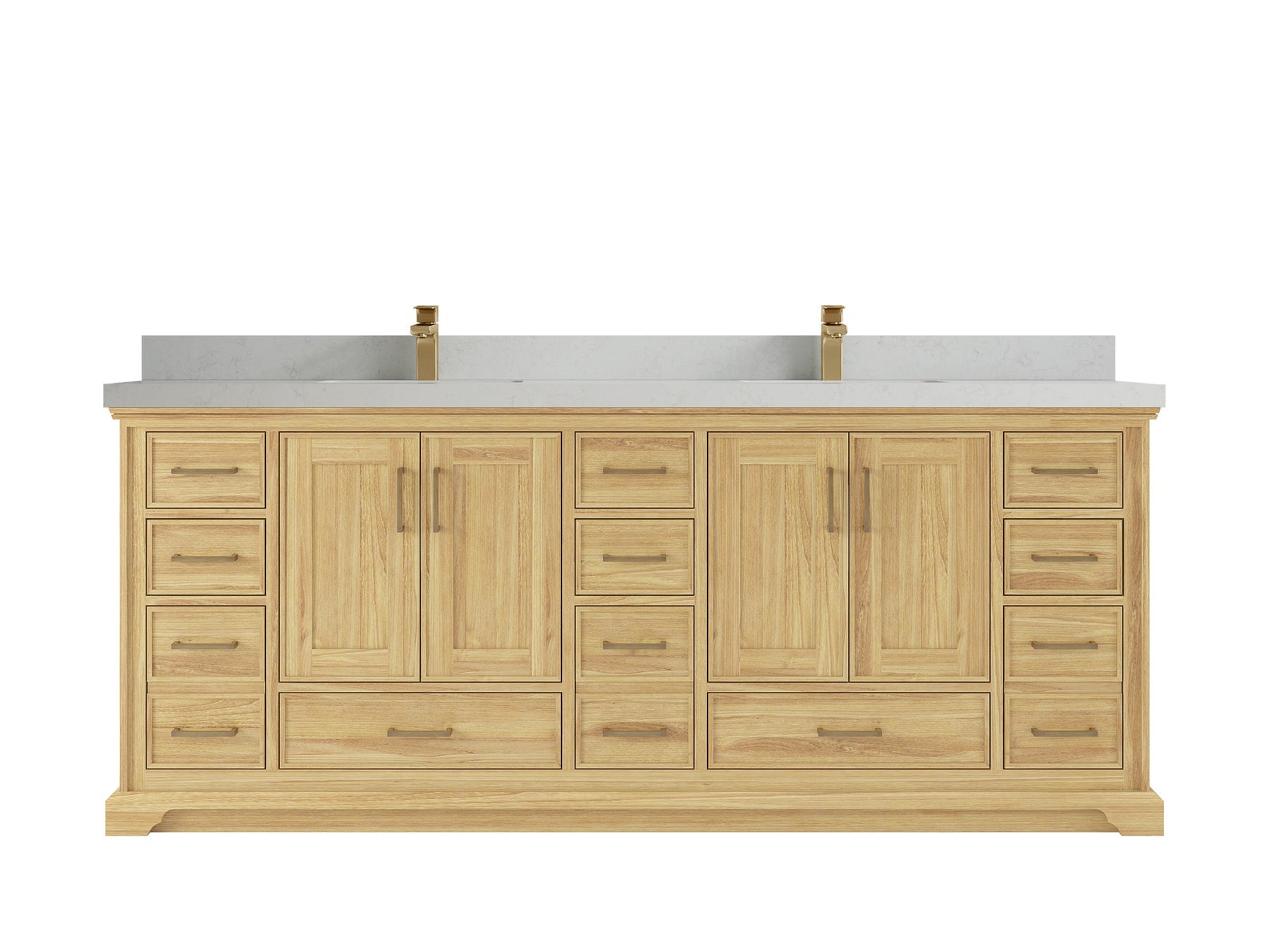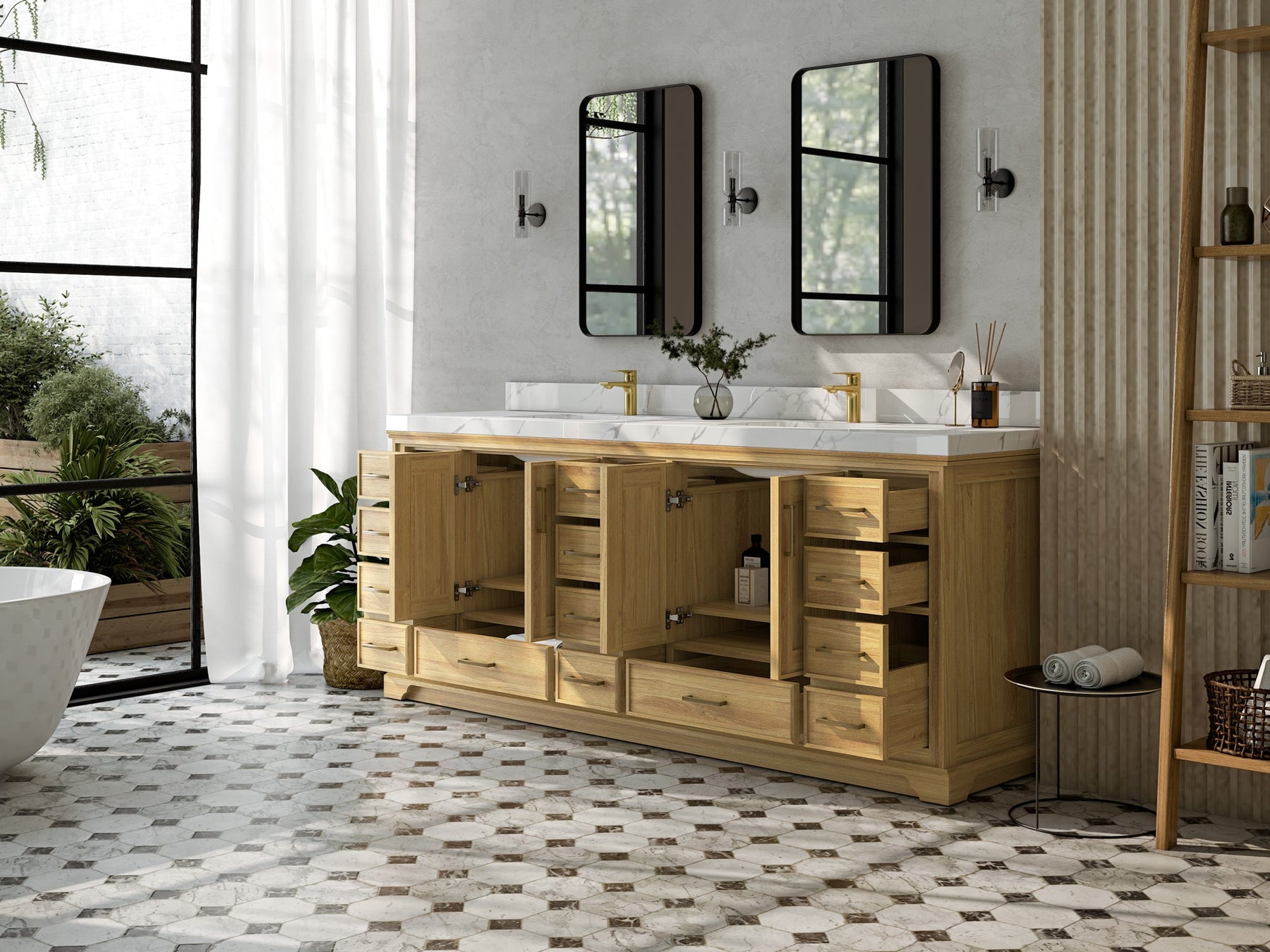 Charlotte 84 in. W x 22 in. D Double Sink Bathroom Teak Wood Vanity | Light Natural Teak