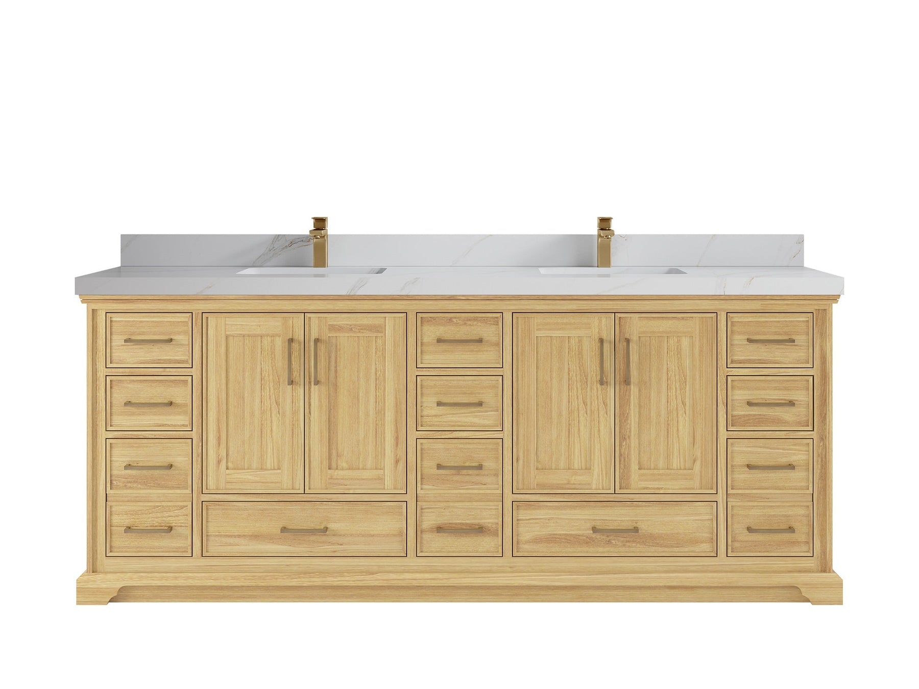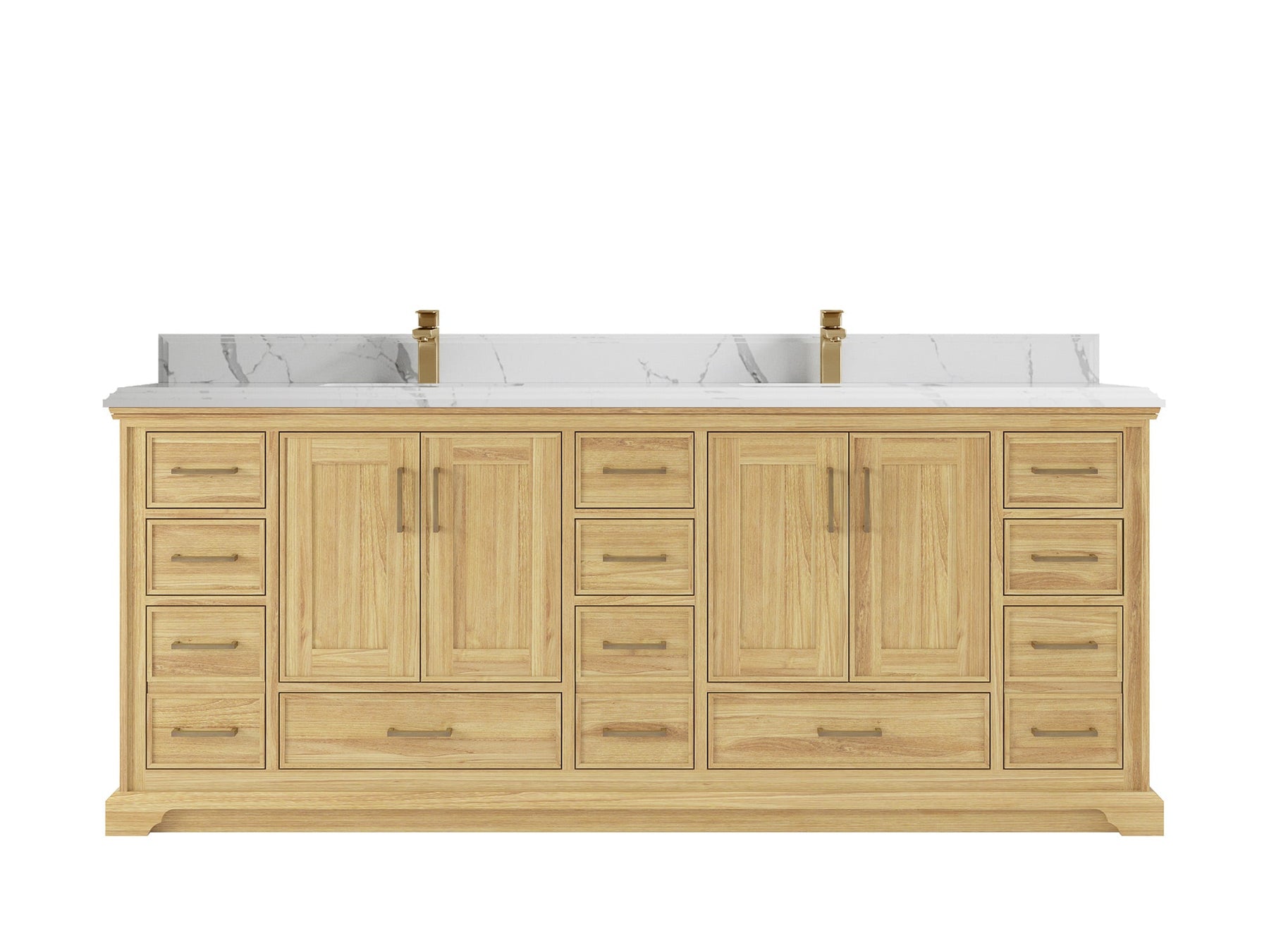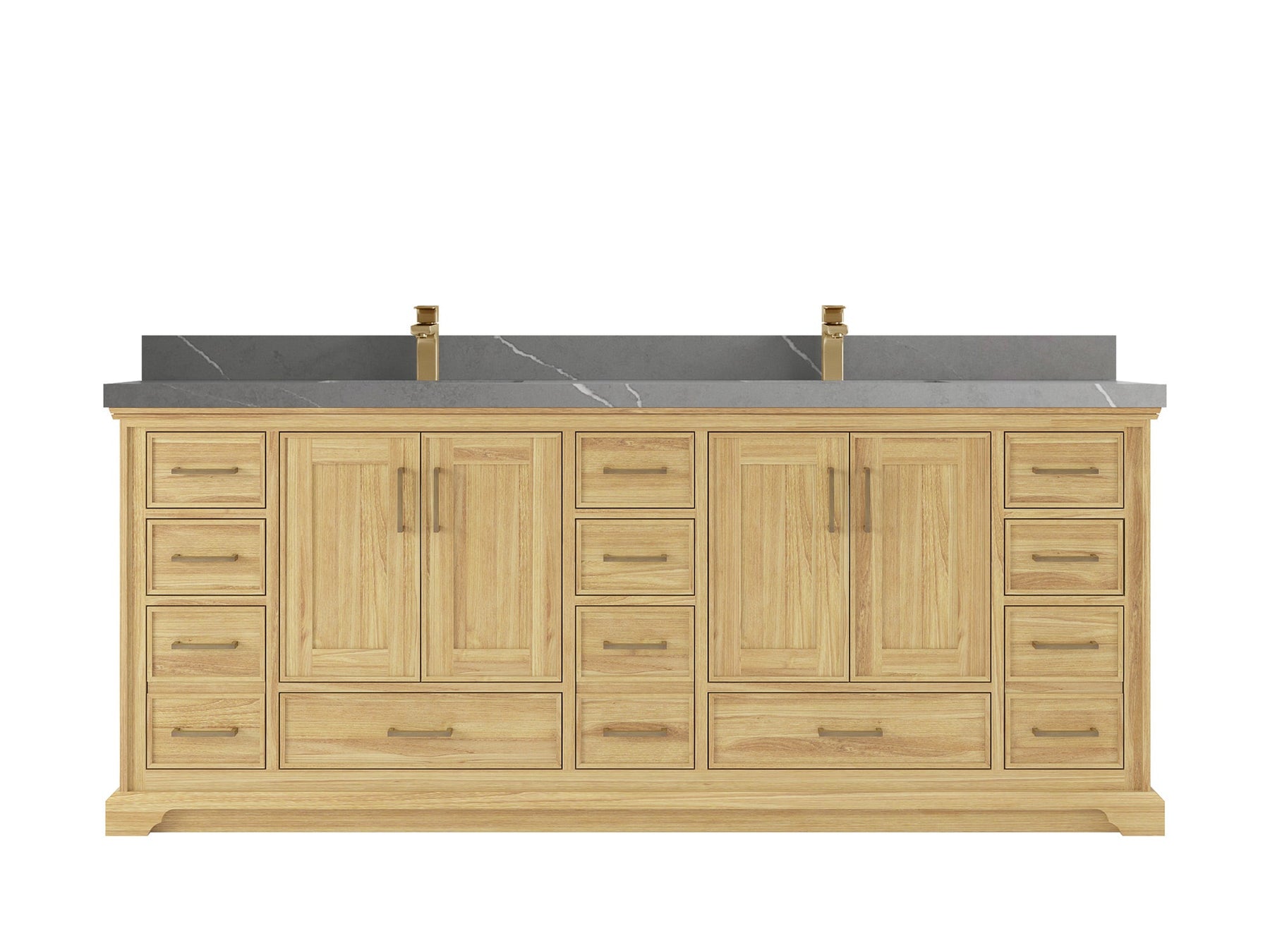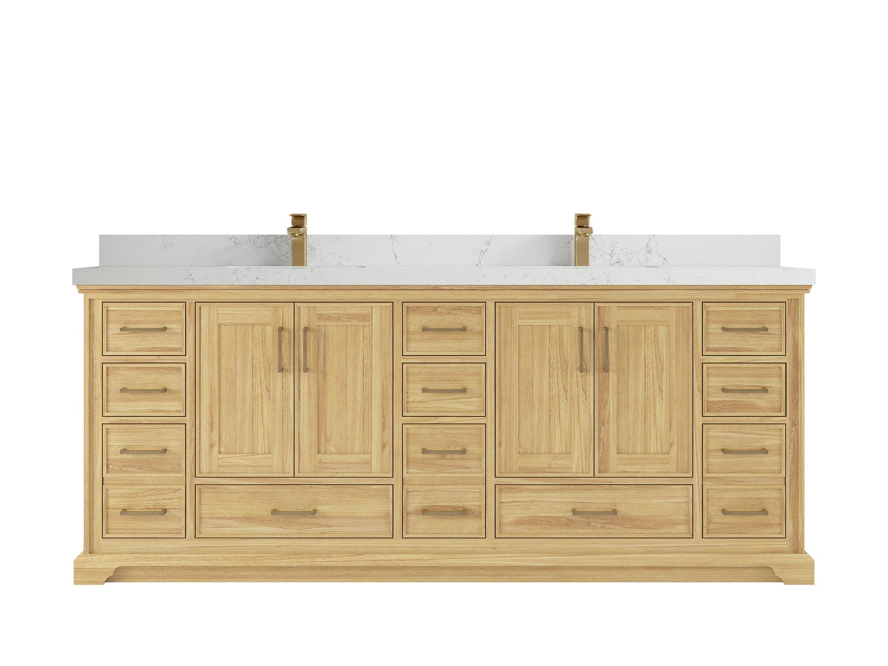 Charlotte 84 in. W x 22 in. D Double Sink Bathroom Teak Wood Vanity | Light Natural Teak