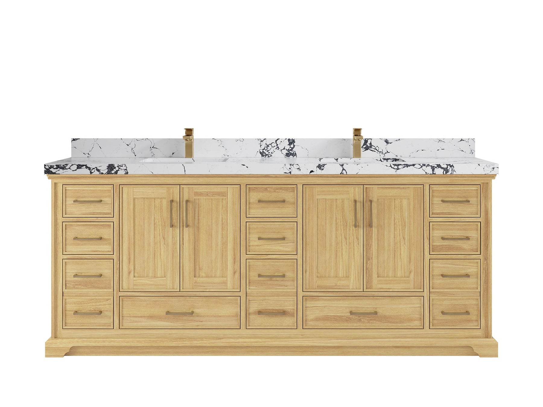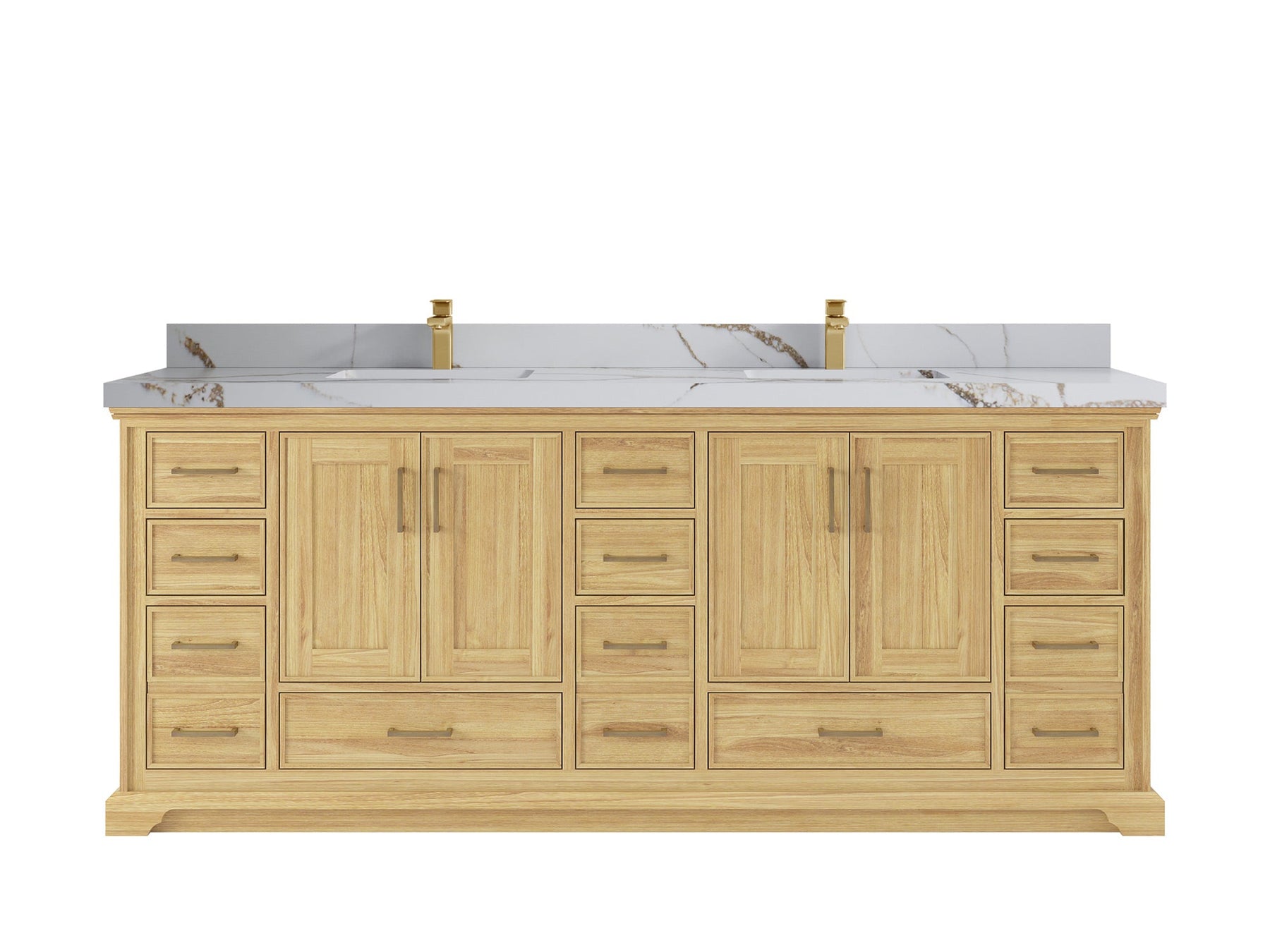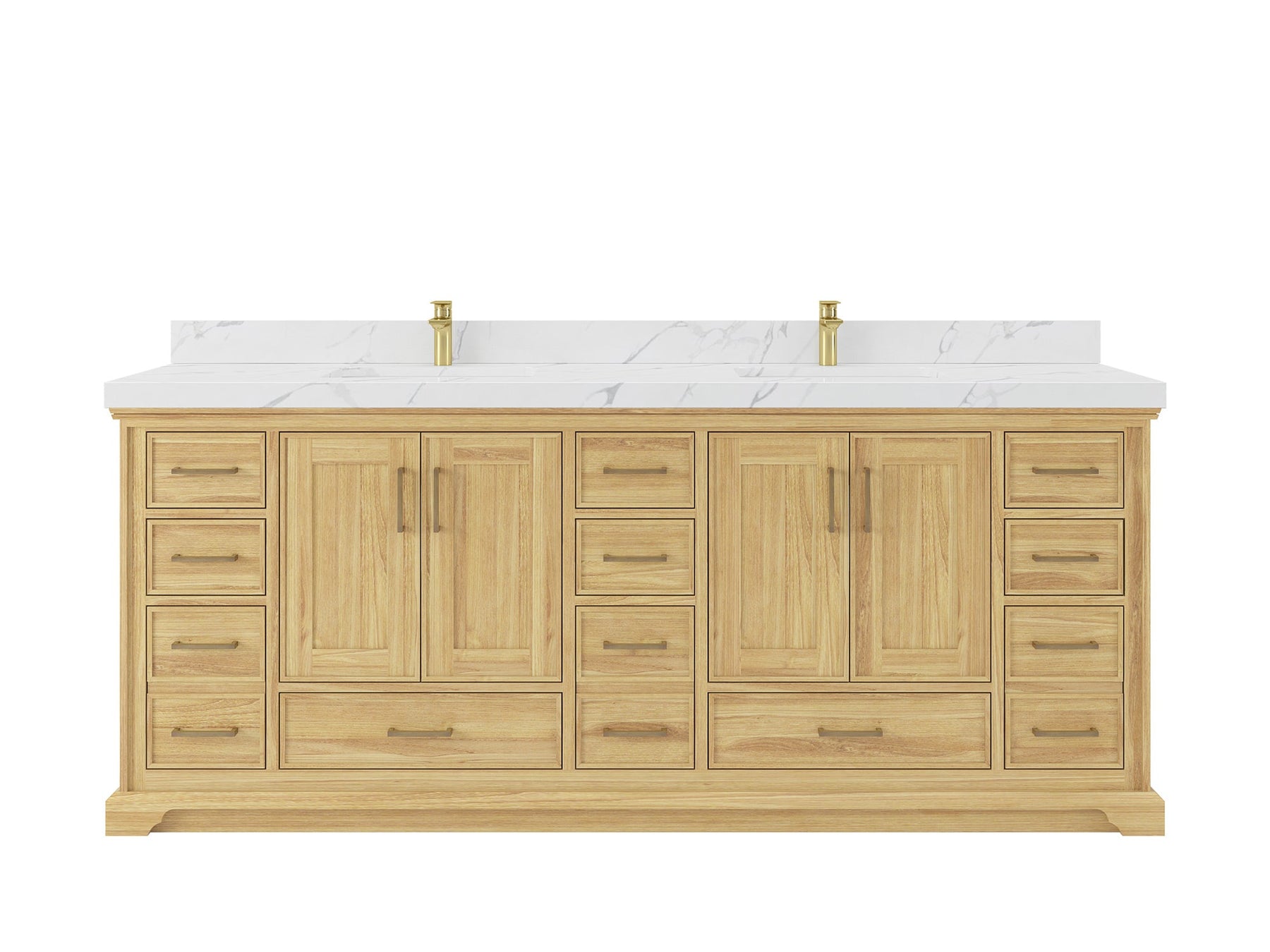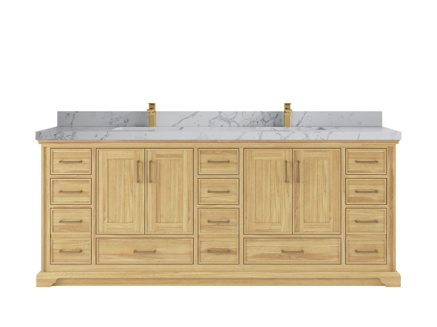 Charlotte 84 in. W x 22 in. D Double Sink Bathroom Teak Wood Vanity | Light Natural Teak