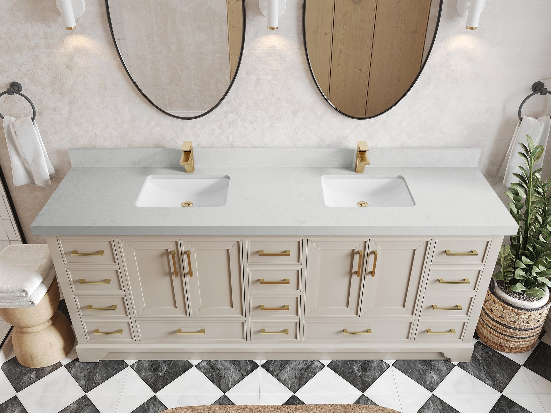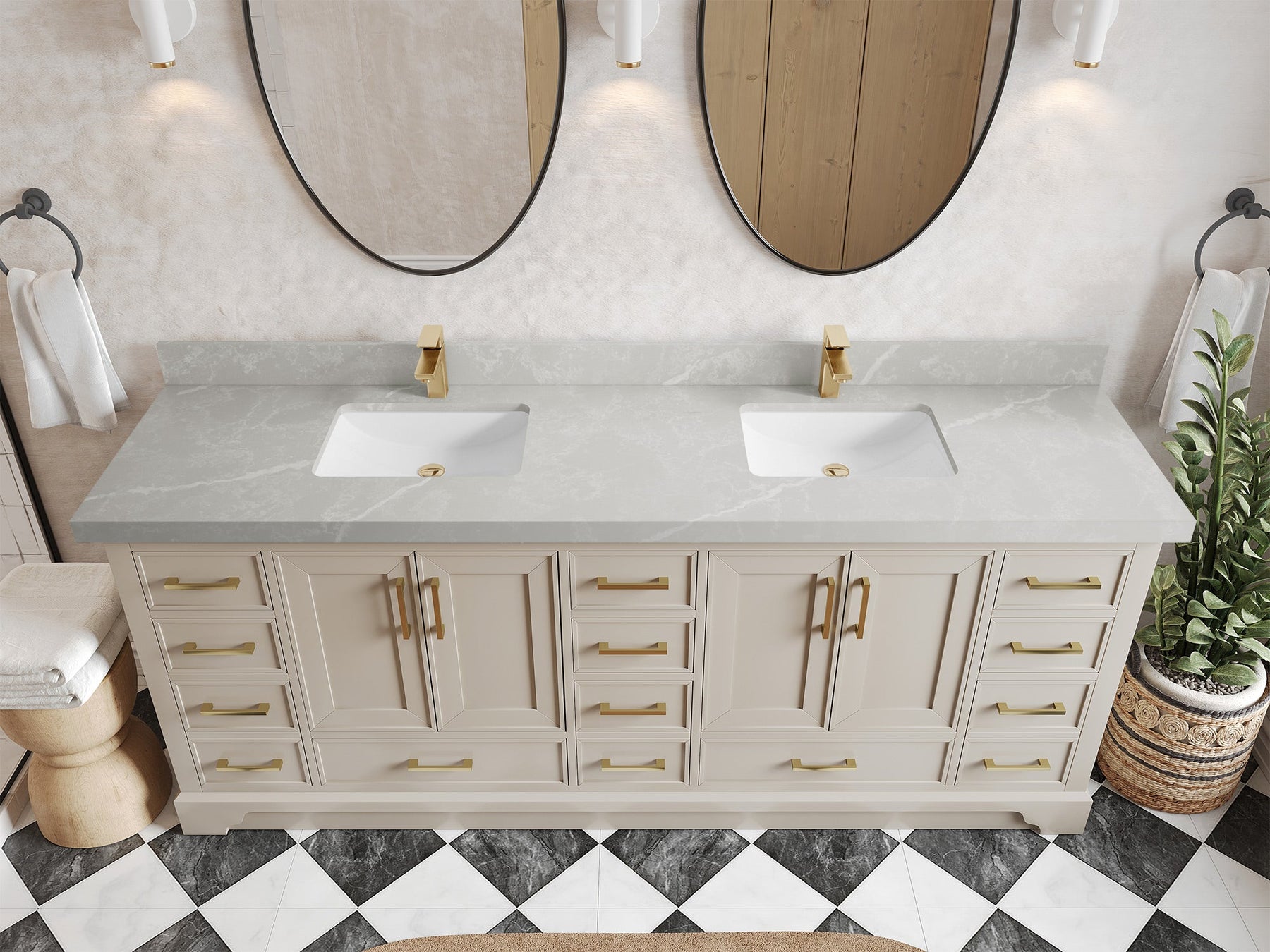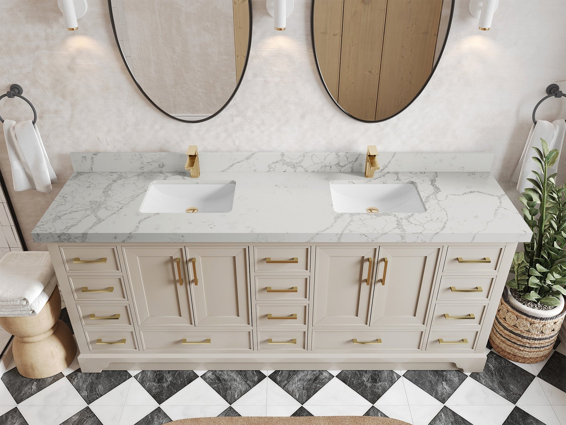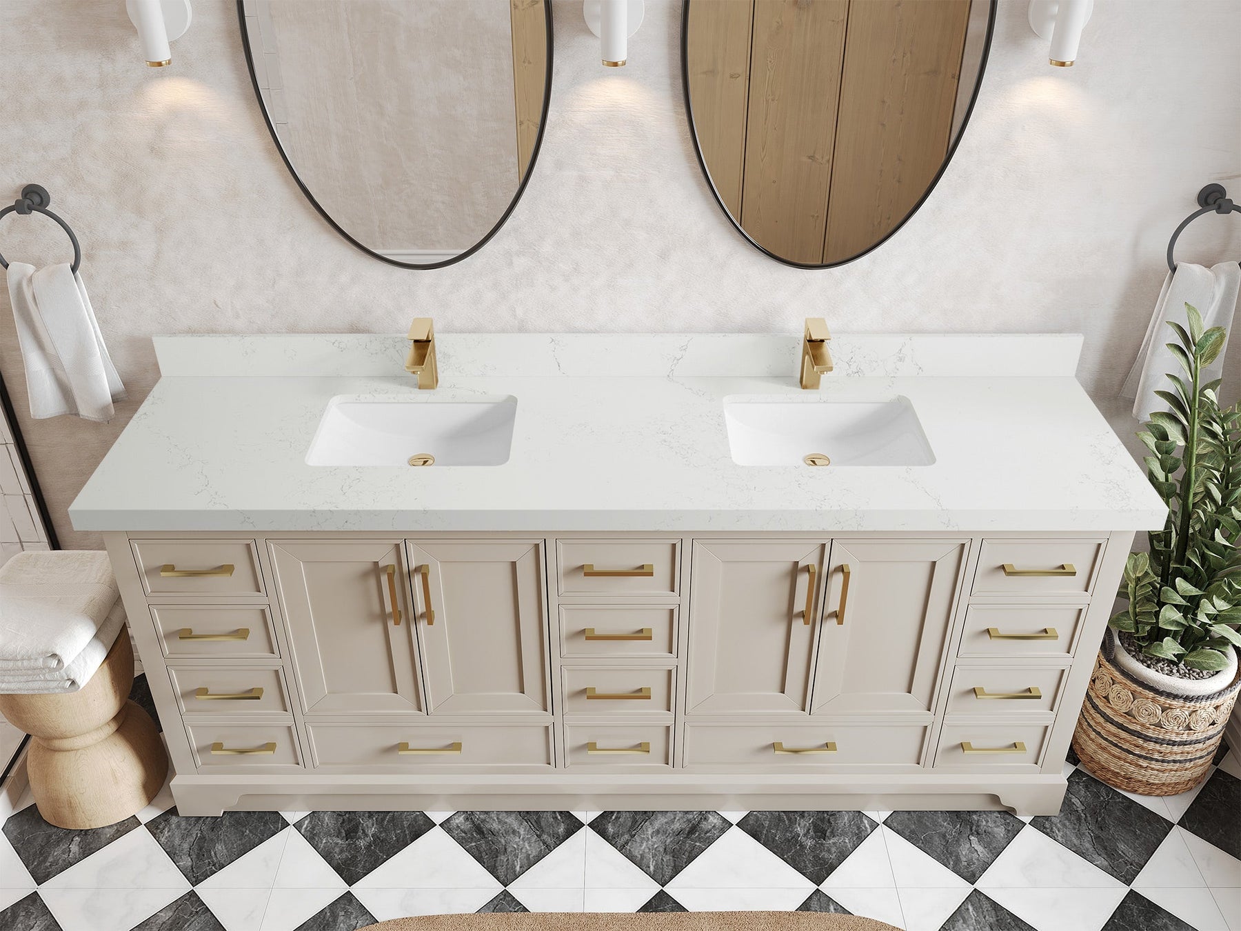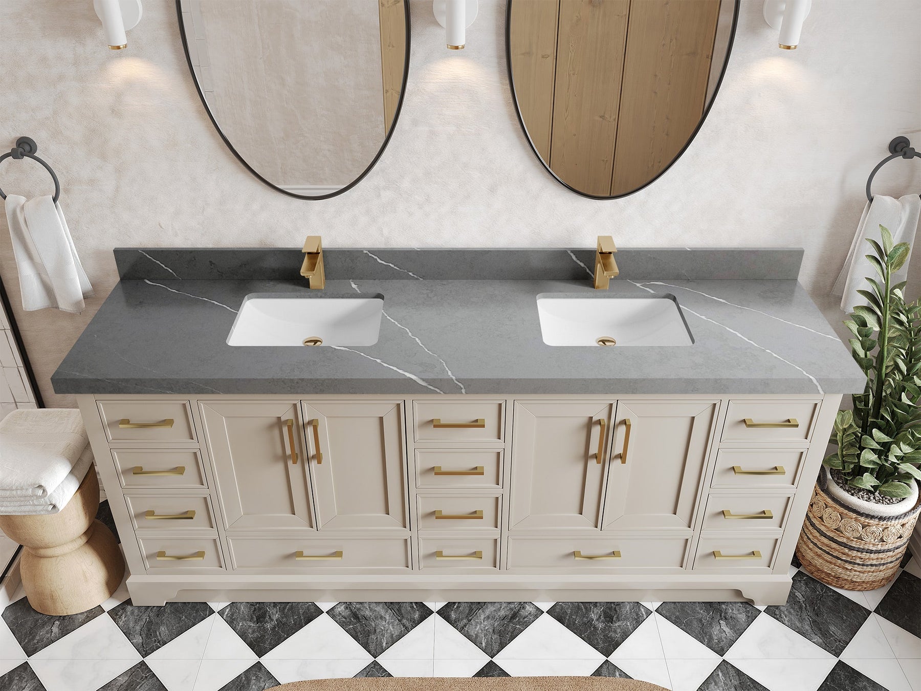 The Charlotte Cabinet comes with spacious cabinet compartments and drawers to store all your bathroom essentials, including towels, toiletries, and more. The soft-close drawers and doors ensure easy and quiet access.