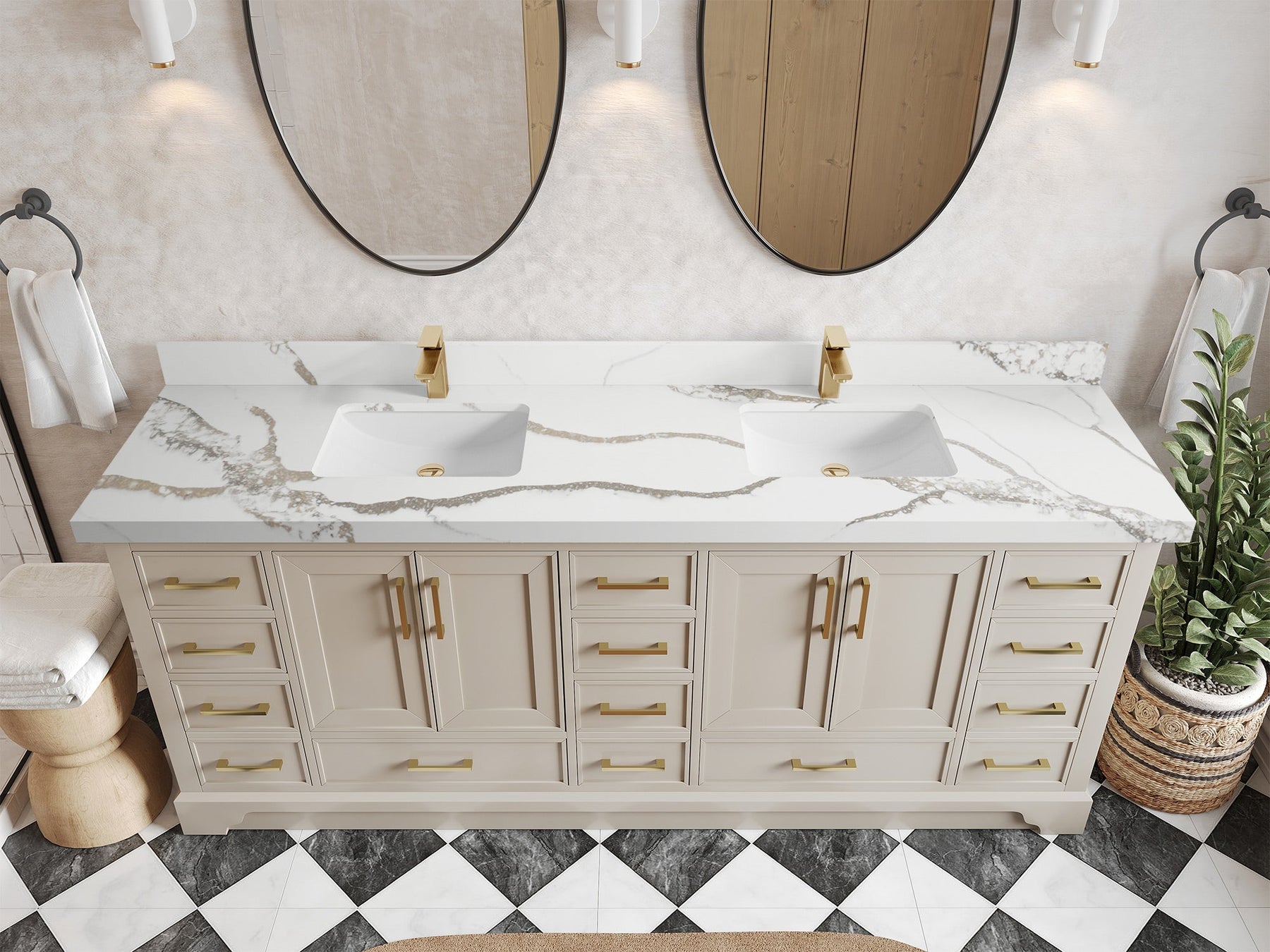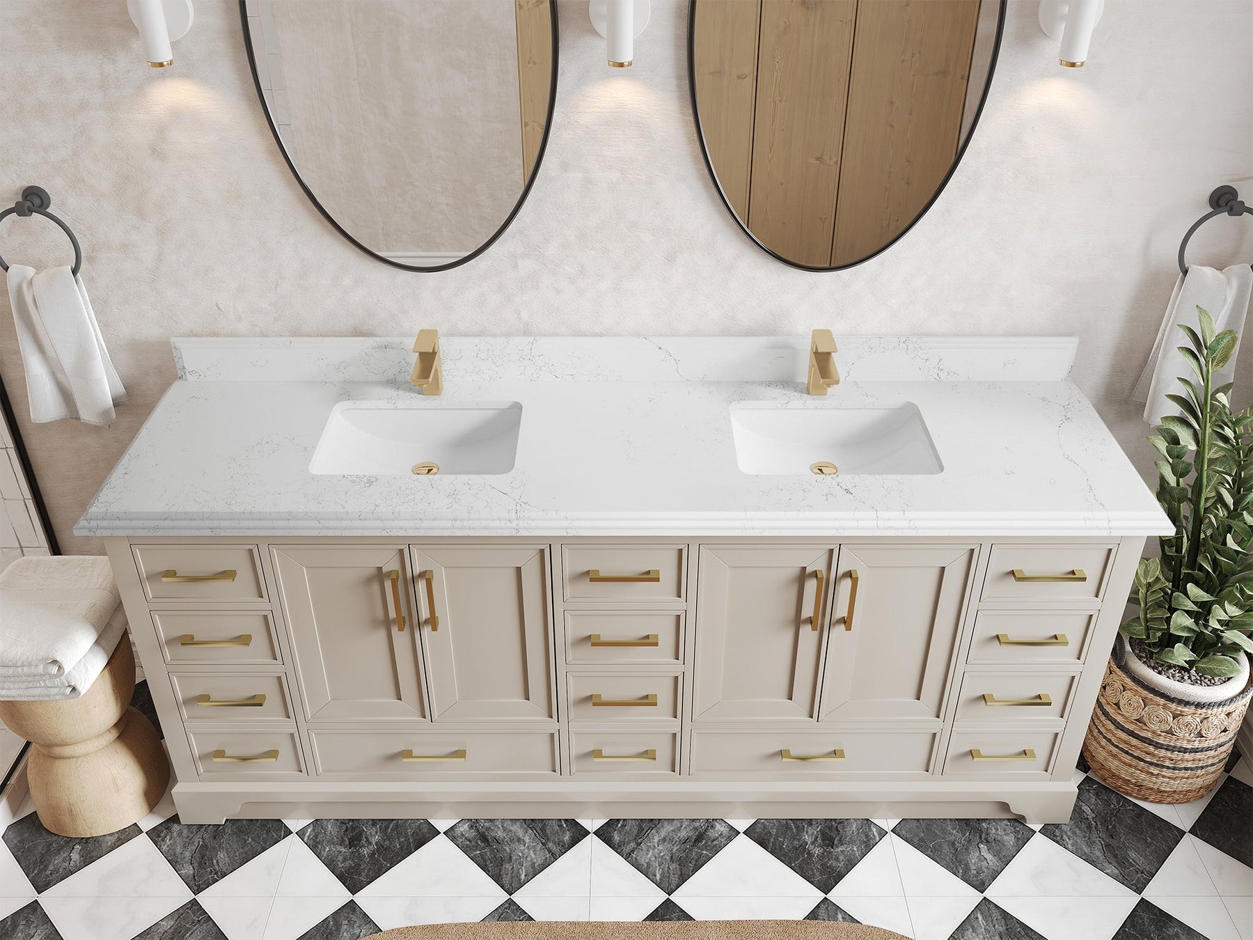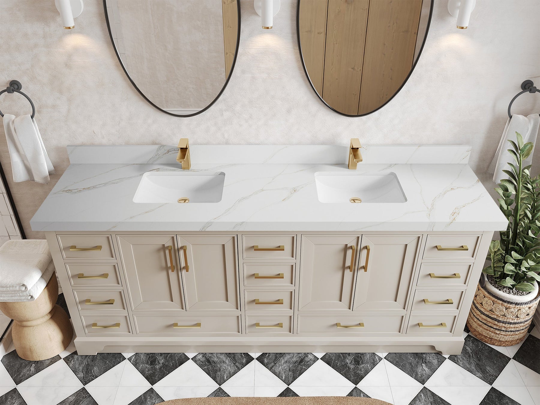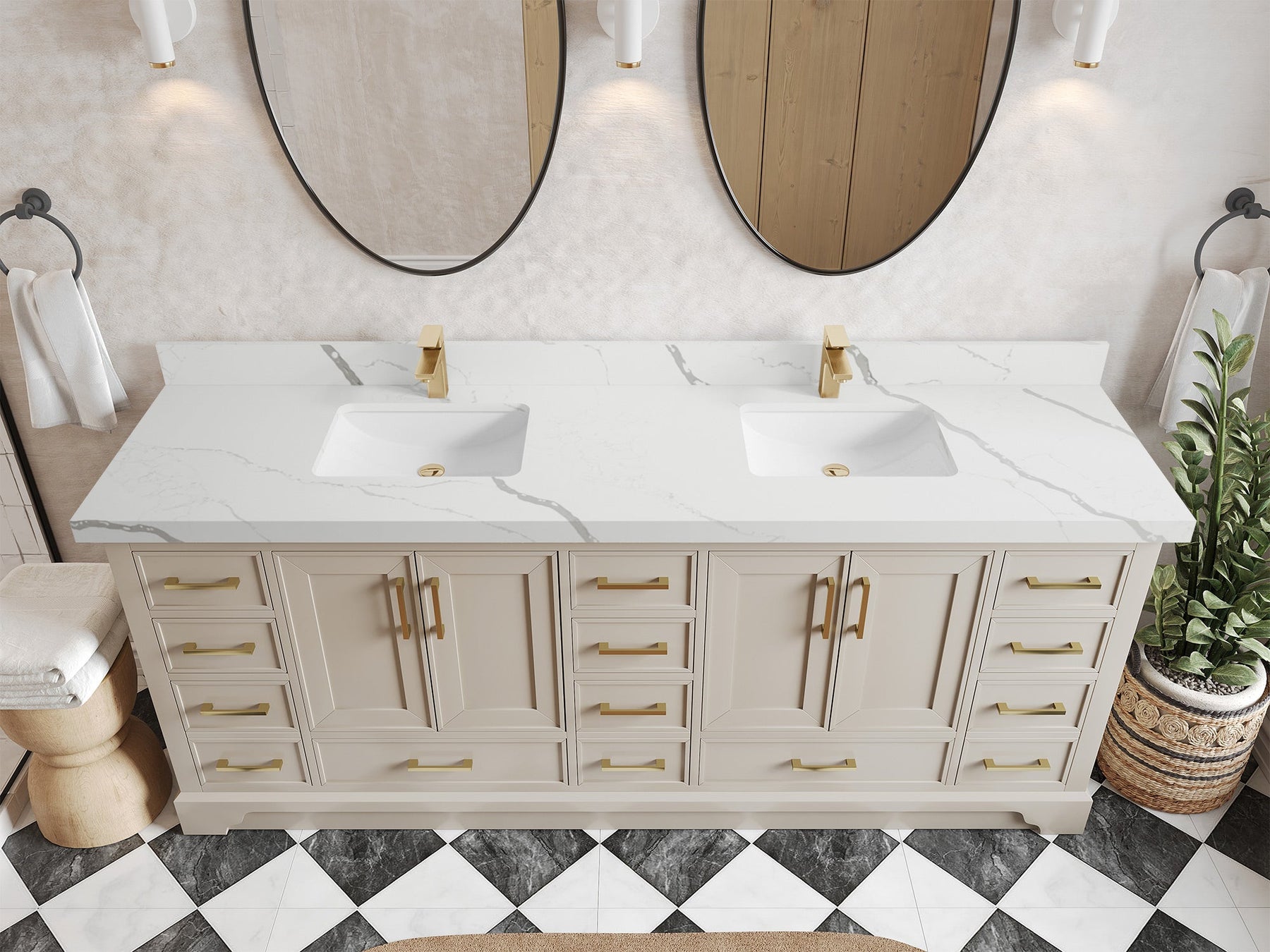 The Charlotte Cabinet comes with spacious cabinet compartments and drawers to store all your bathroom essentials, including towels, toiletries, and more. The soft-close drawers and doors ensure easy and quiet access.