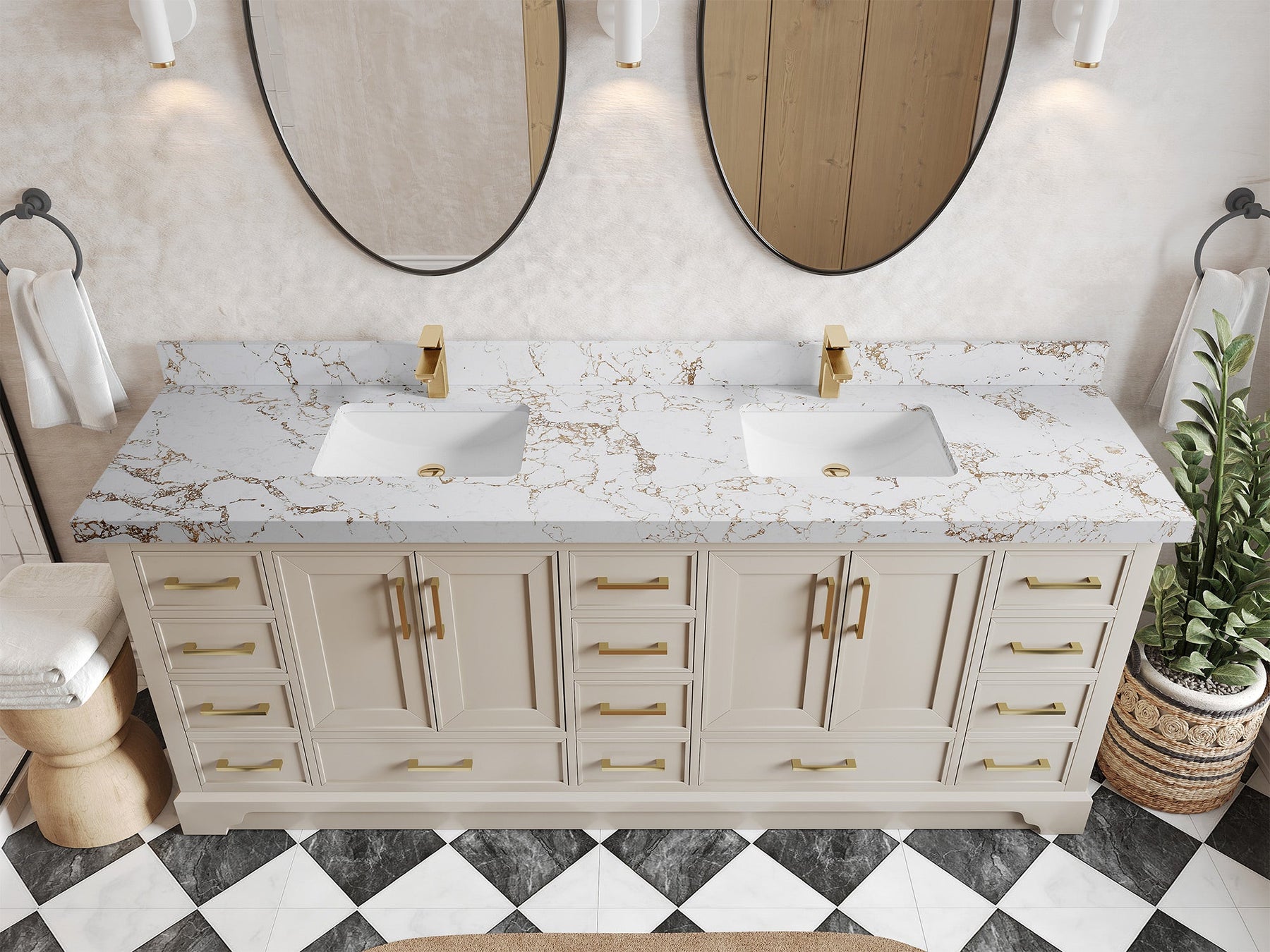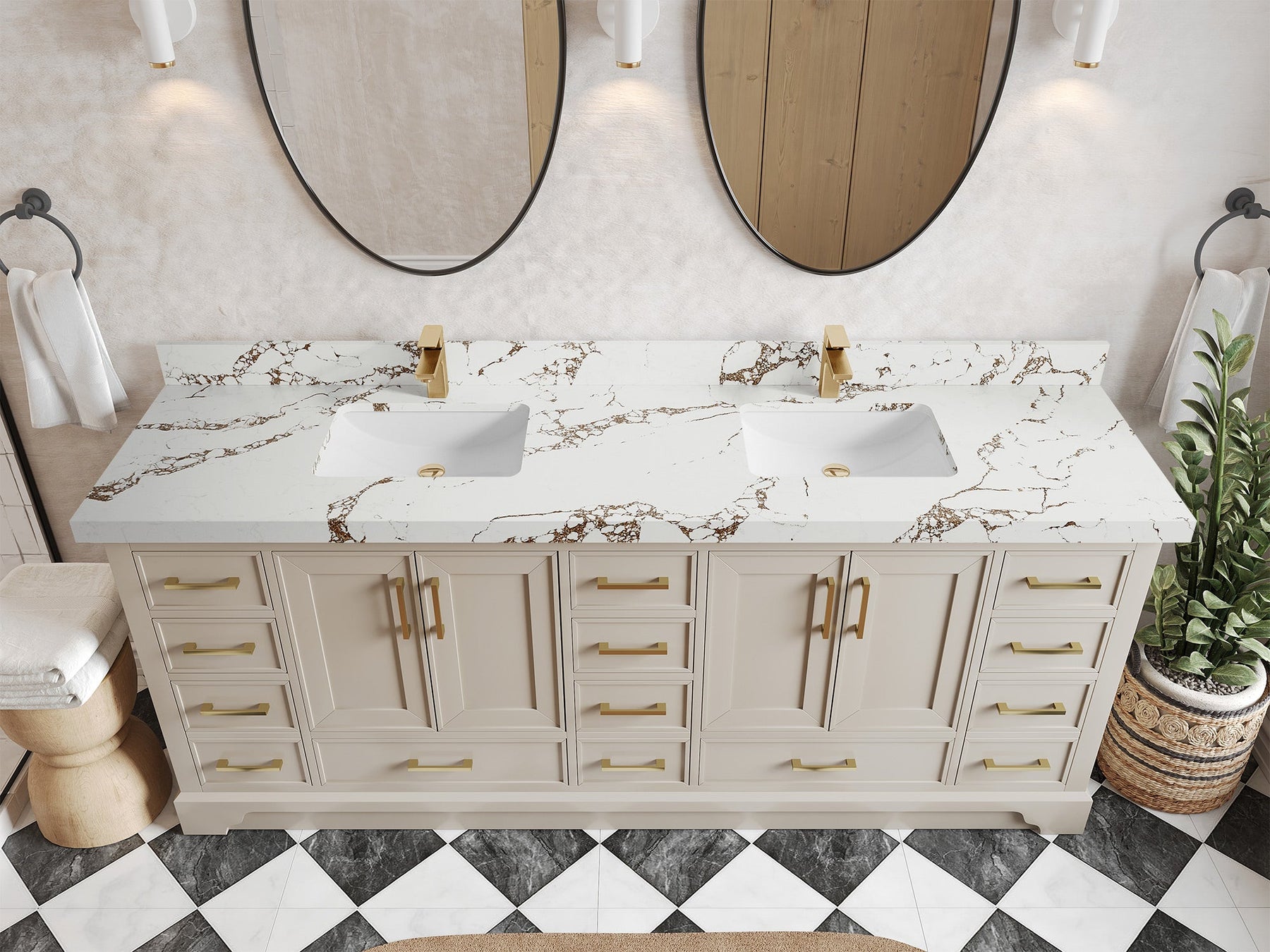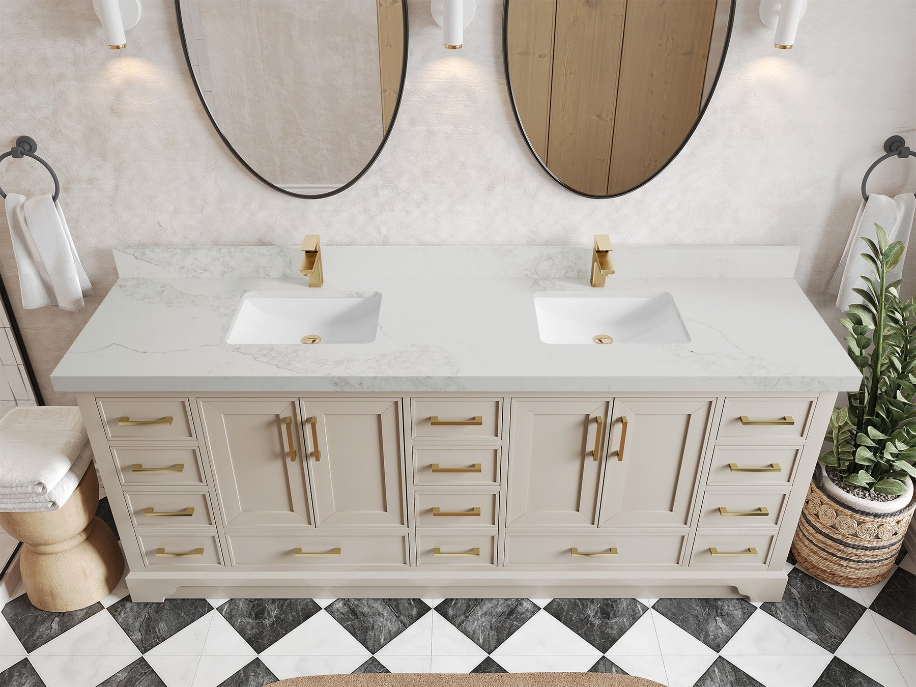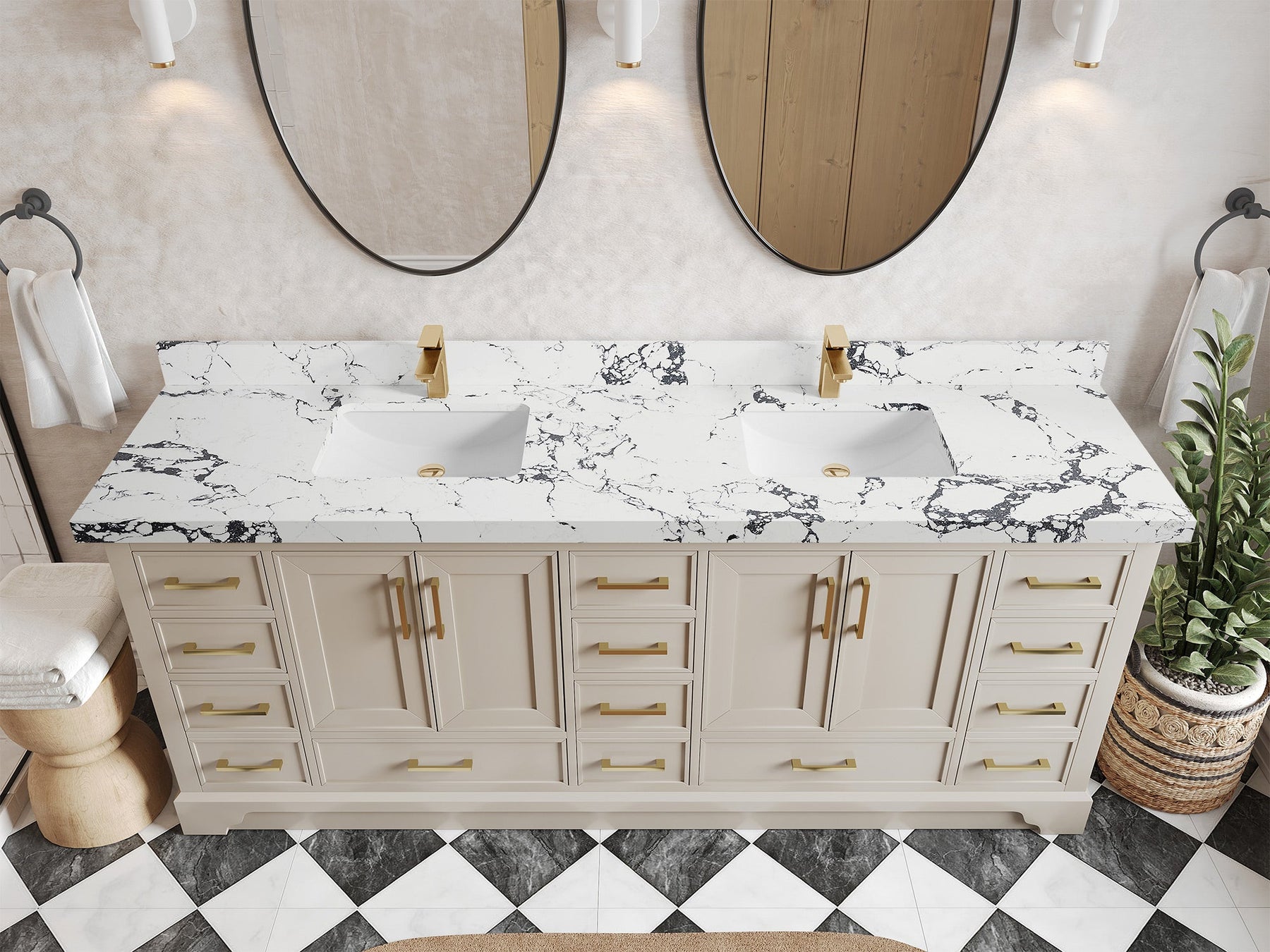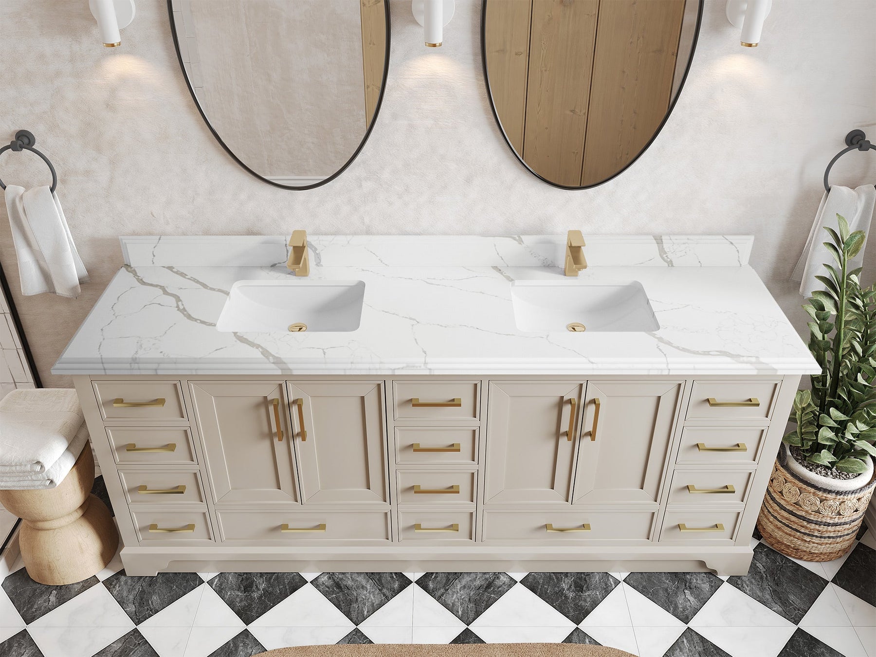The Charlotte Cabinet comes with spacious cabinet compartments and drawers to store all your bathroom essentials, including towels, toiletries, and more. The soft-close drawers and doors ensure easy and quiet access.