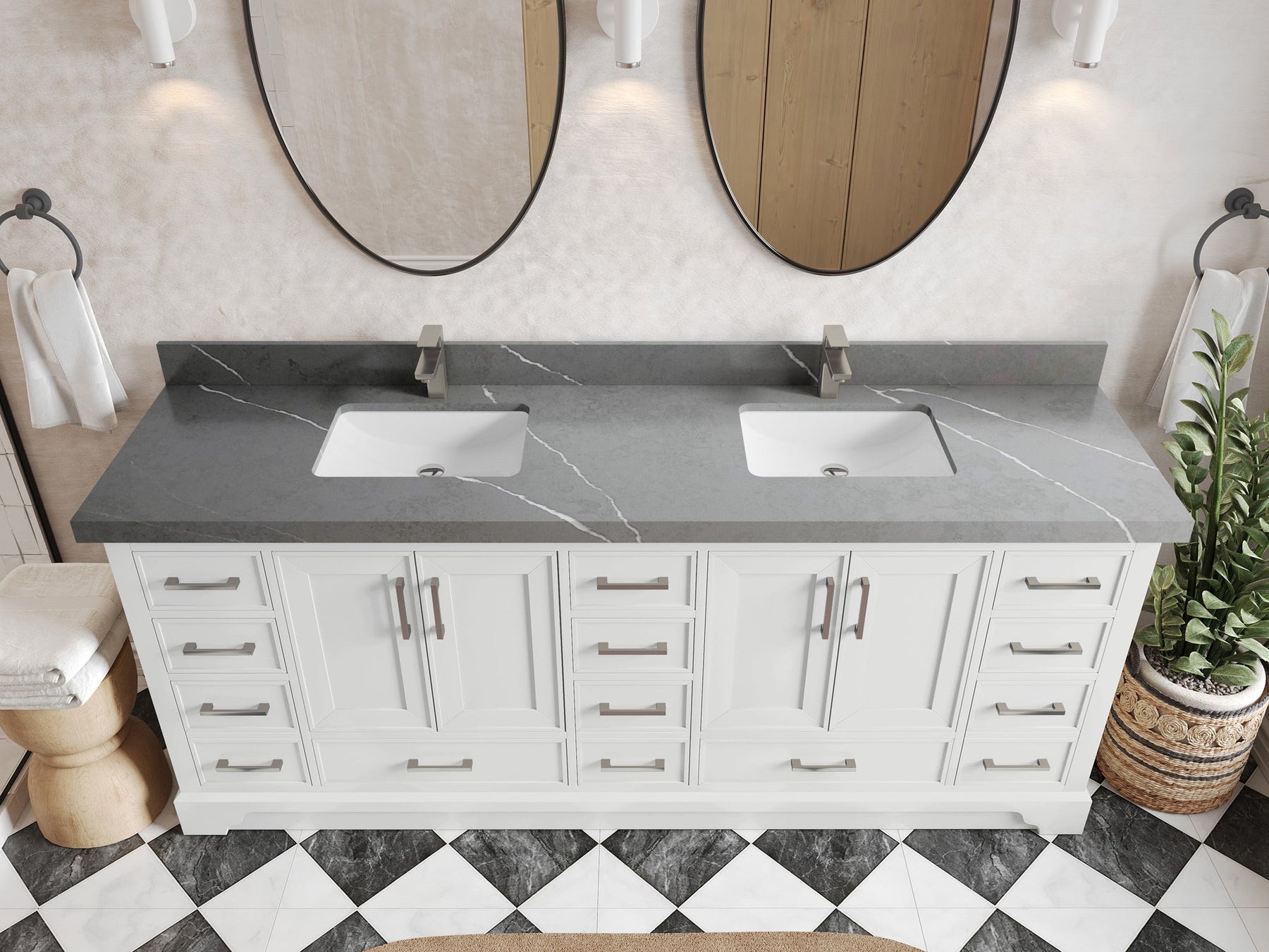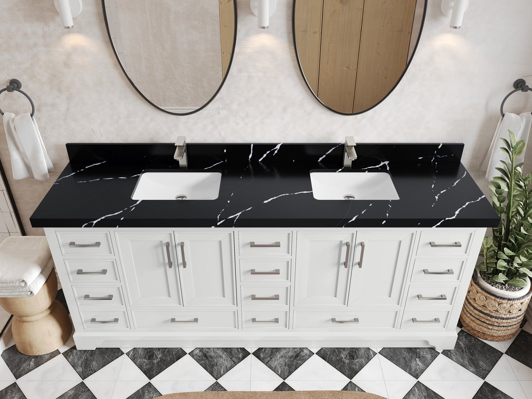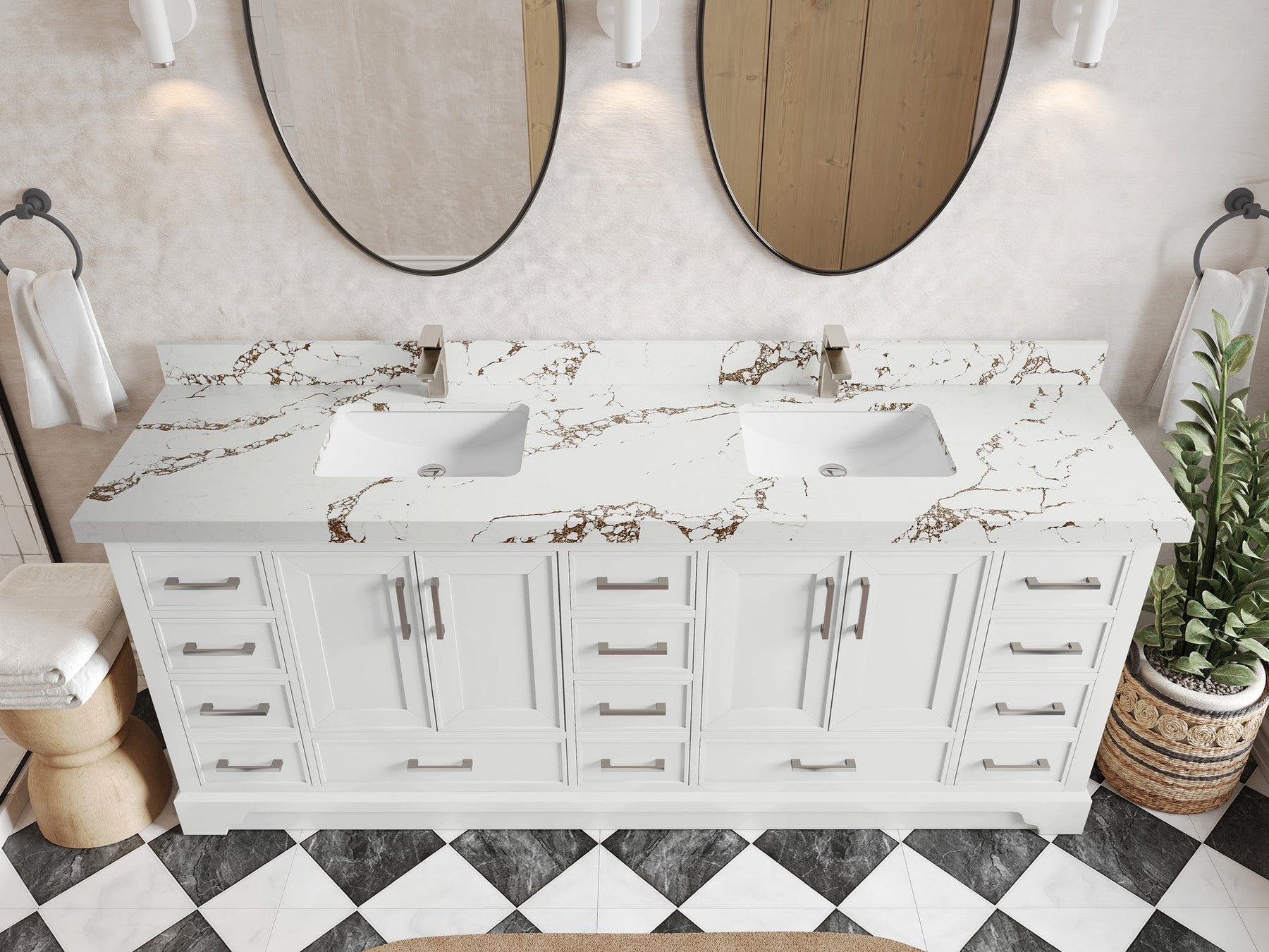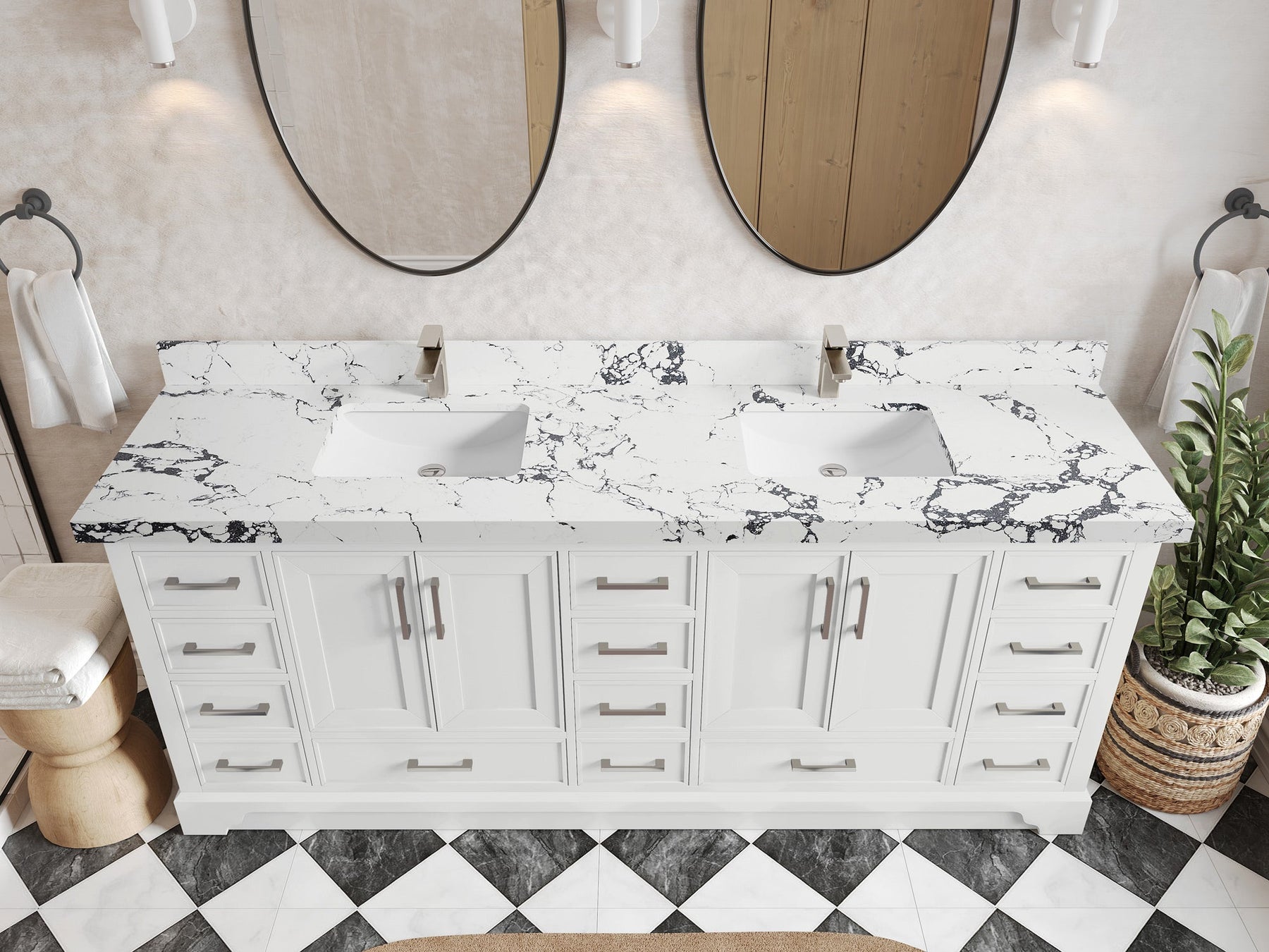 Vanity Countertops options: For Calacatta Laza Quartz, Empira White Quartz, Pure White Quartz we have 2 options Straight-Mitered Edge & Double Cove Edge, For Calacatta Black Quartz, Calacatta Gold Quartz, Calacatta Nuvo Quartz, Carrara Marble, Carrara Quartz, Pearl Light Gray Quartz, Piatra Gray Quartz, Venatino Quartz, and Light Concrete Gray Quartz we only have Straight - Mitered Edge option.