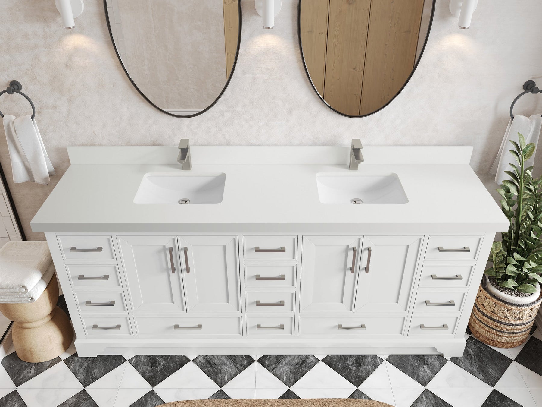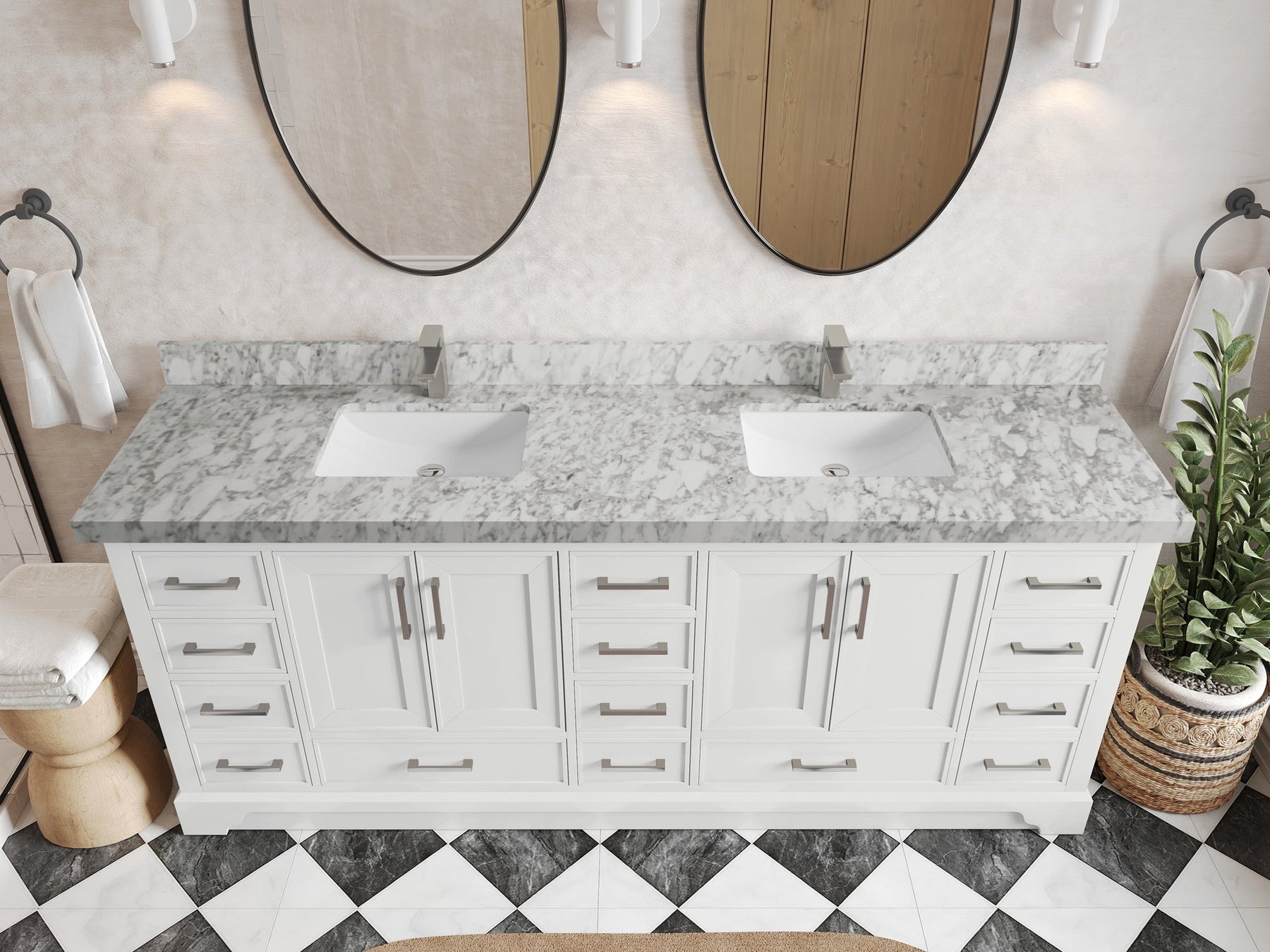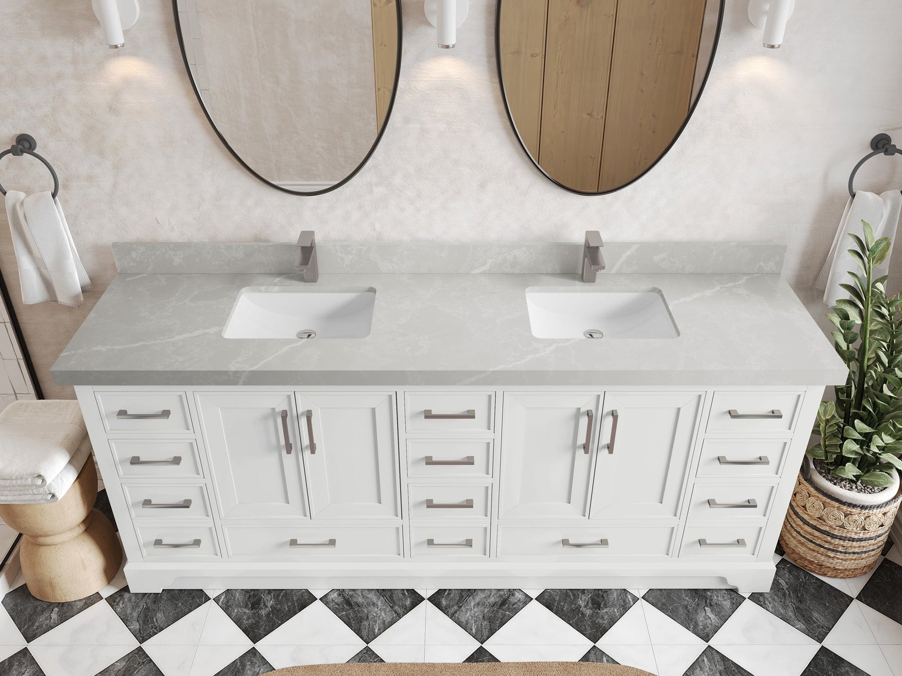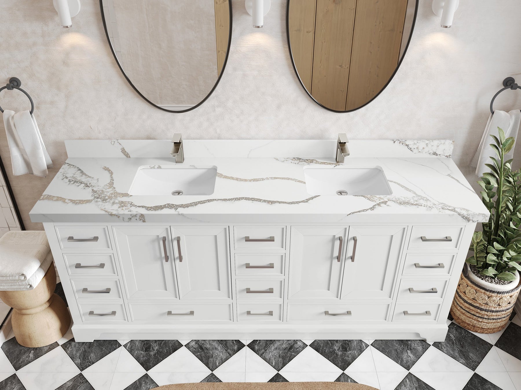 Vanity Countertops options: For Calacatta Laza Quartz, Empira White Quartz, Pure White Quartz we have 2 options Straight-Mitered Edge & Double Cove Edge, For Calacatta Black Quartz, Calacatta Gold Quartz, Calacatta Nuvo Quartz, Carrara Marble, Carrara Quartz, Pearl Light Gray Quartz, Piatra Gray Quartz, Venatino Quartz, and Light Concrete Gray Quartz we only have Straight - Mitered Edge option.