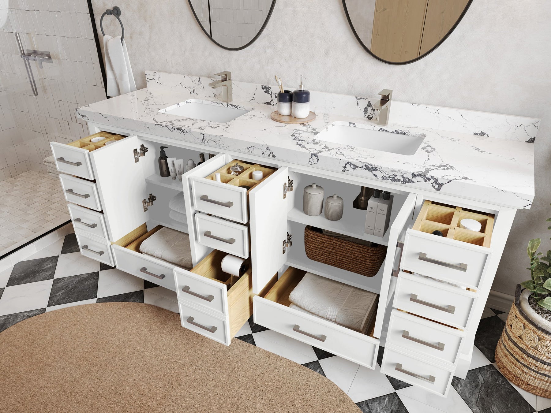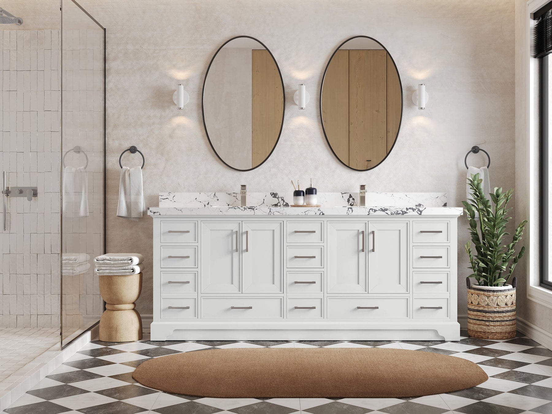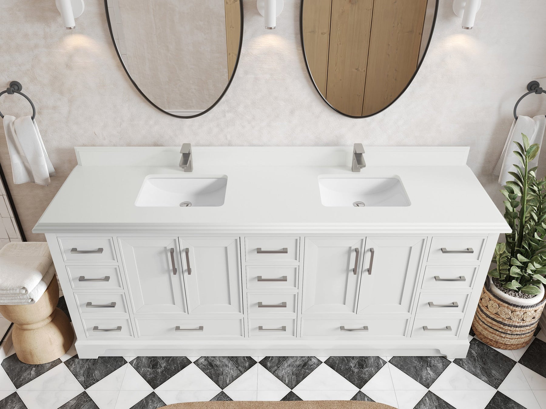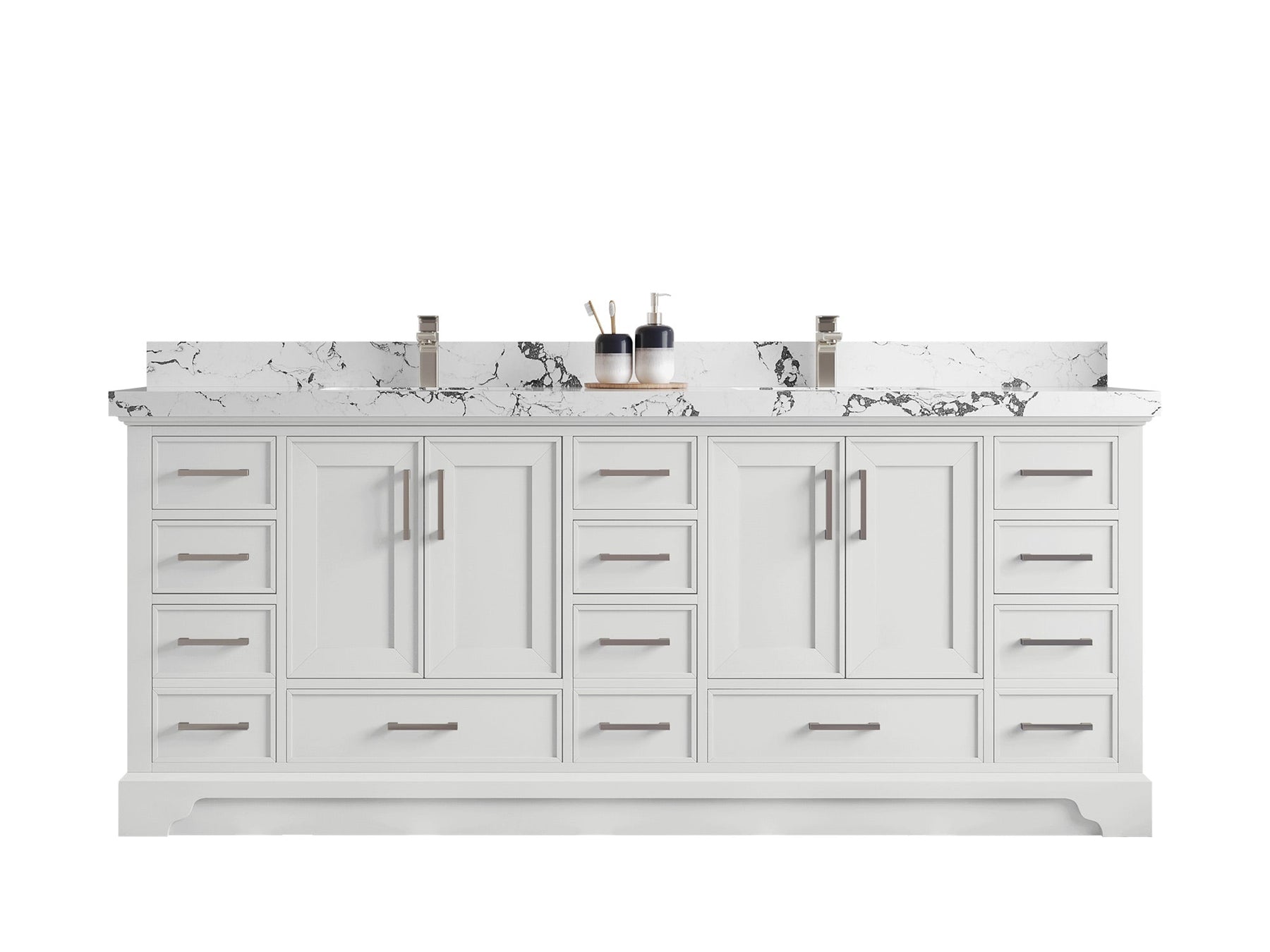 Vanity Countertops options: For Calacatta Laza Quartz, Empira White Quartz, Pure White Quartz we have 2 options Straight-Mitered Edge & Double Cove Edge, For Calacatta Black Quartz, Calacatta Gold Quartz, Calacatta Nuvo Quartz, Carrara Marble, Carrara Quartz, Pearl Light Gray Quartz, Piatra Gray Quartz, Venatino Quartz, and Light Concrete Gray Quartz we only have Straight - Mitered Edge option.