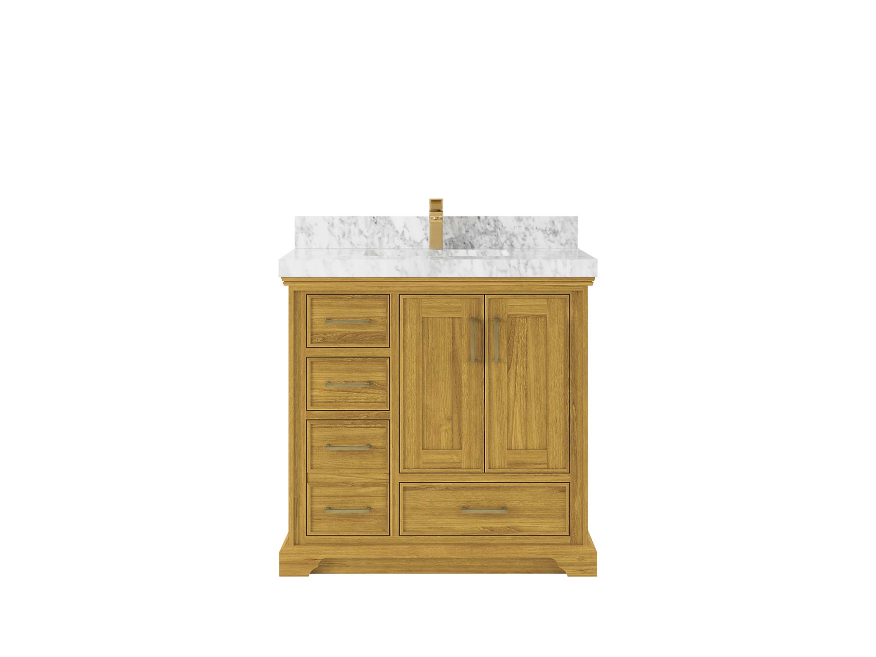 Vanity Countertops options: For Calacatta Laza Quartz, Empira White Quartz, Pure White Quartz we have 2 options Straight-Mitered Edge and Double Cove Edge; For Calacatta Nuvo Quartz, Carrara Marble, Carrara Quartz, Piatra Gray Quartz, Calacatta Black, Calacatta Gold, Venatino Quartz, Pearl Light Gray, Viola Brown, Viola Gold, Viola Night, Viola Biagio, Calacatta Sienna, Calacatta Poanazzo we only have Straight - Mitered Edge option.