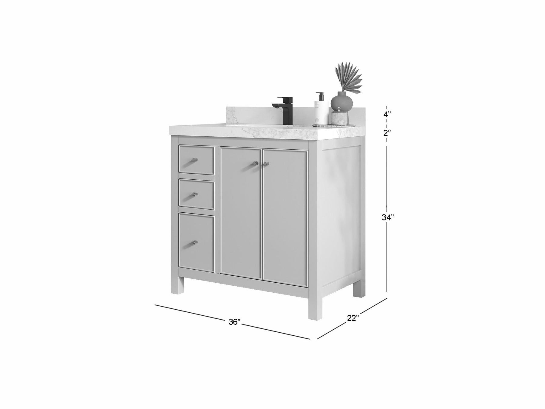 Chicago 36 in. W x 22 in. D Center Sink Bathroom Vanity | Alabaster