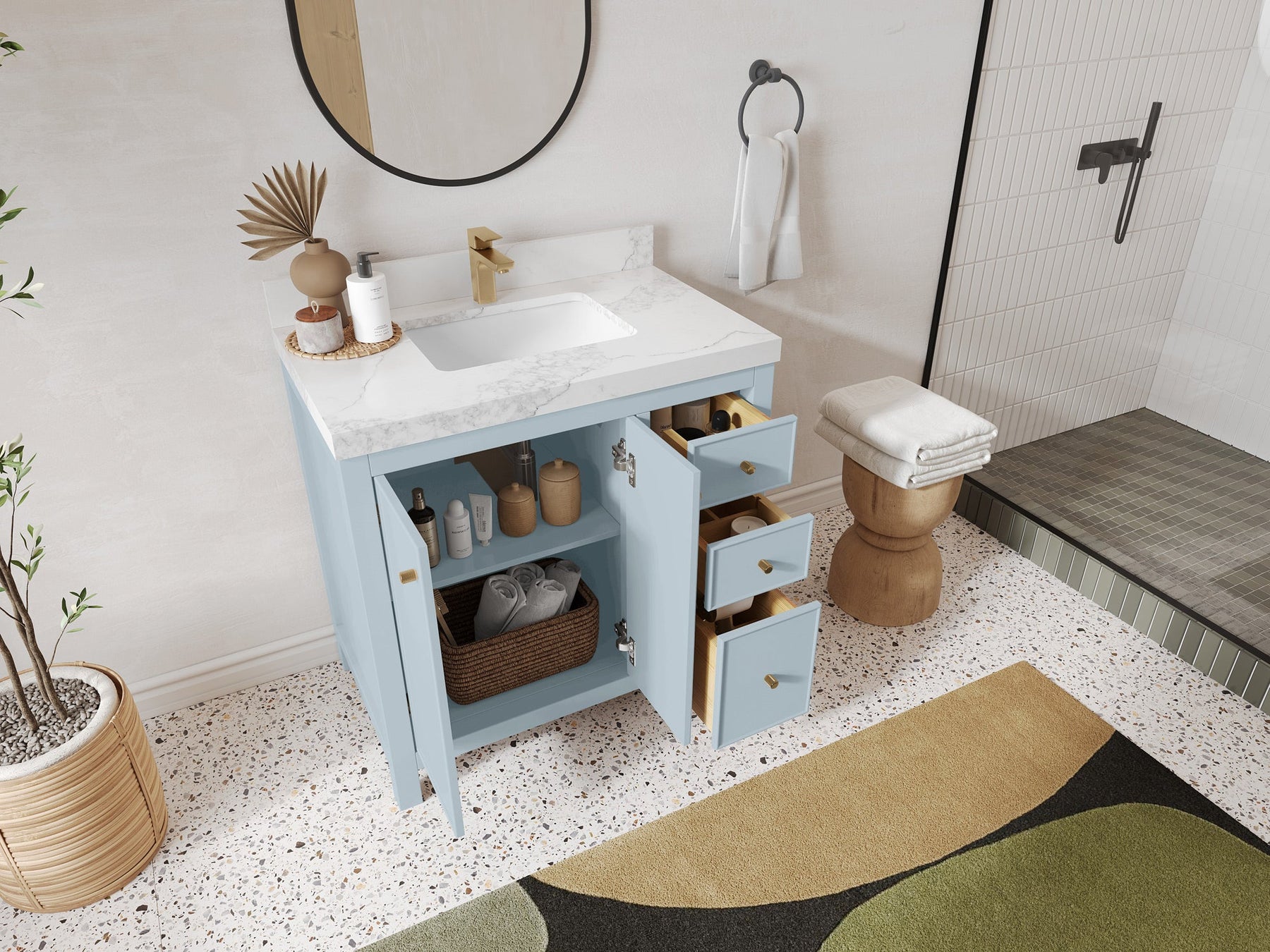 Pairing modern functionality with enduring beauty, Willow Bath & Vanity offers one of the largest selections of bathroom vanities in the U.S.—over 55,000 variations to choose from. Each piece is crafted from premium woods like birch, white oak, teak, and mango, and finished with elegant quartz, marble, or terrazzo countertops.