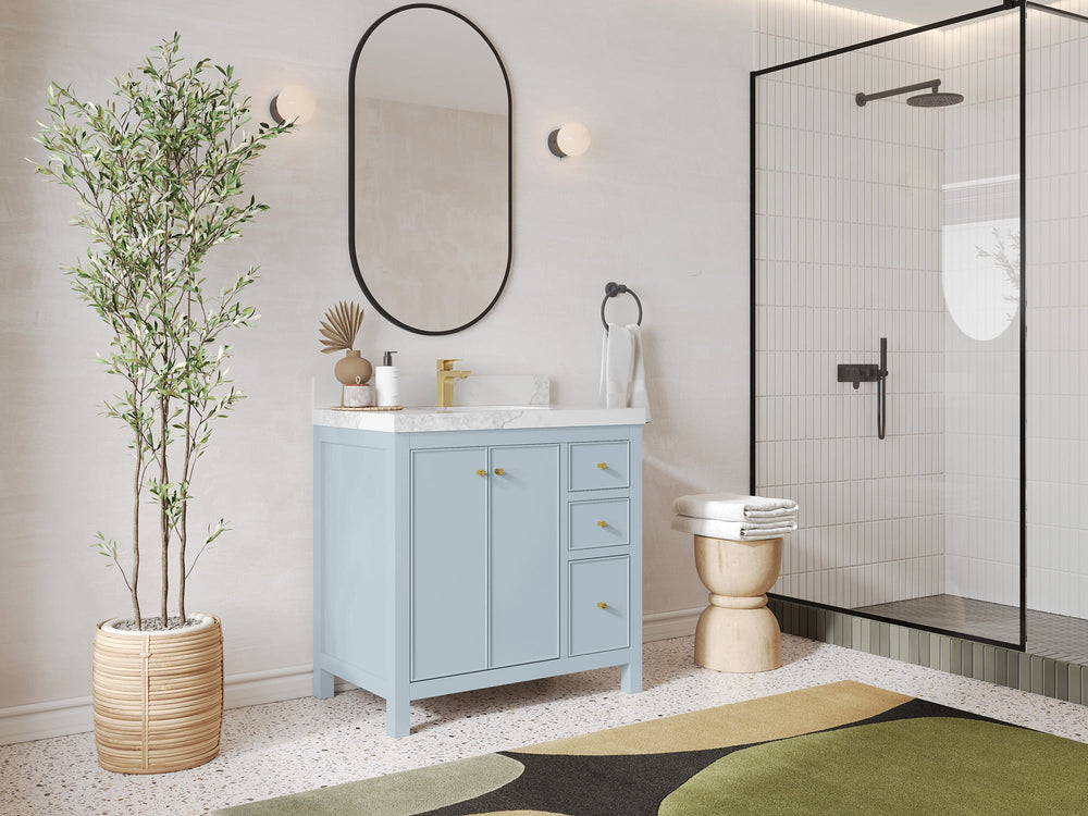 Chicago 36 in. W x 22 in. D Center Sink Bathroom Vanity | Blue Heather