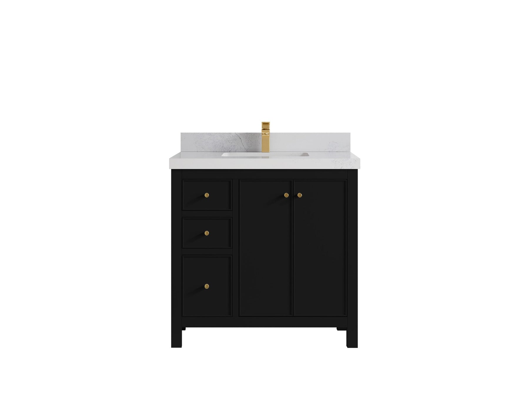 Includes cabinet base only. Countertop, sink, and faucet are not included.