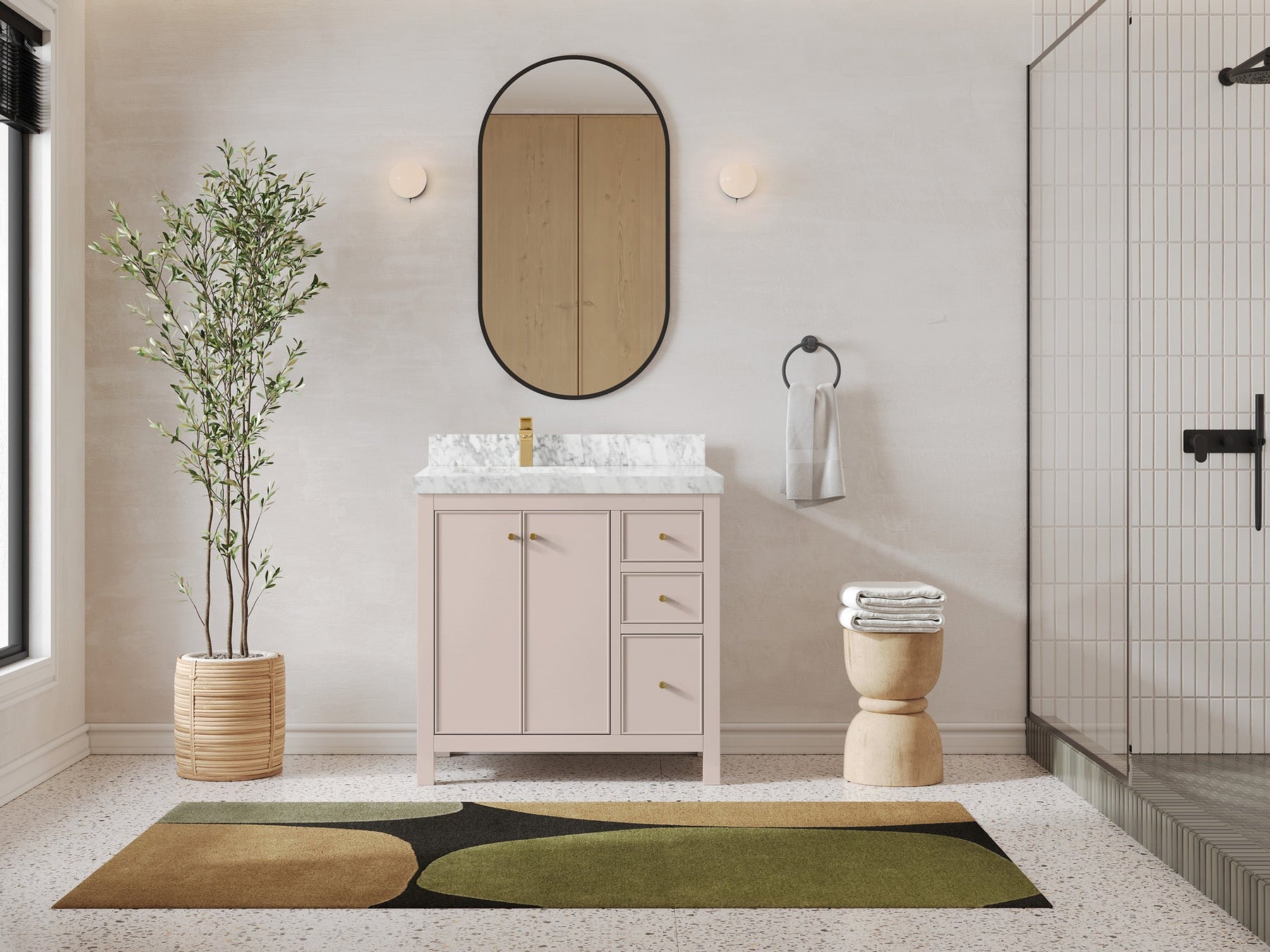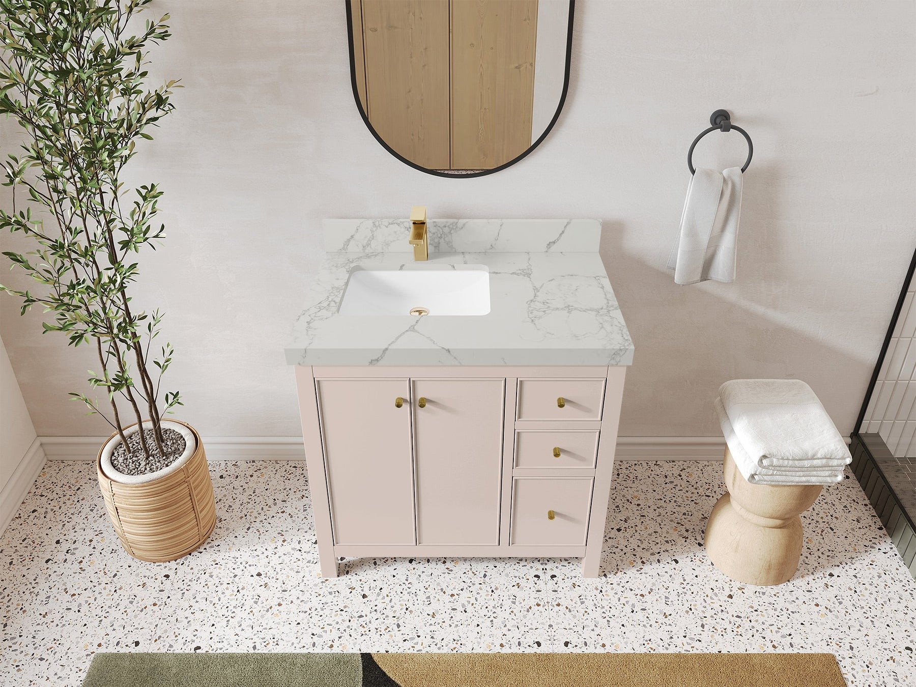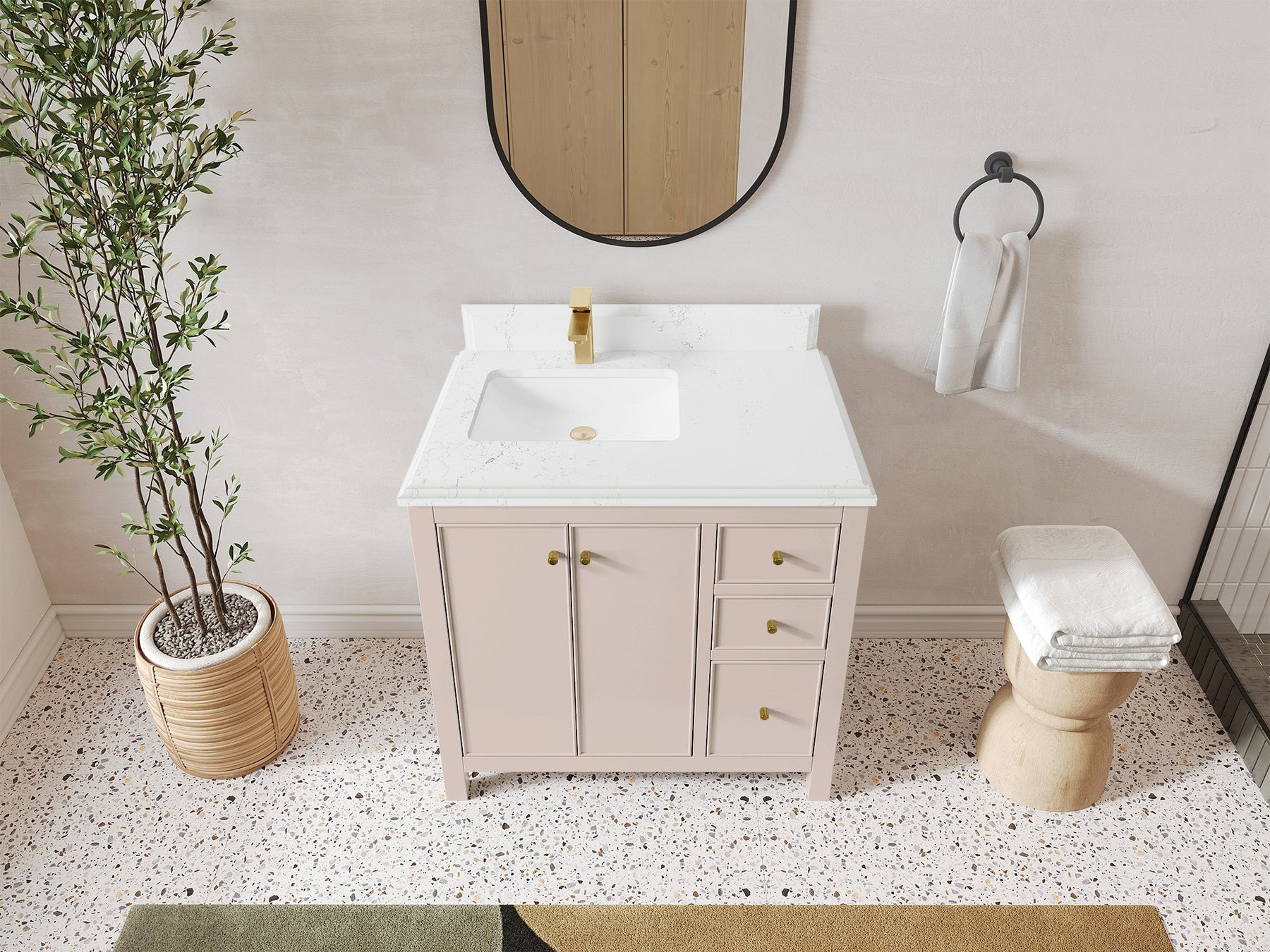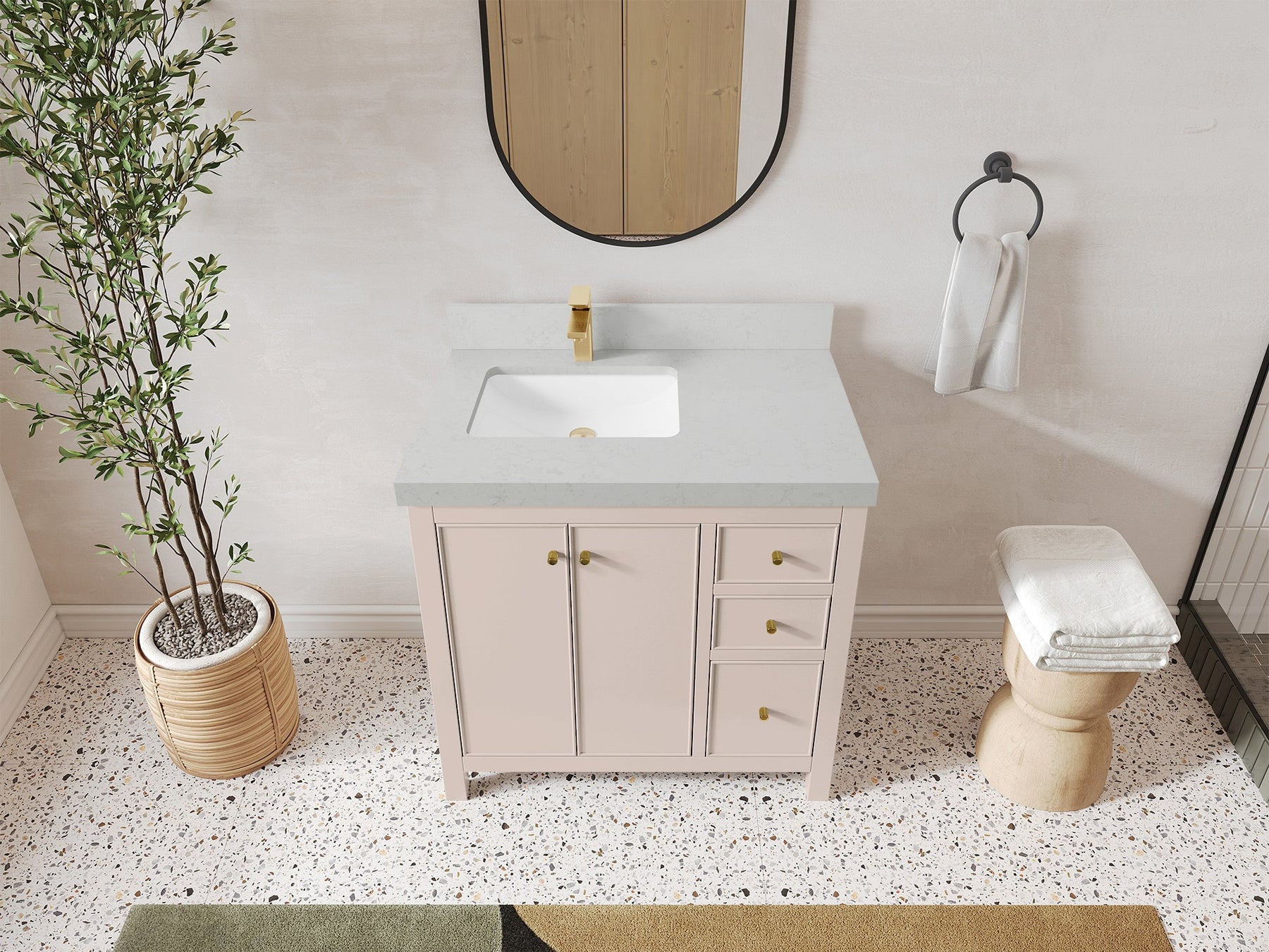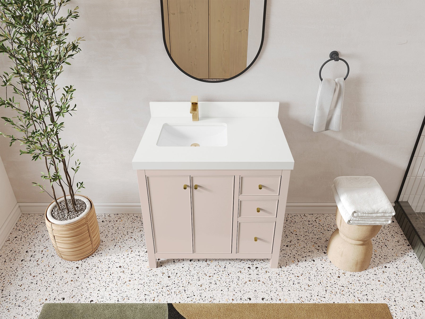 Chicago 36 in. W x 22 in. D Left Offset Sink Bathroom Vanity | Pink