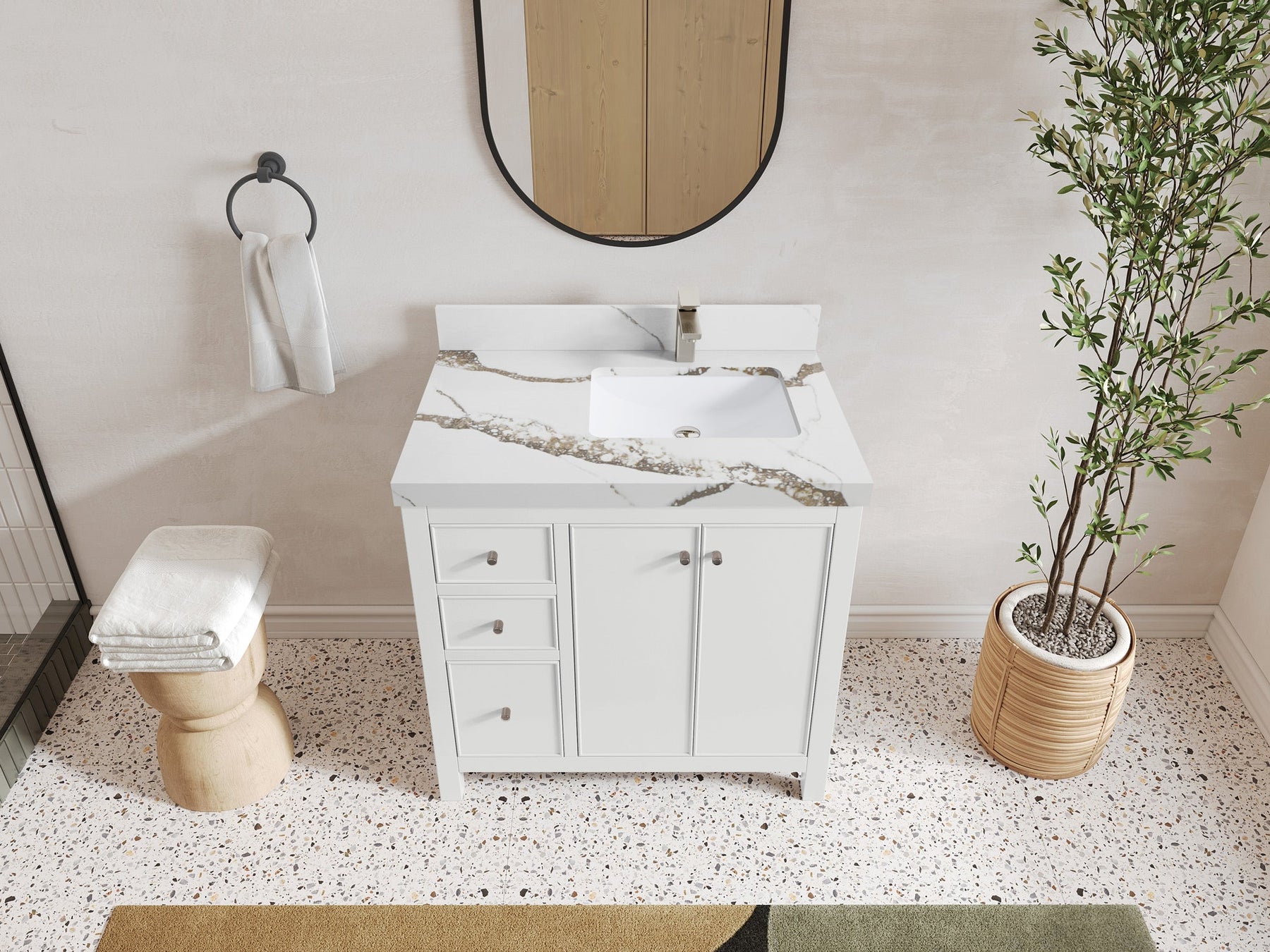 Chicago 36 in. W x 22 in. D Right Offset Sink Bathroom Vanity | White
