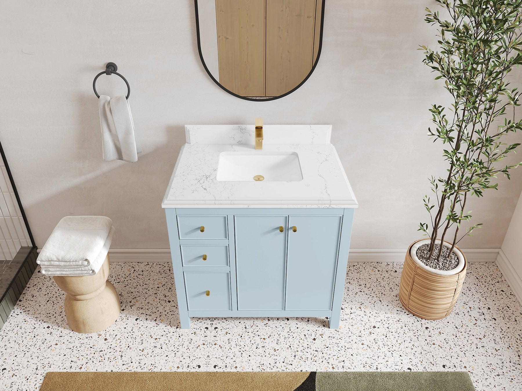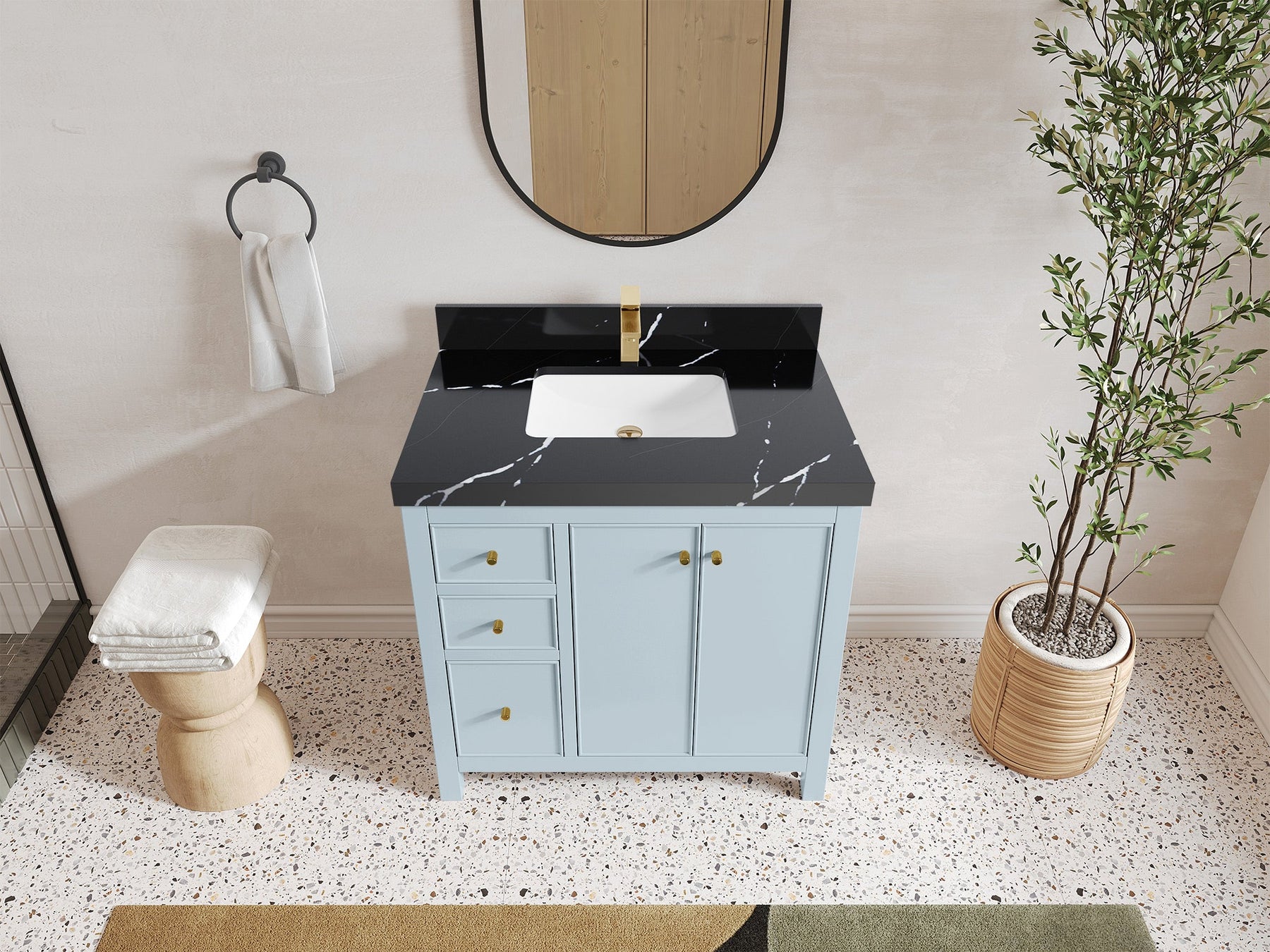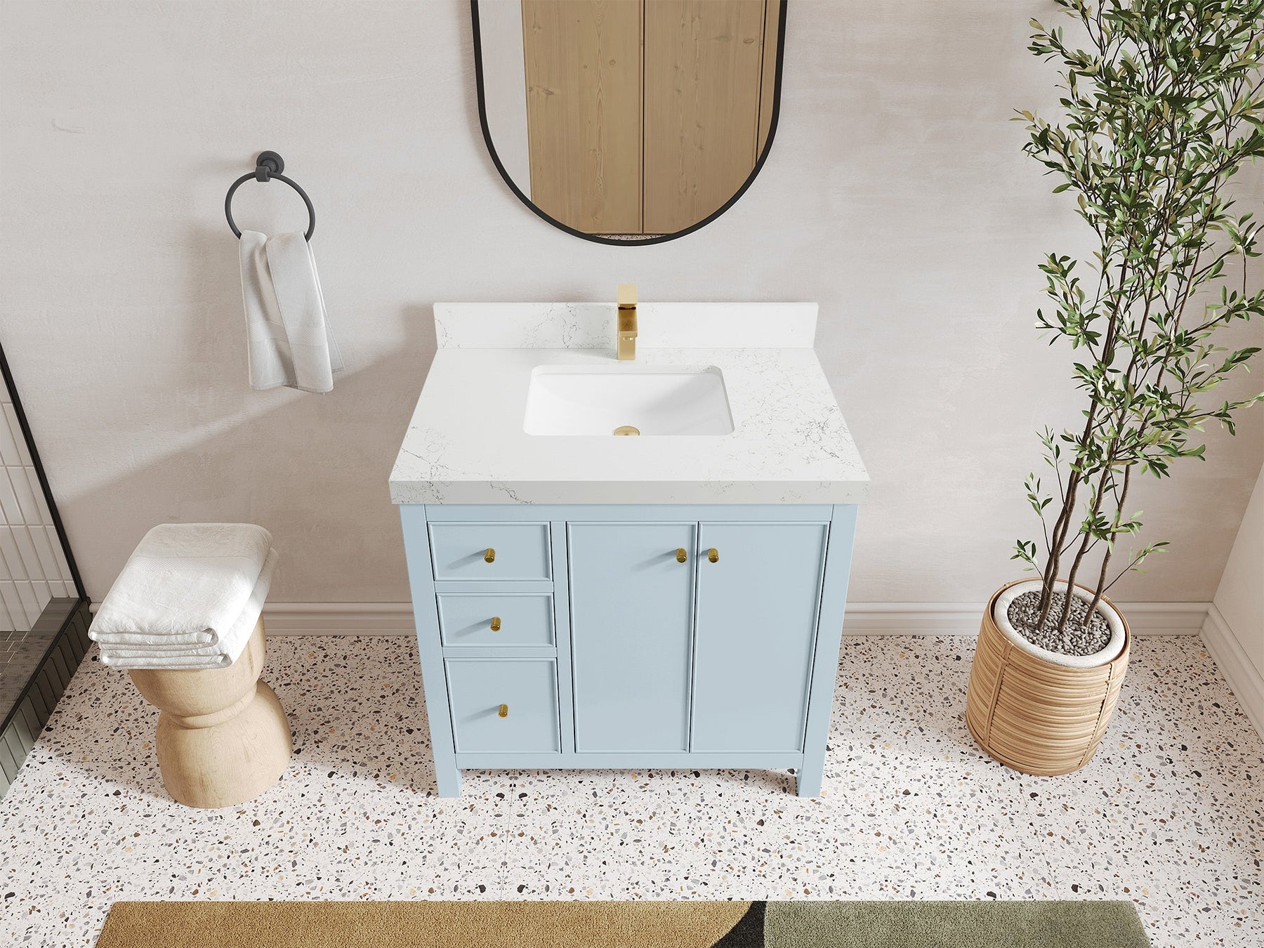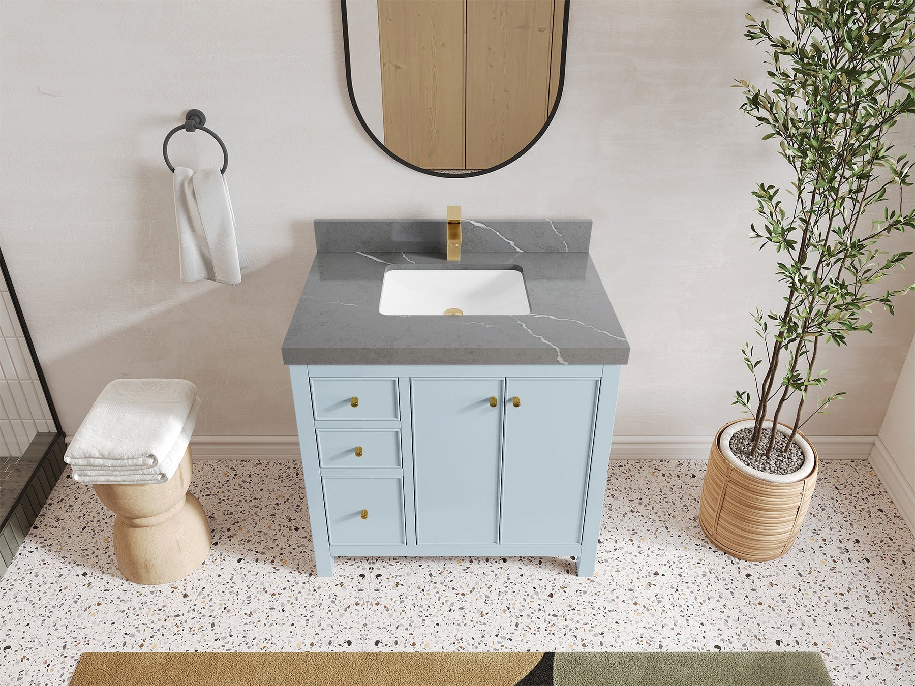 Chicago 36 in. W x 22 in. D Center Sink Bathroom Vanity | Blue Heather