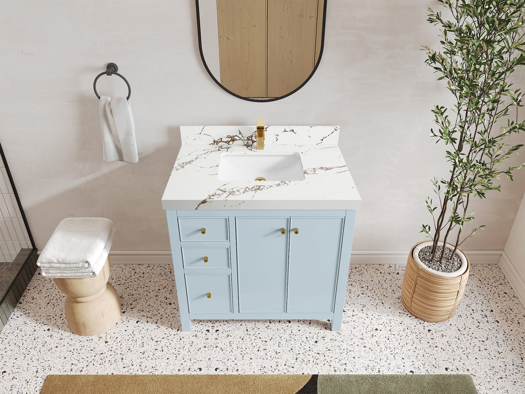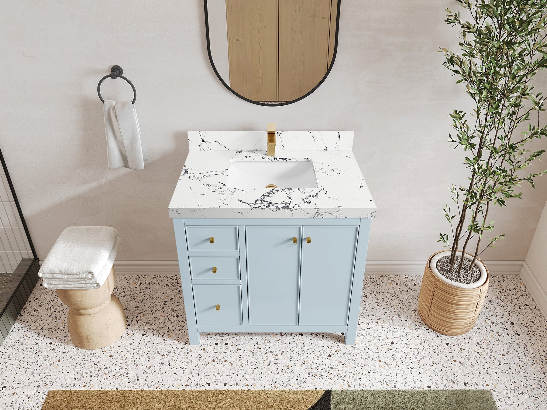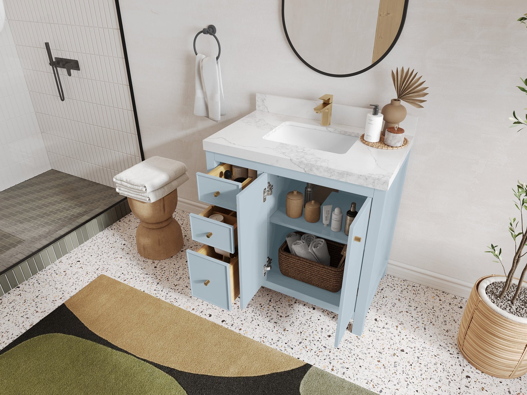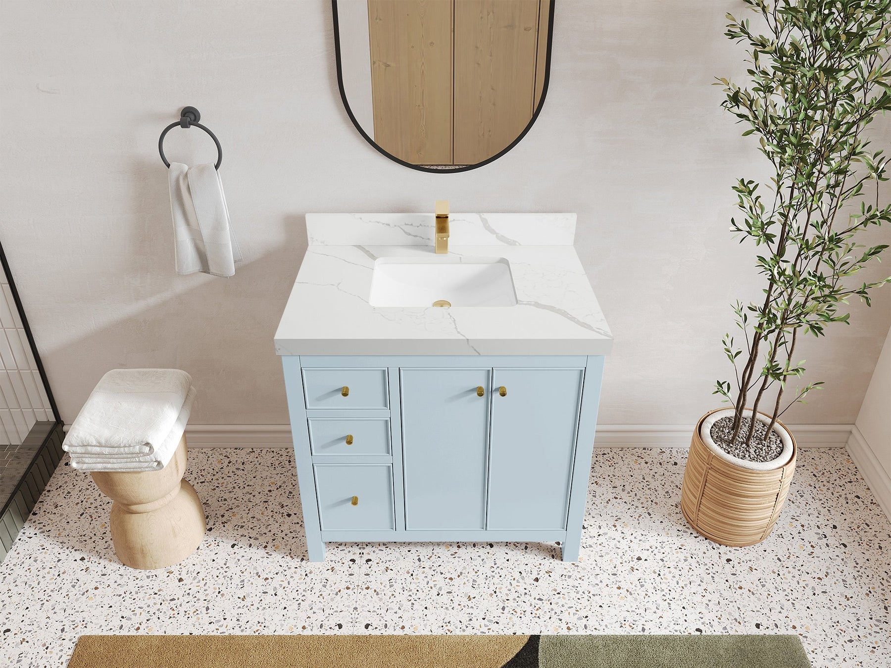 Chicago 36 in. W x 22 in. D Center Sink Bathroom Vanity | Blue Heather