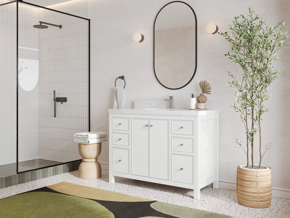 Pairing modern functionality with enduring beauty, Willow Bath & Vanity offers one of the largest selections of bathroom vanities in the U.S.—over 55,000 variations to choose from. Each piece is crafted from premium woods like birch, white oak, teak, and mango, and finished with elegant quartz, marble, or terrazzo countertops.