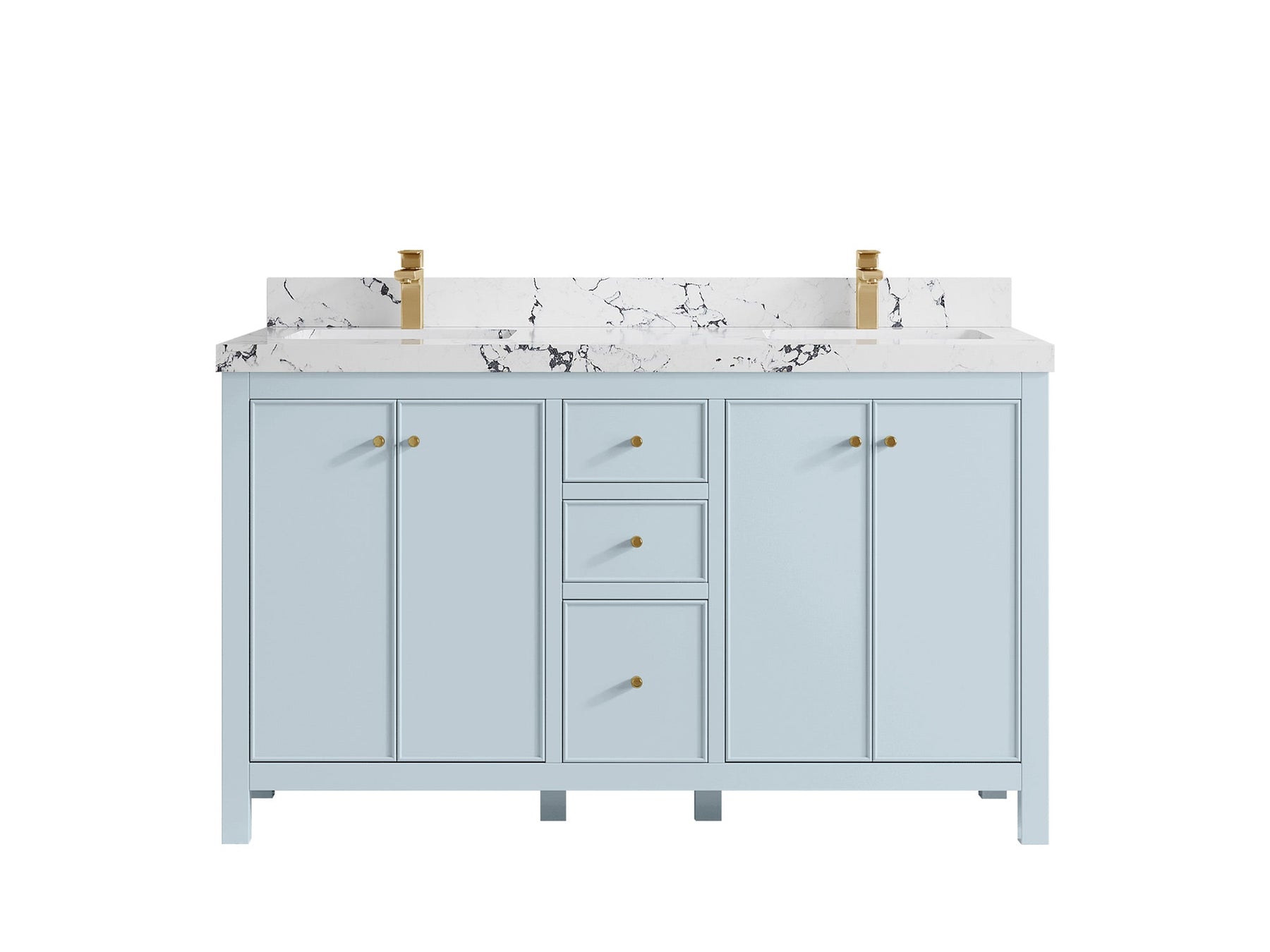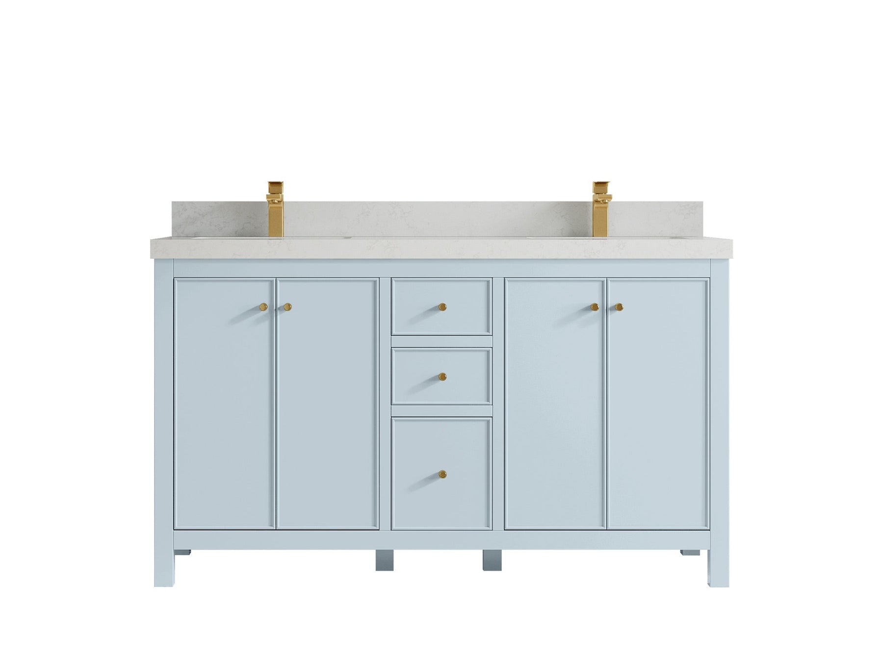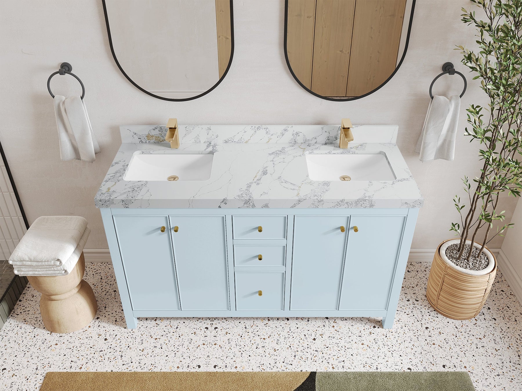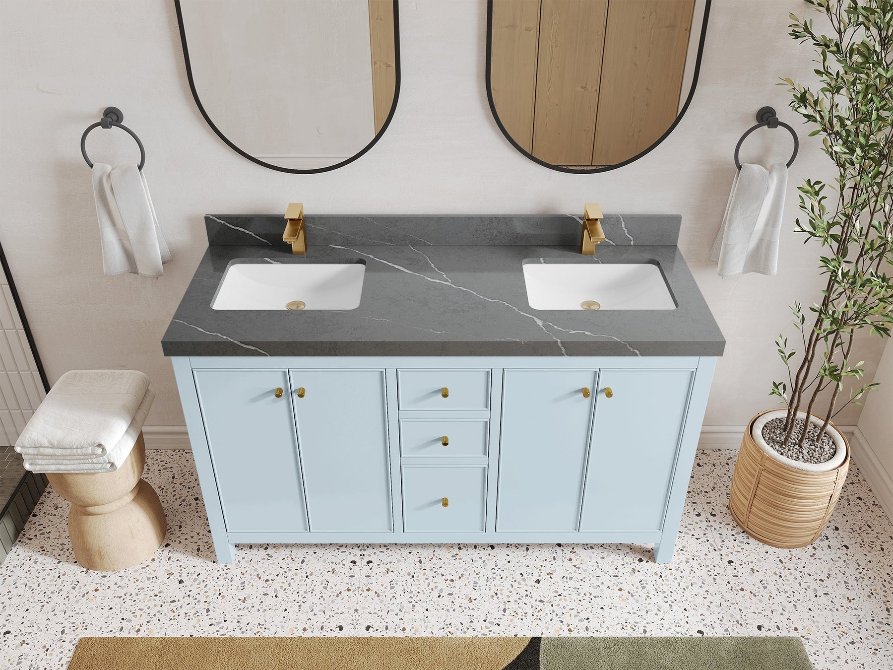 Chicago 60 in. W x 22 in. D Double Sink Bathroom Vanity | Blue Heather