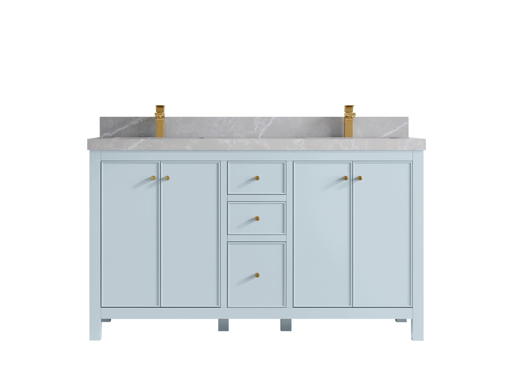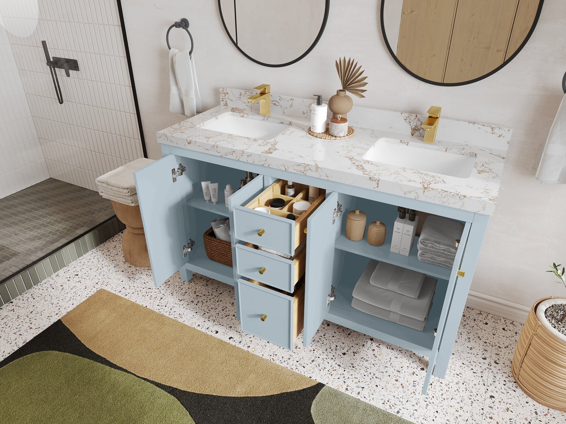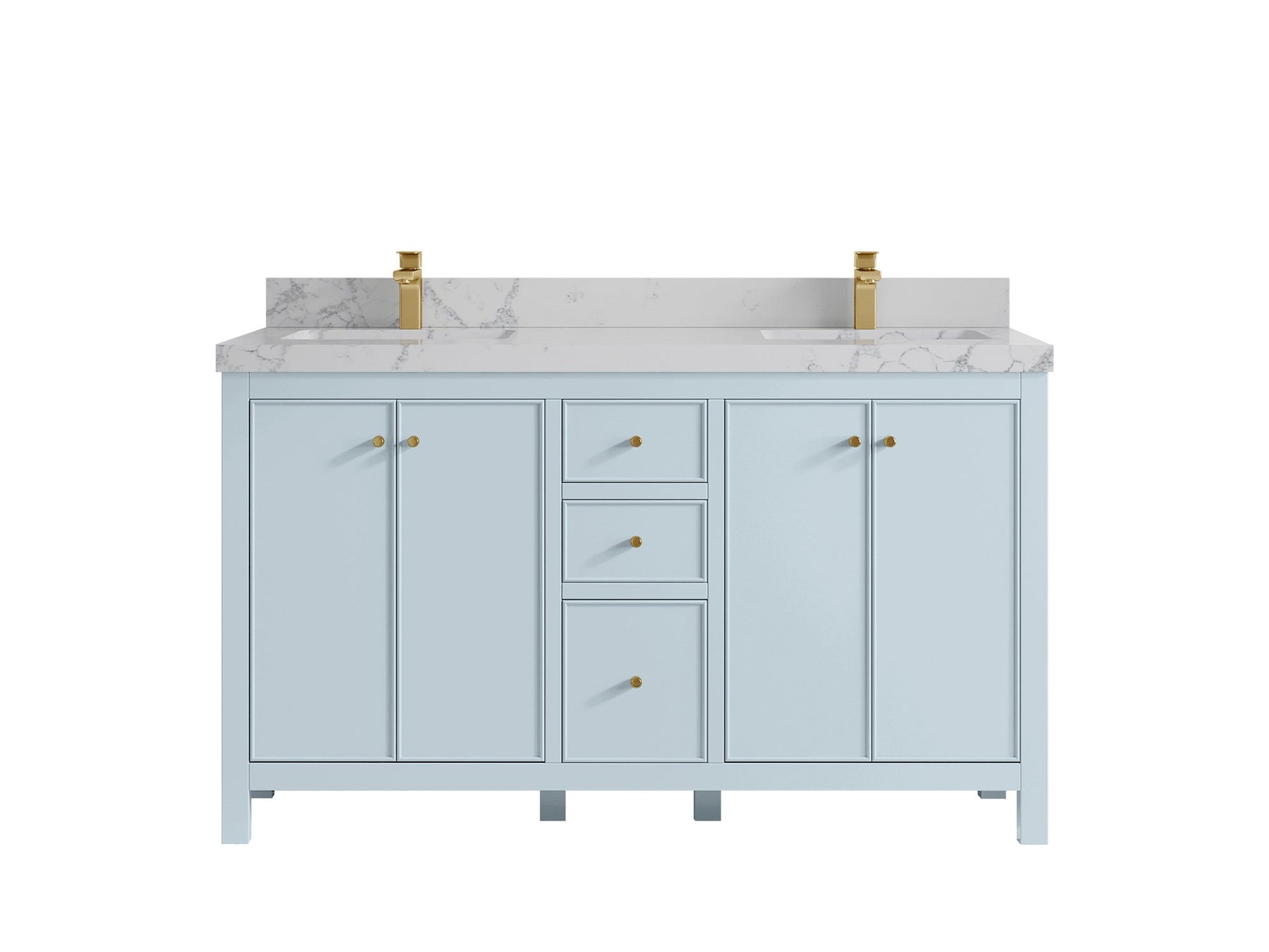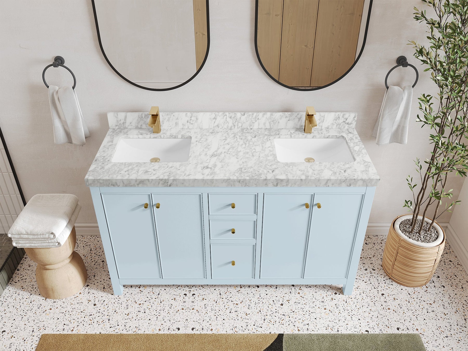 Chicago 60 in. W x 22 in. D Double Sink Bathroom Vanity | Blue Heather