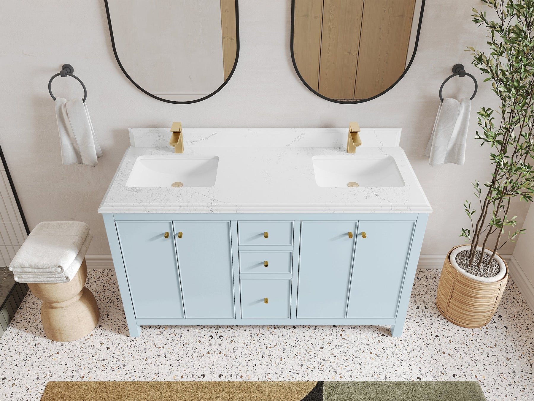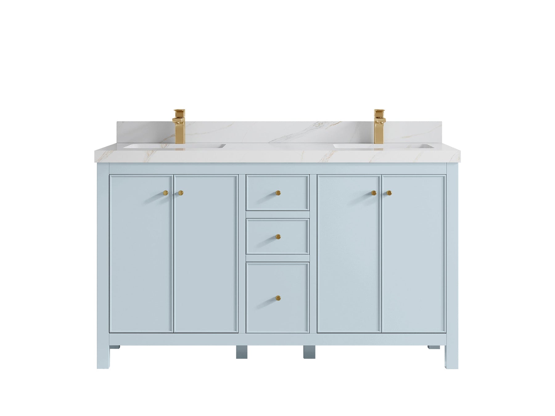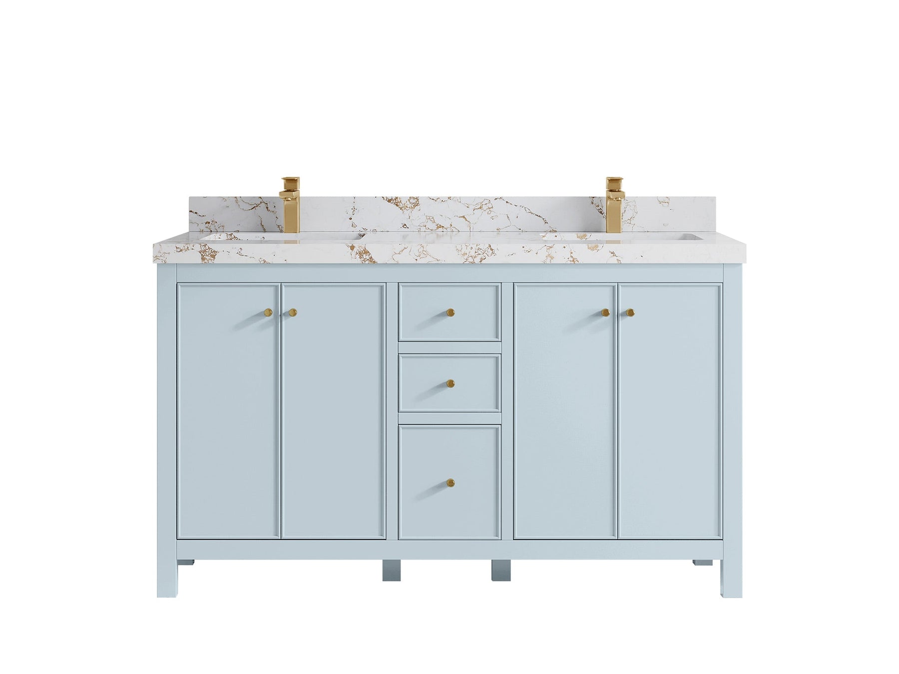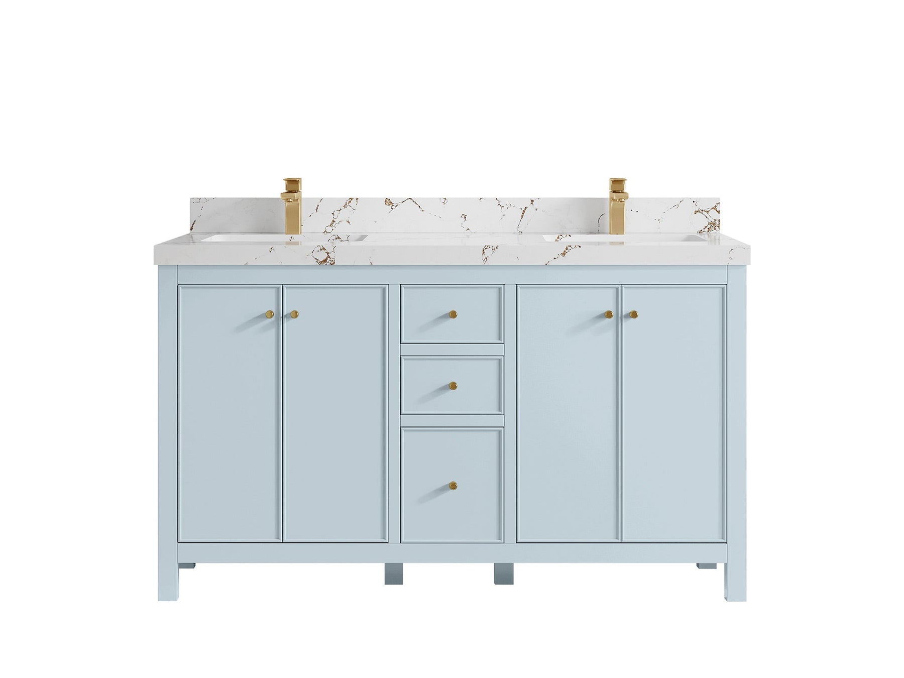 Chicago 60 in. W x 22 in. D Double Sink Bathroom Vanity | Blue Heather