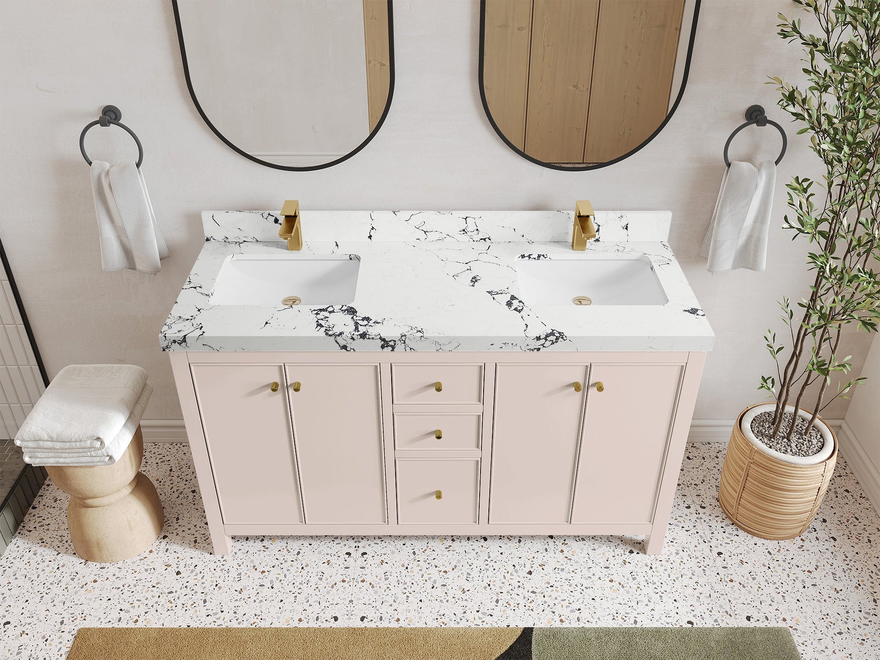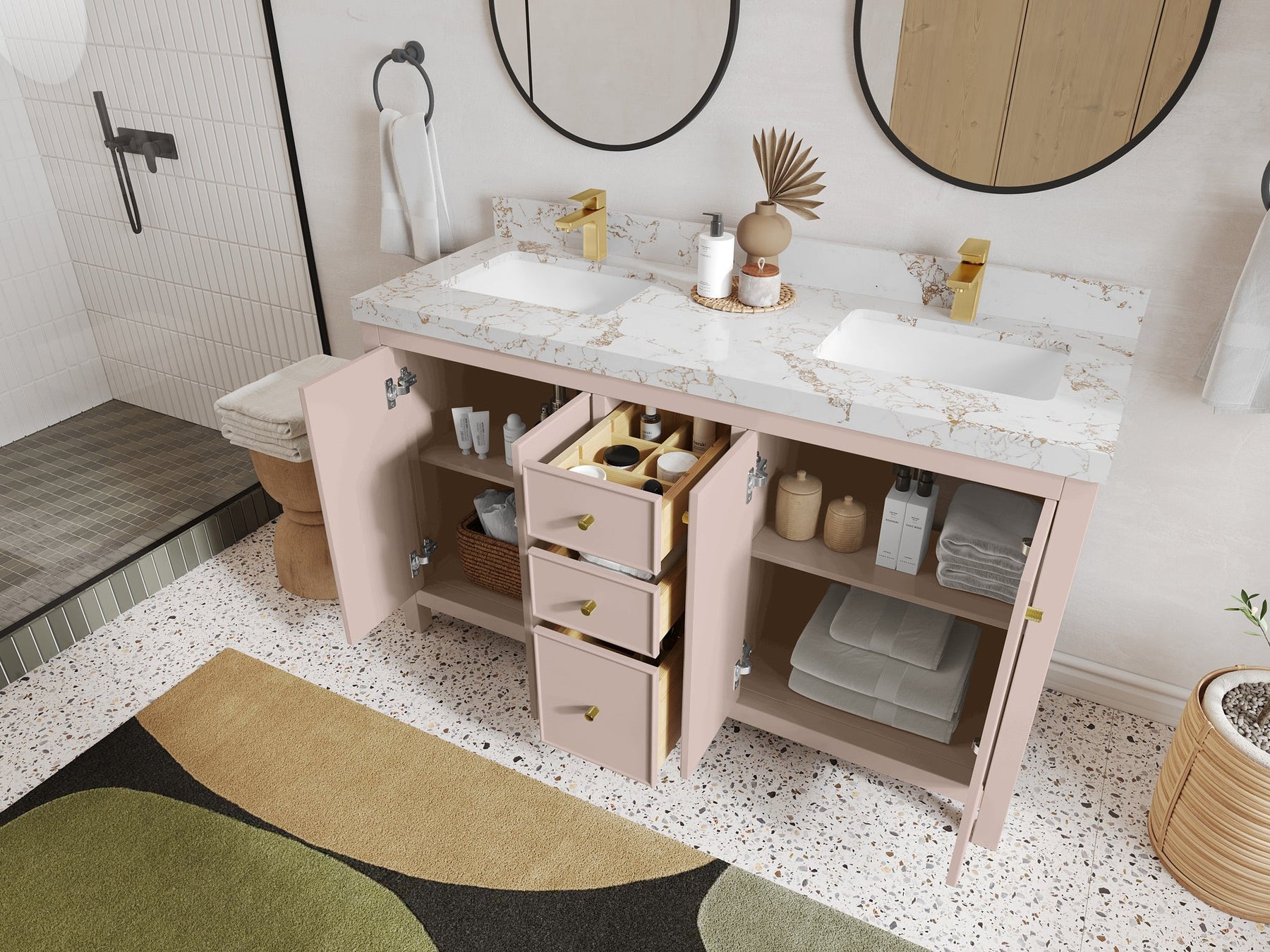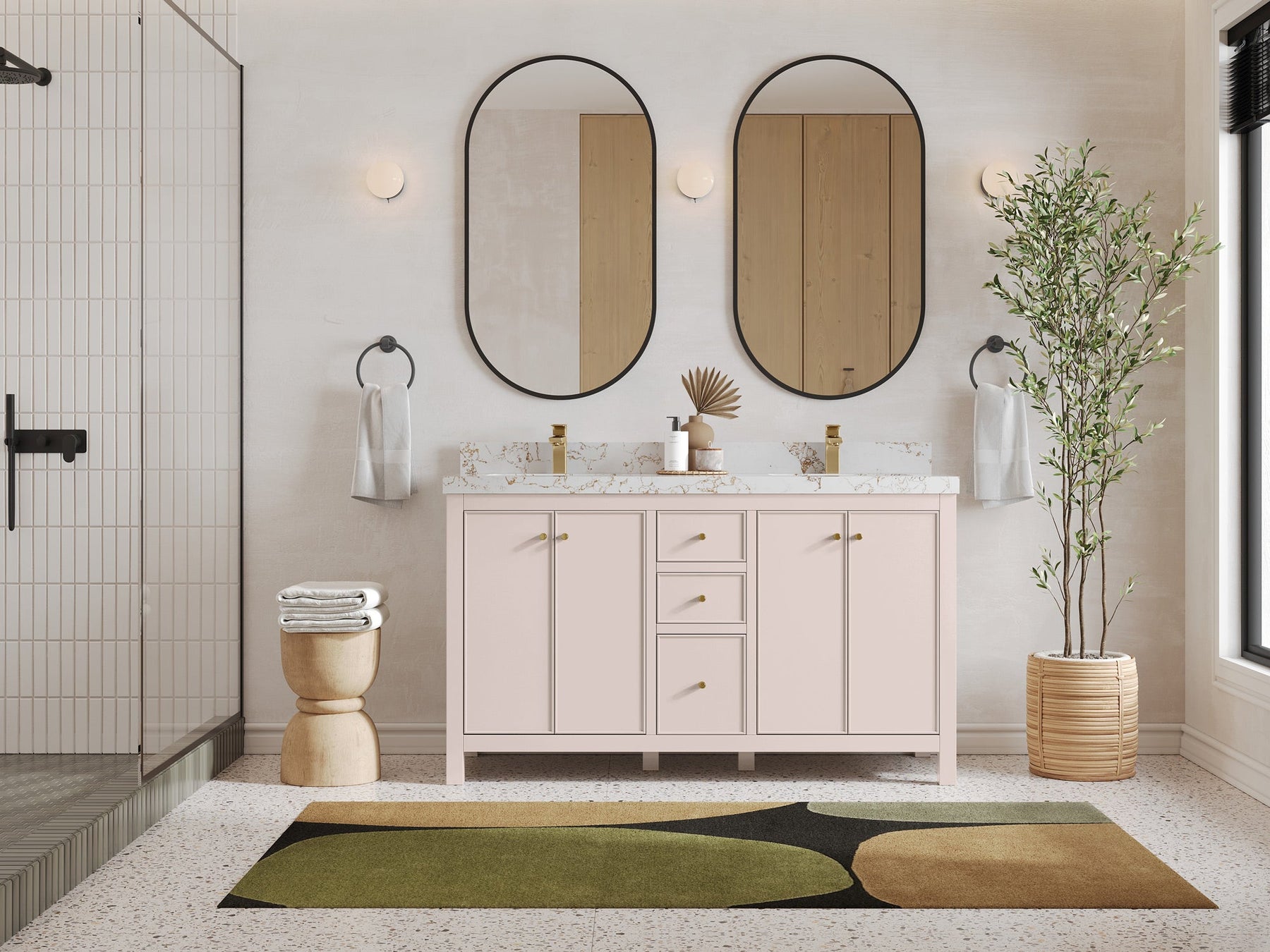 Chicago 60 in. W x 22 in. D Double Sink Bathroom Vanity | Pink