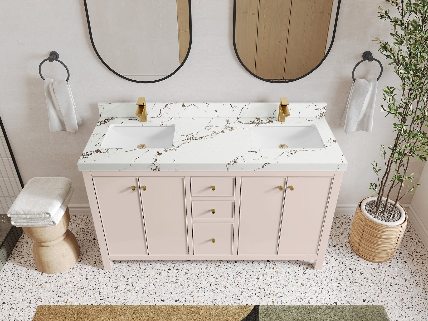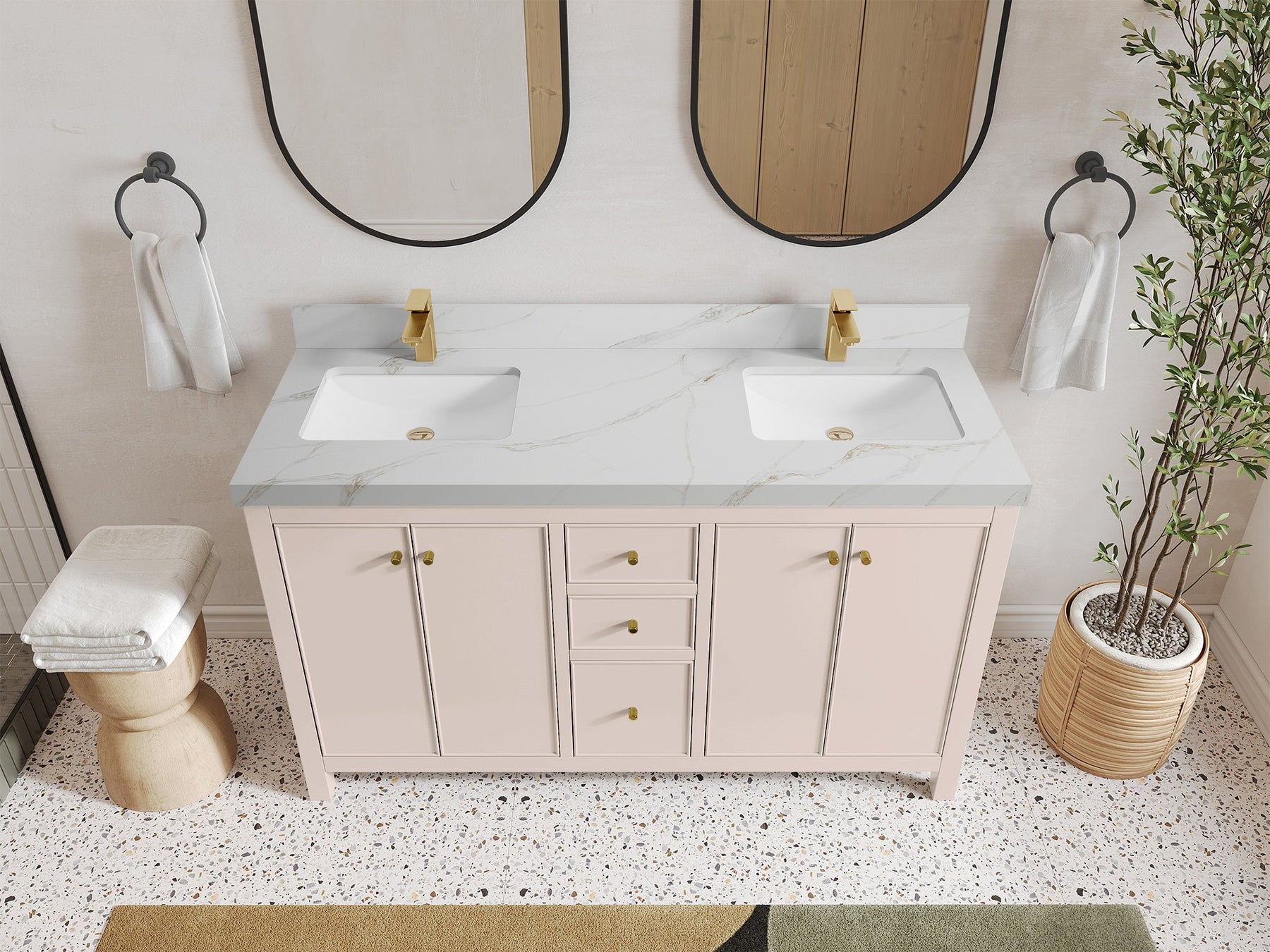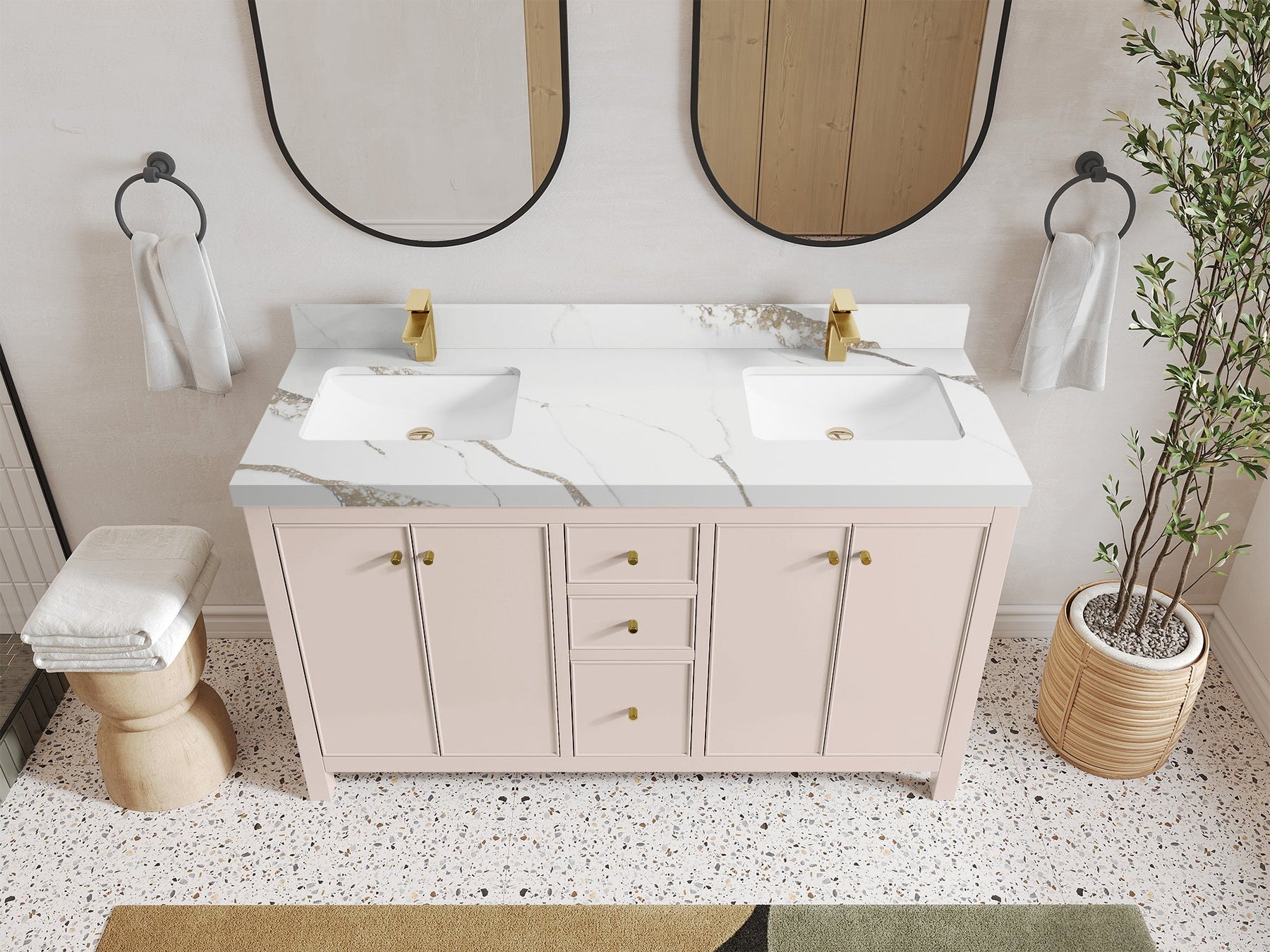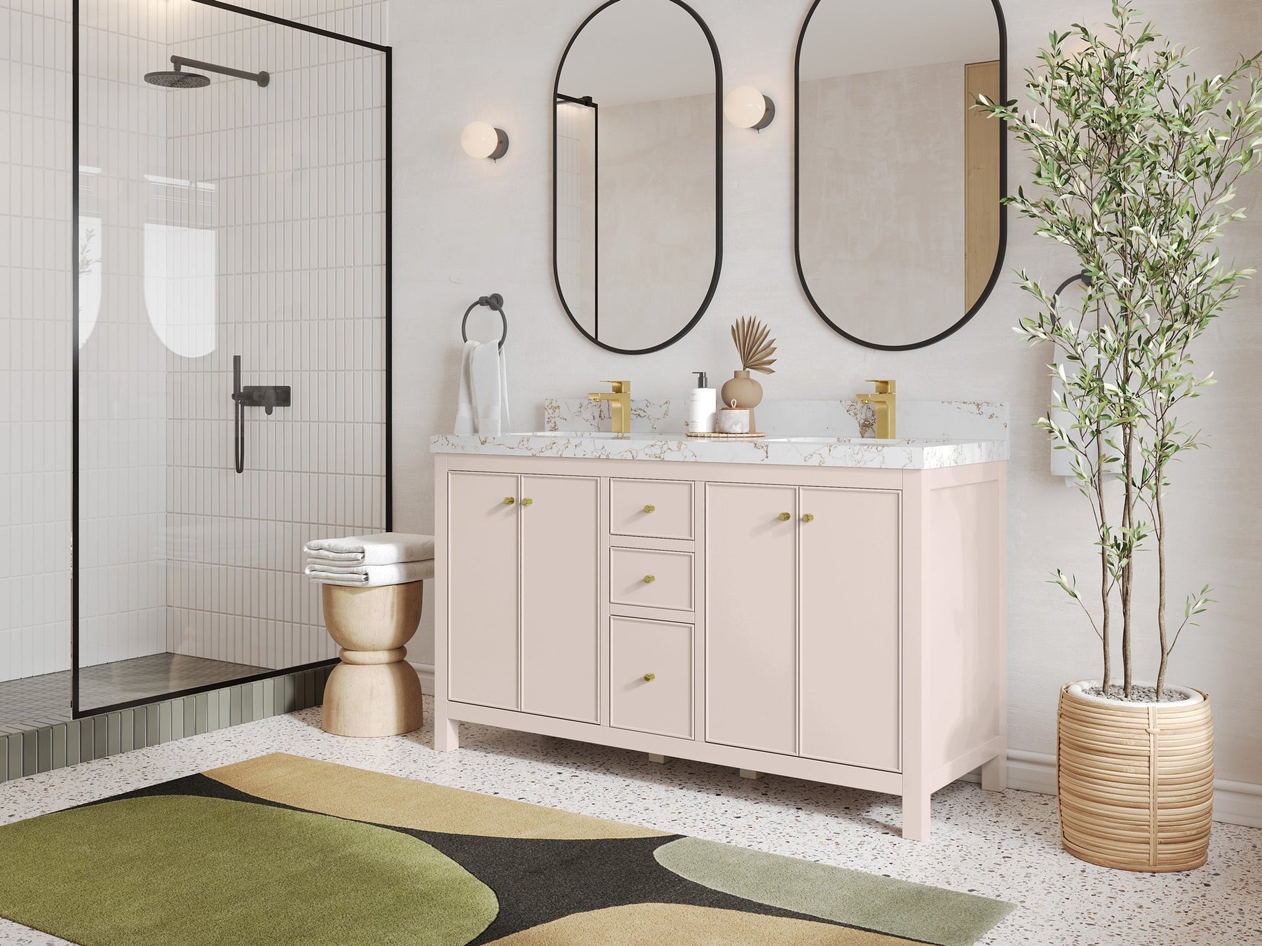 Chicago 60 in. W x 22 in. D Double Sink Bathroom Vanity | Pink