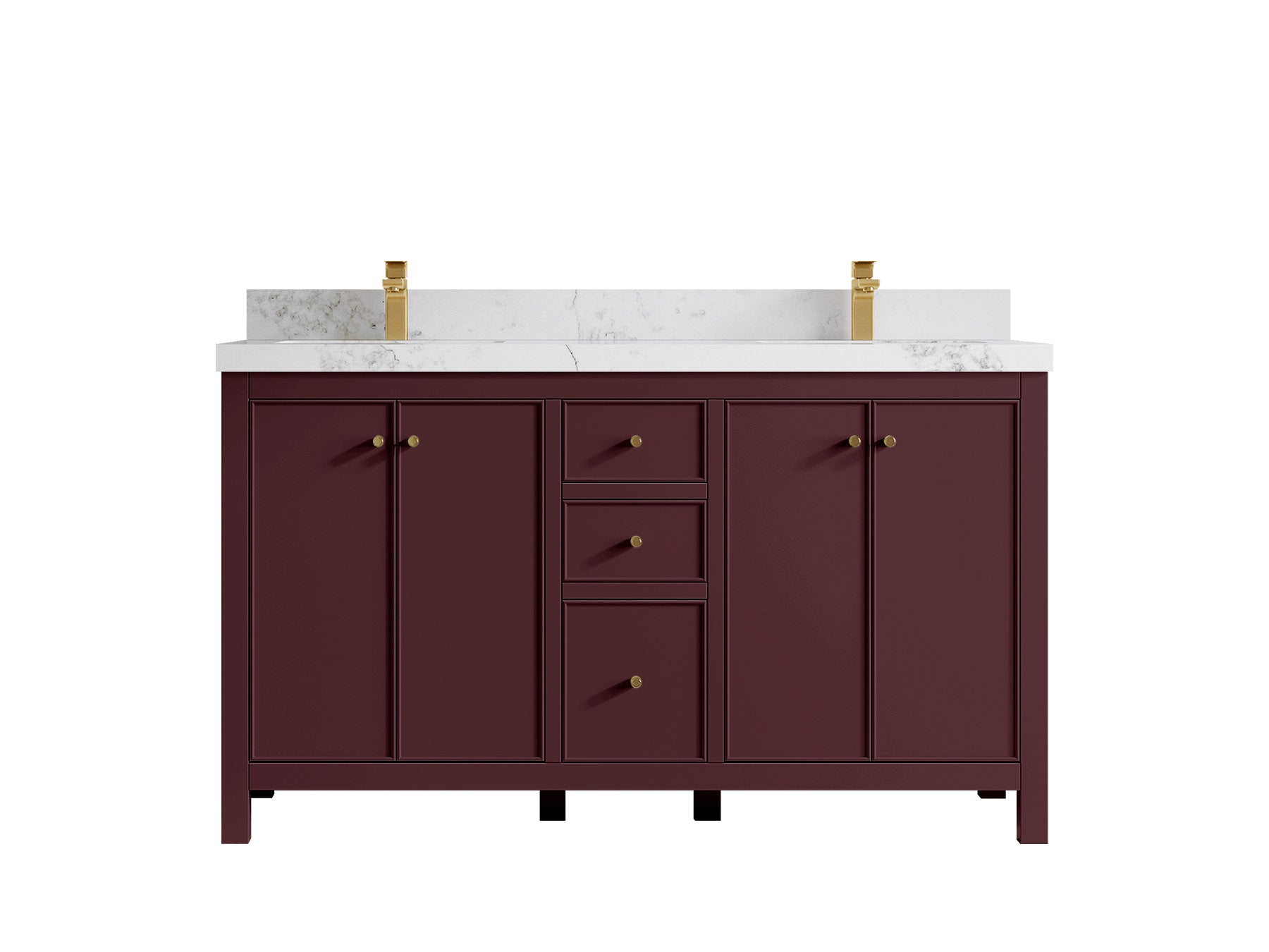 Chicago 60 in. W x 22 in. D Double Sink Bathroom Vanity | Burgundy