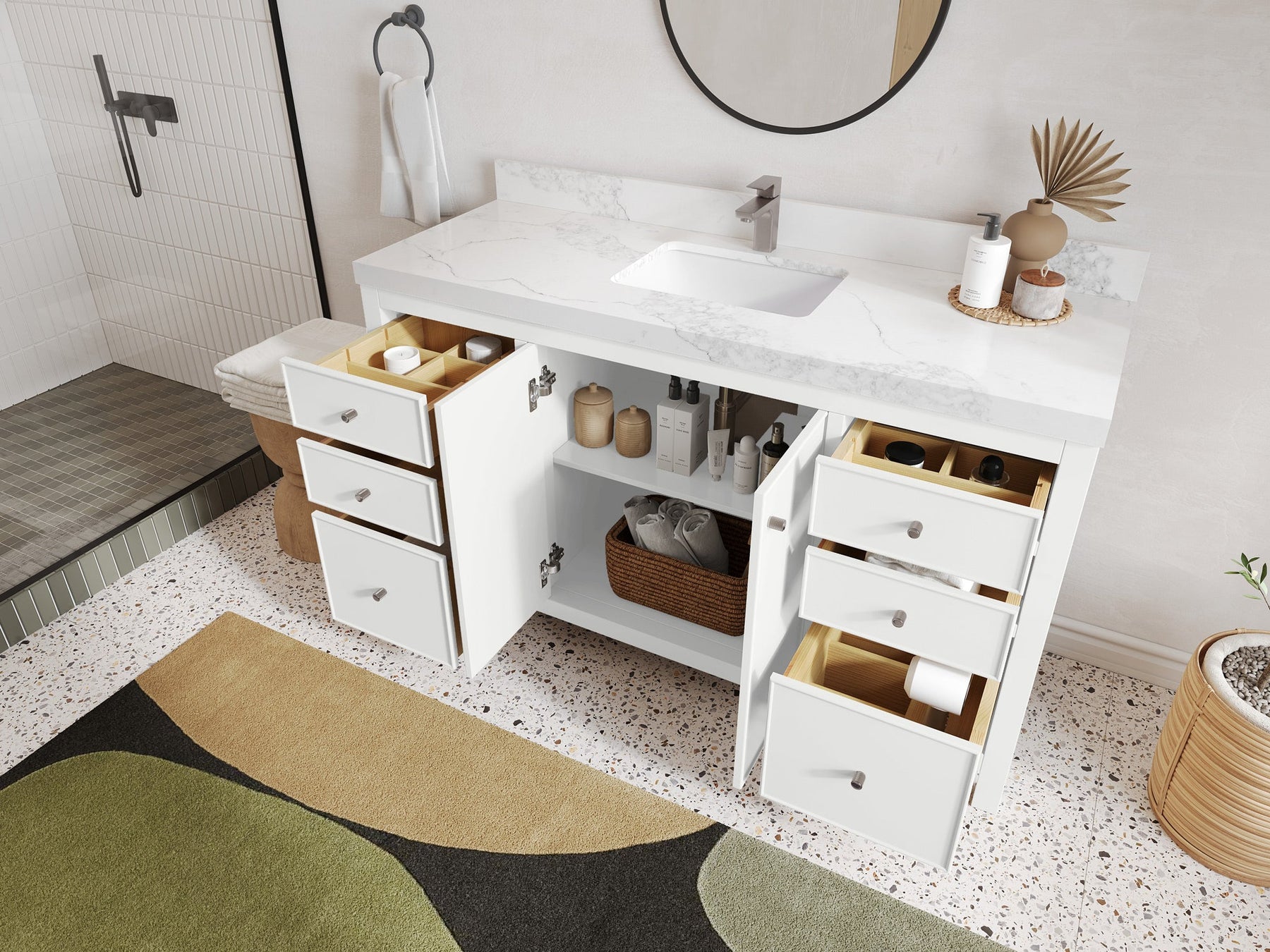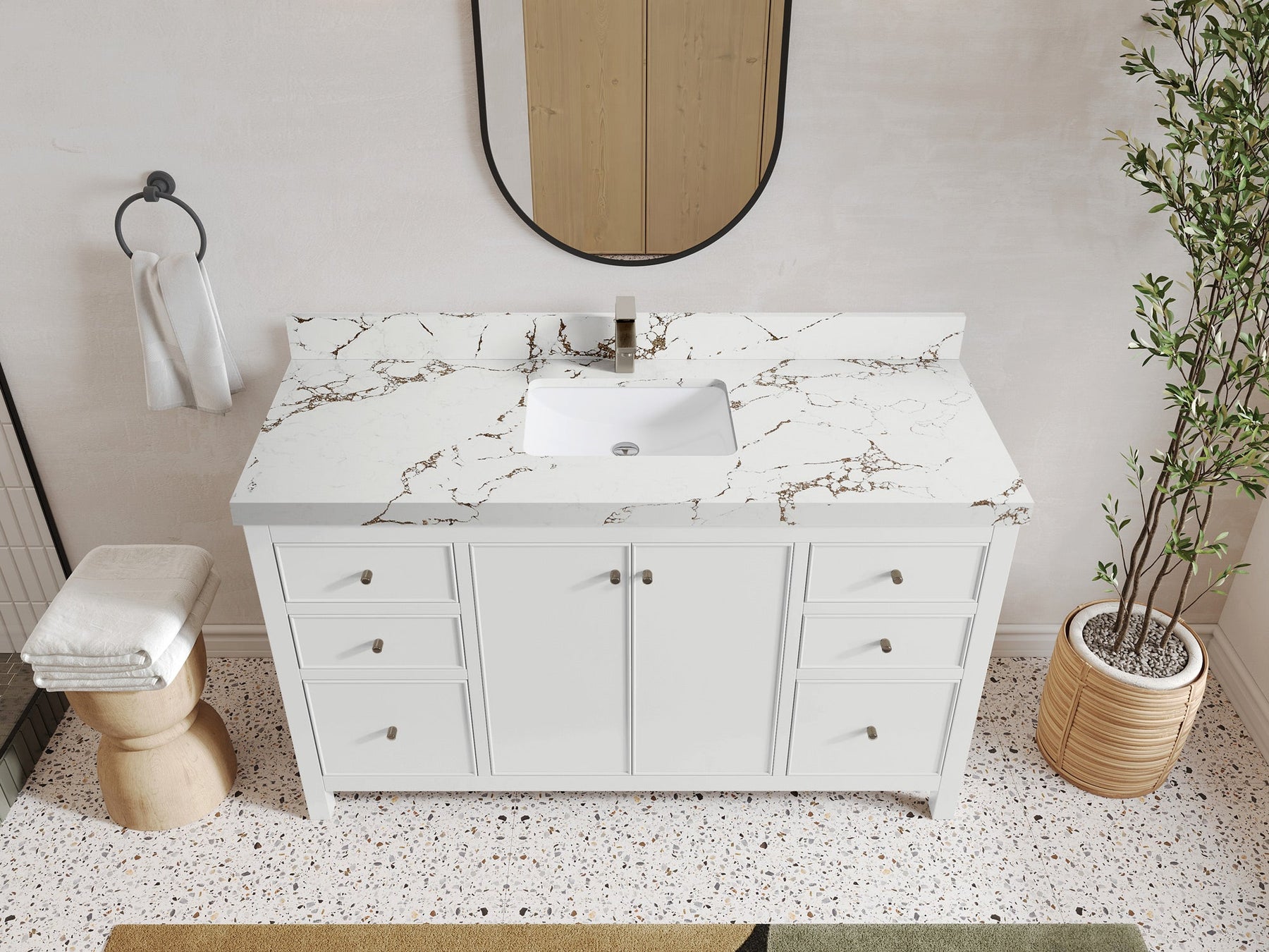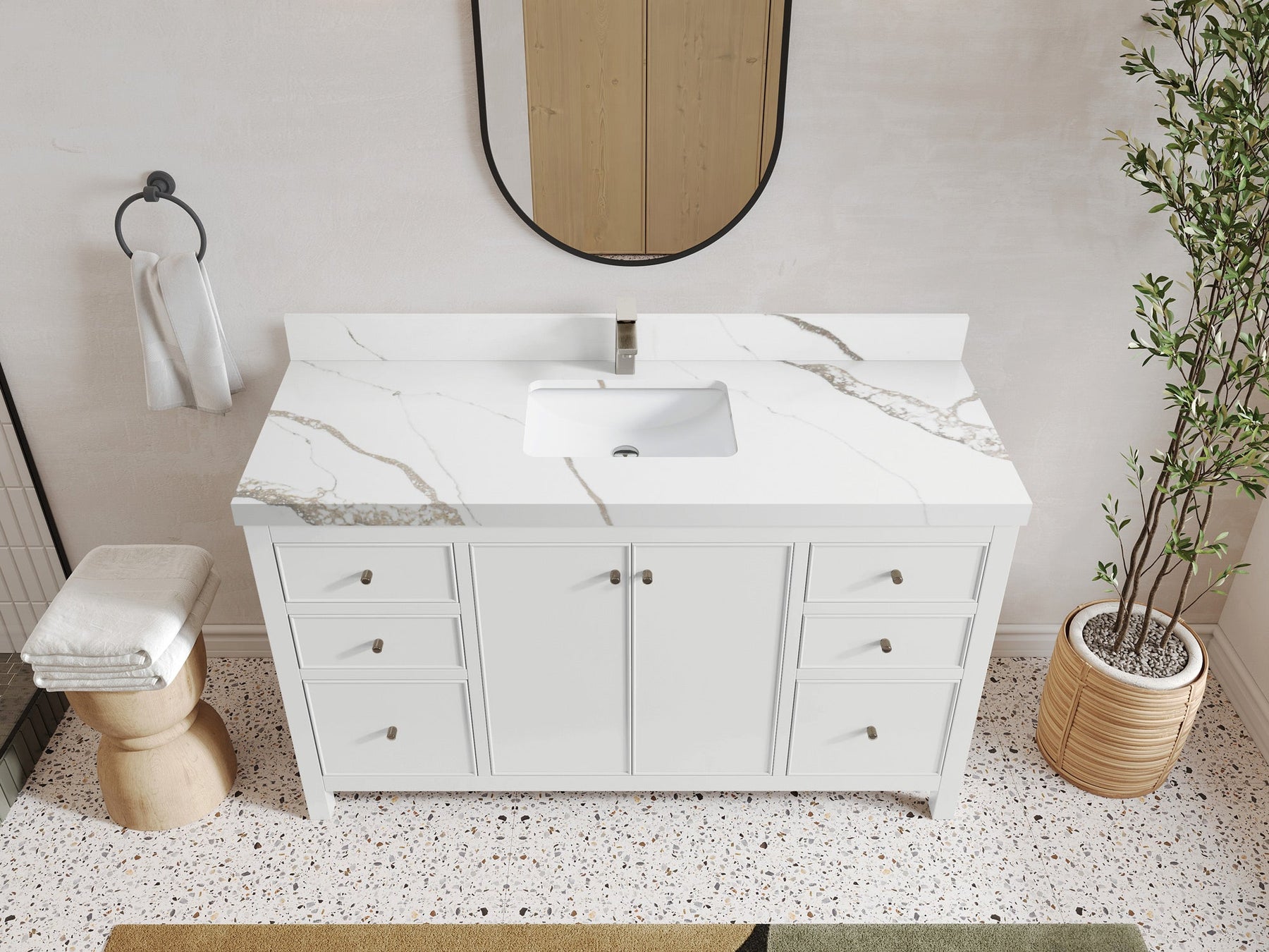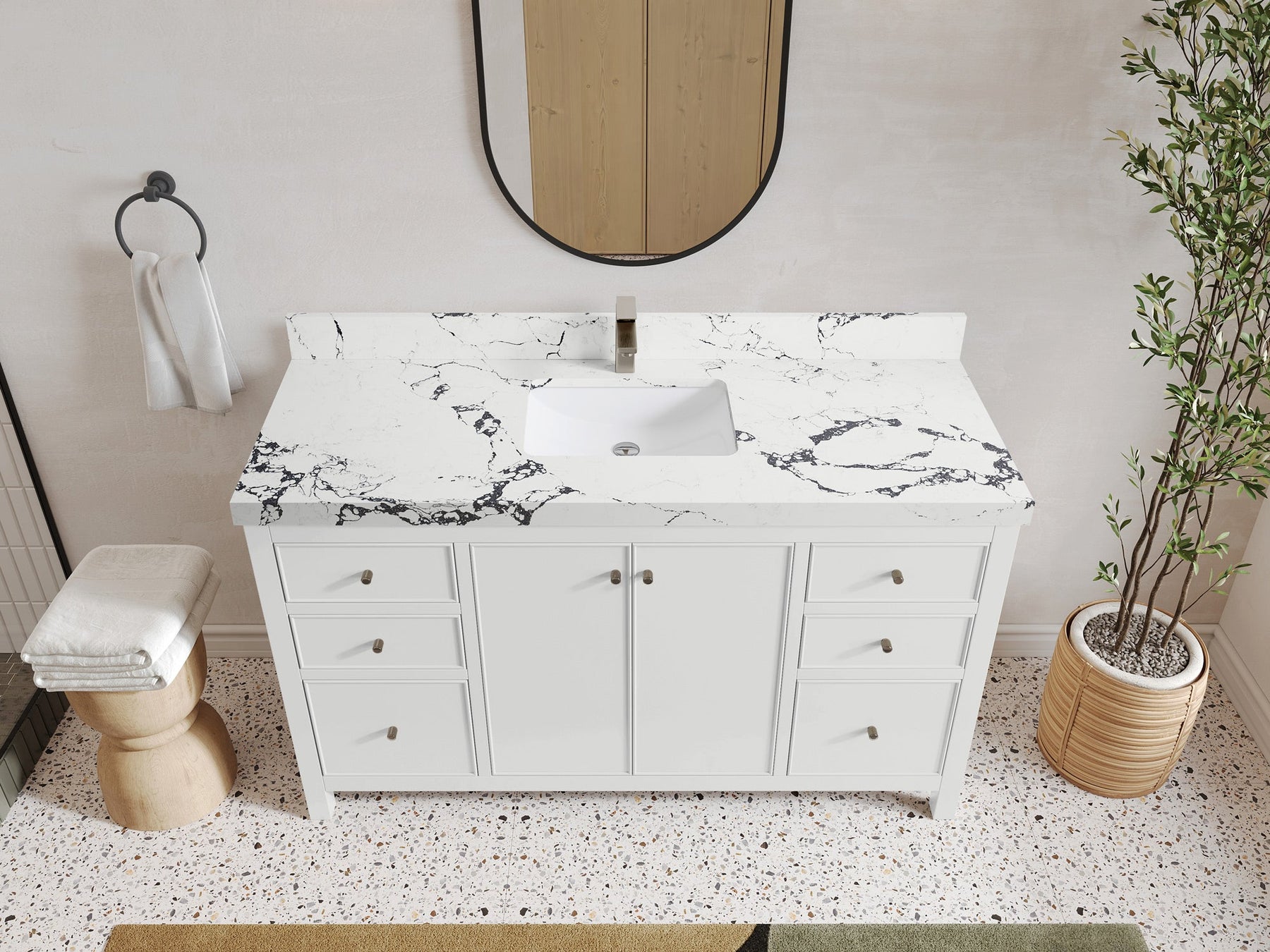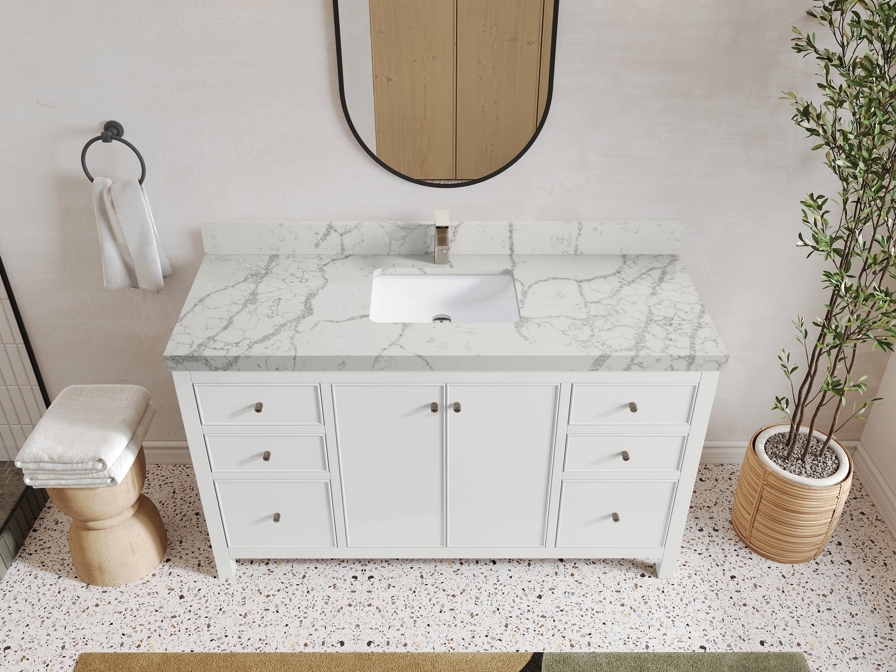 Faucet Hole(S): Comes with Single Faucet, 8 (in.) Widespread Faucet, Wall mount Faucets - Only Available for White Quartz and Carrara Quartz. (PLEASE ADD THIS CONFIGURATION UNDER COUNTERTOPS SECTION )