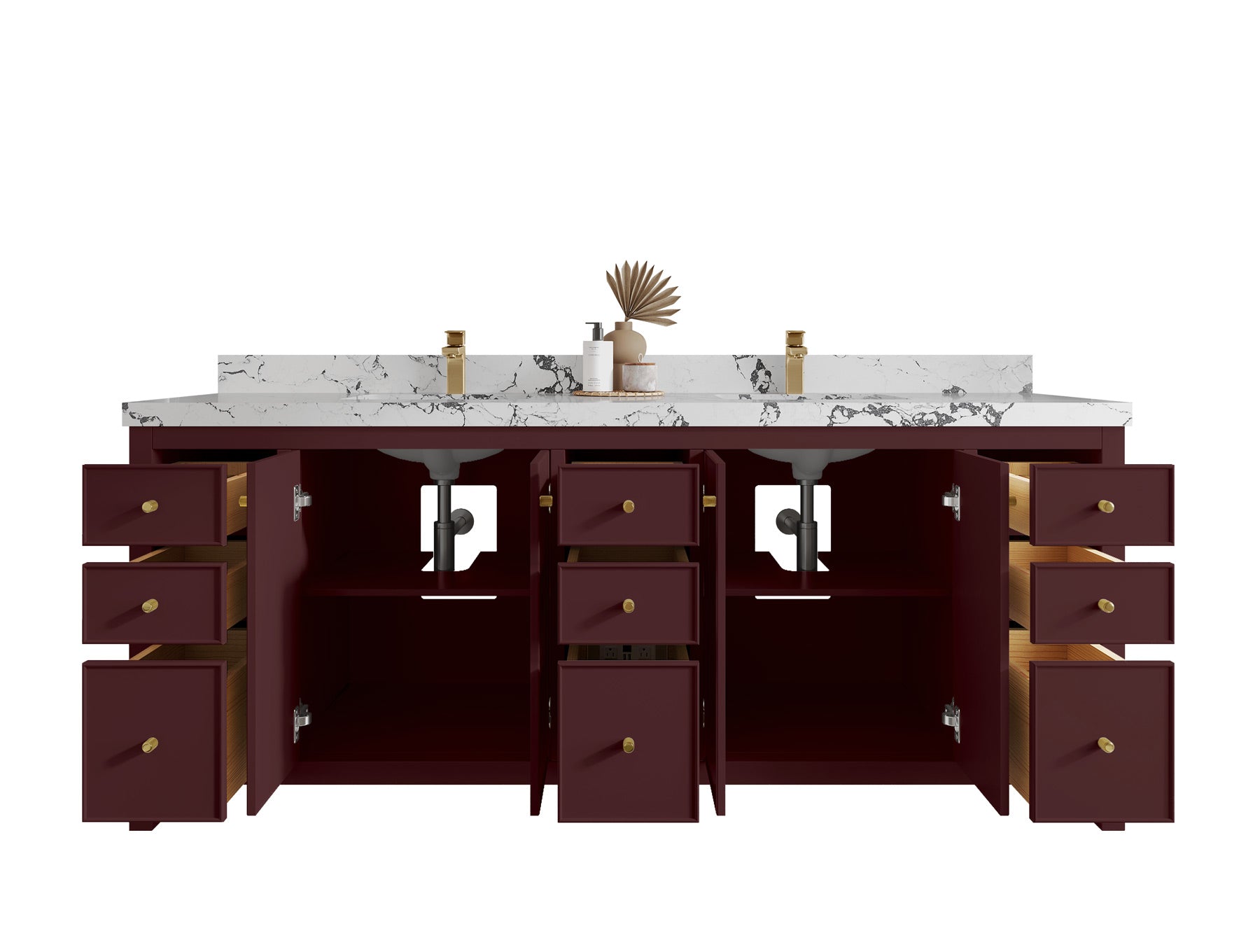 2. Durable Brass Hardware - This vanity is adorned with brass-finish hardware that not only adds a touch of luxury but also ensures long-lasting durability.