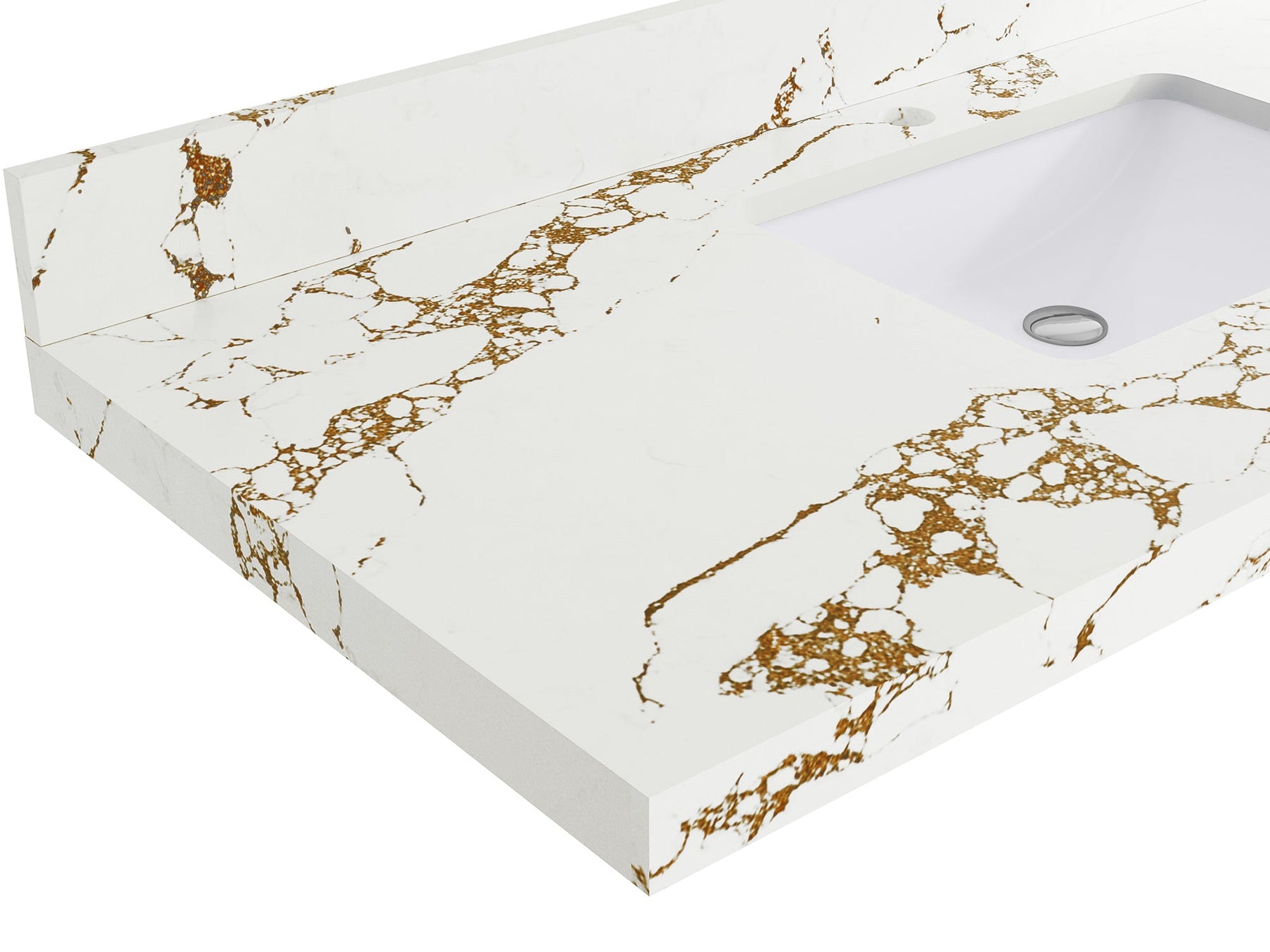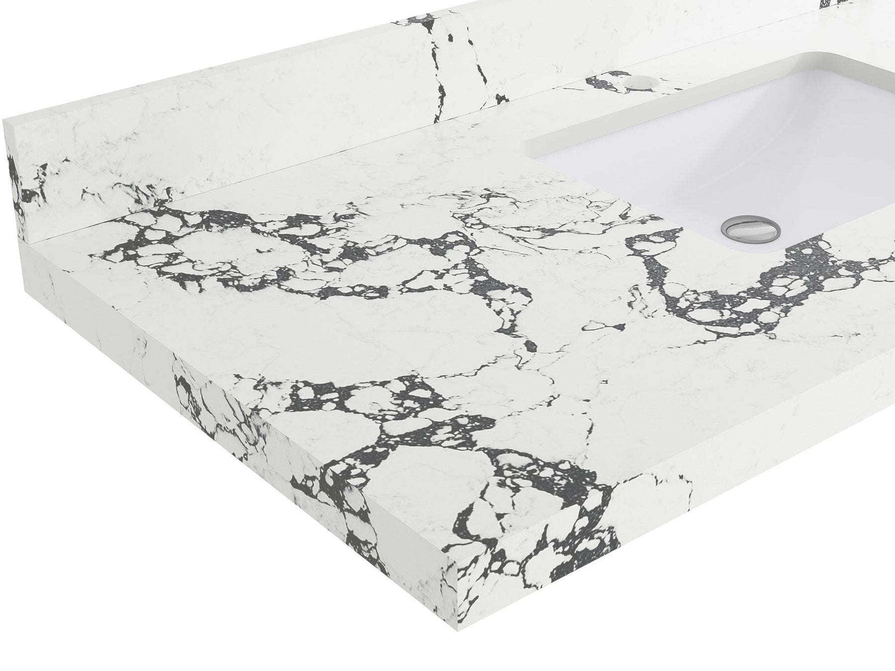 Faucet Hole(S): Comes with Single Faucet, 8 (in.) Widespread Faucet, Wall mount Faucets - Only Available for White Quartz and Carrara Quartz. (PLEASE ADD THIS CONFIGURATION UNDER COUNTERTOPS SECTION )