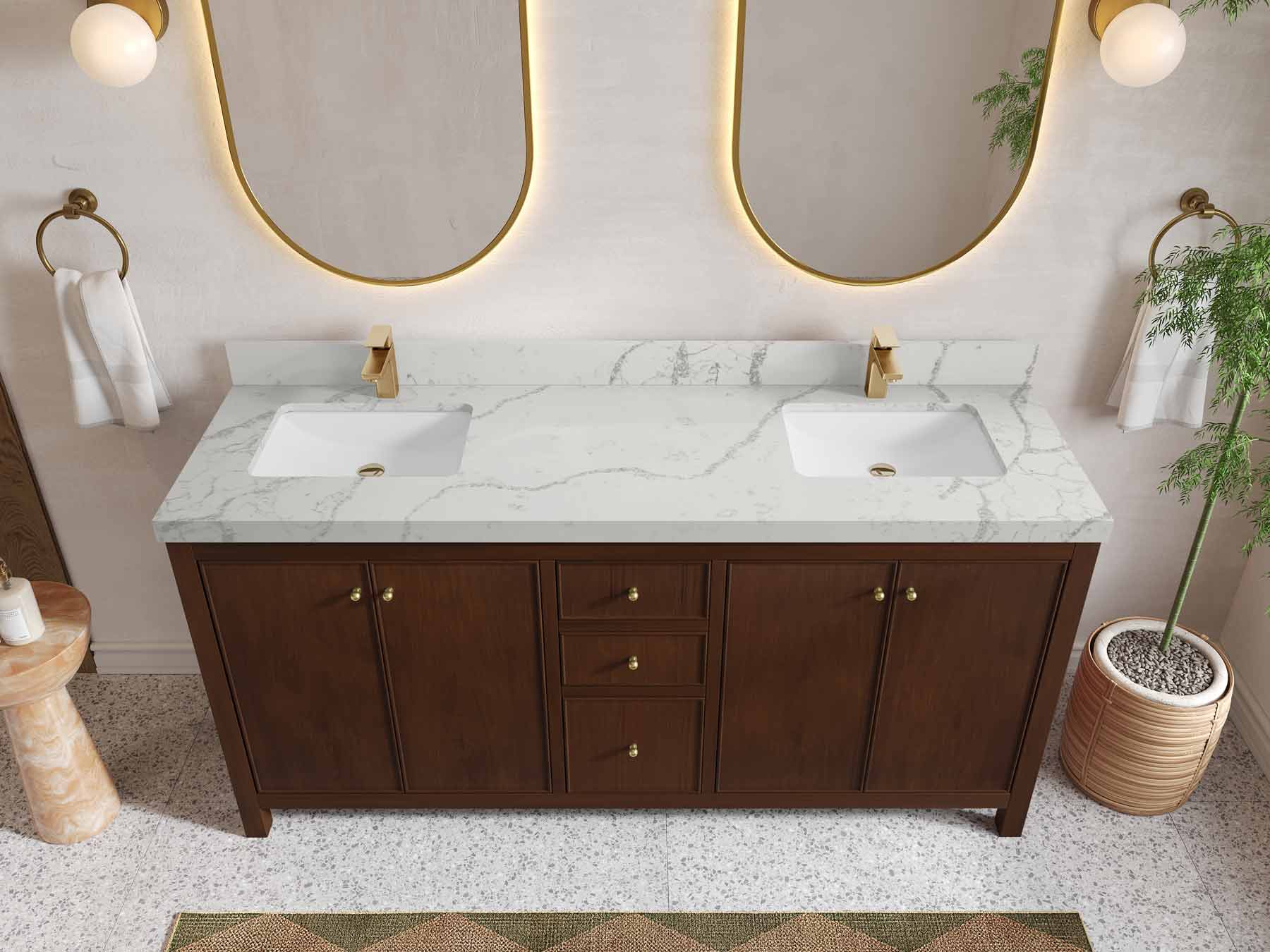 Faucet Hole(S): Comes with Single Faucet, 8 (in.) Widespread Faucet, Wall mount Faucets - Only Available for White Quartz and Carrara Quartz.