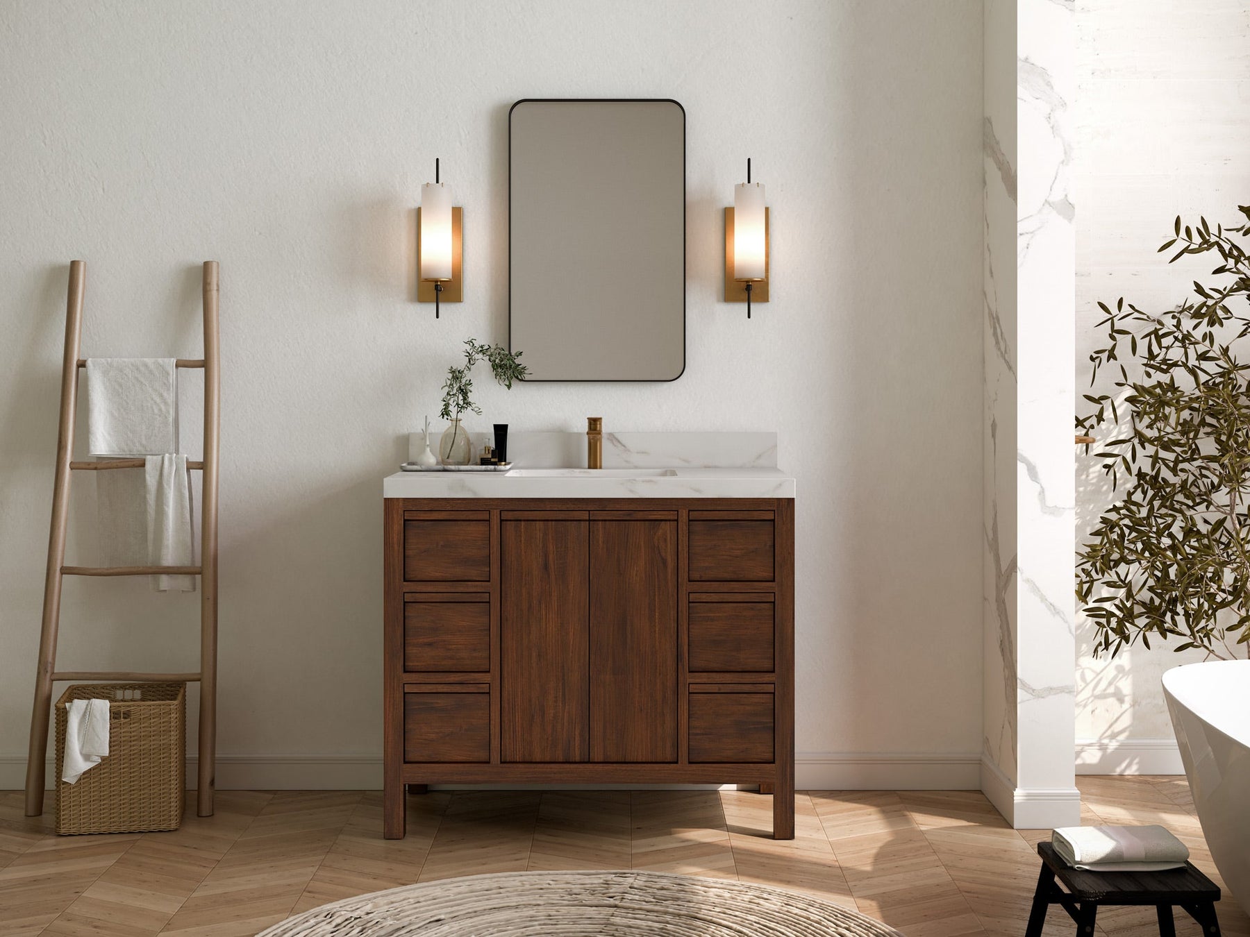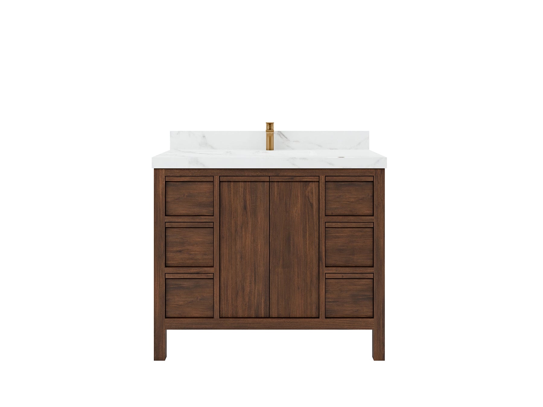 Elizabeth Teak 42 in. W x 22 in. D Single Sink Bathroom Vanity in Dark Walnut with 2 in Calacatta Nuvo Quartz Countertop