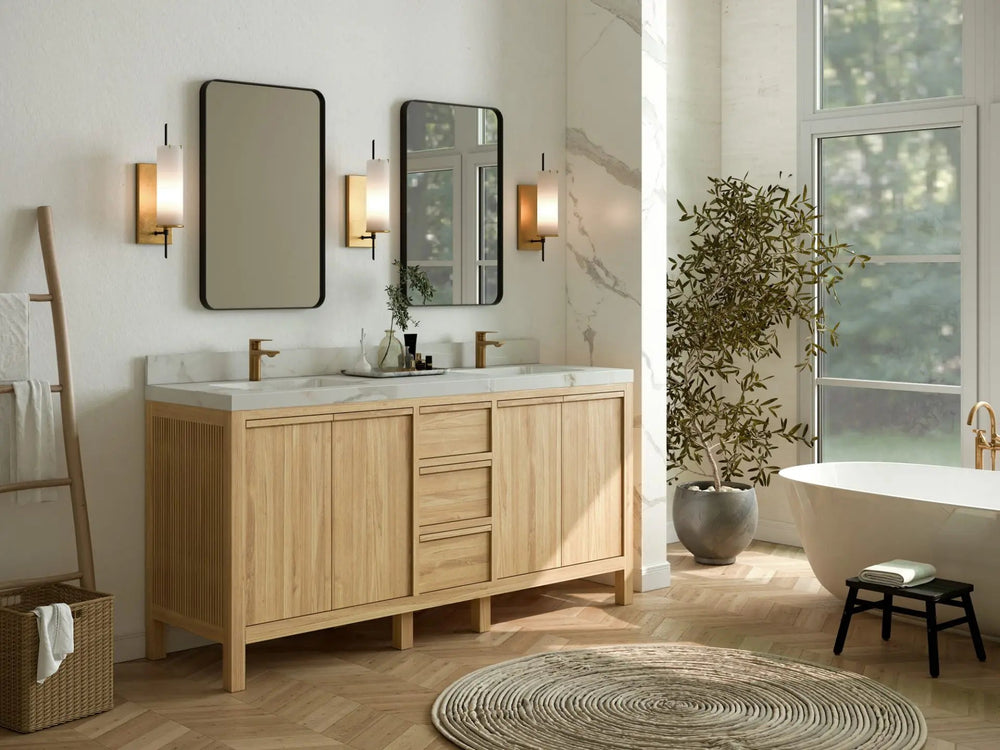 Vanity Countertops options: For Calacatta Laza Quartz, Empira White Quartz, Pure White Quartz we have 2 options Straight-Mitered Edge & Double Cove Edge, For Calacatta Black Quartz, Calacatta Gold Quartz, Calacatta Nuvo Quartz, Carrara Marble, Carrara Quartz, Pearl Light Gray Quartz, Piatra Gray Quartz, Venatino Quartz, and Light Concrete Gray Quartz we only have Straight - Mitered Edge option.