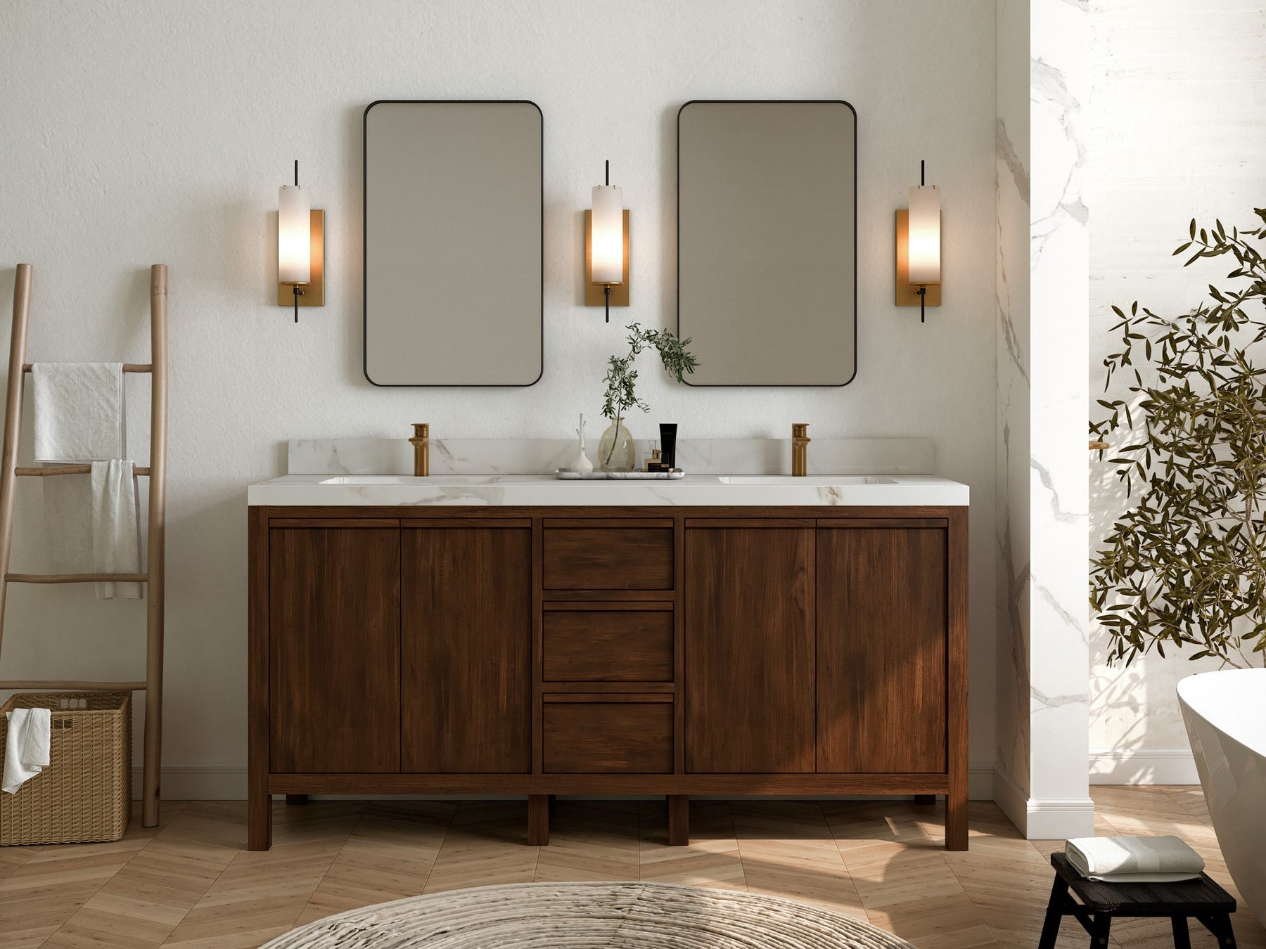 Elizabeth Teak 72 in. W x 22 in. D Double Sink Bathroom Vanity in Dark Walnut with 2 in Calacatta Sienna Quartz Countertop