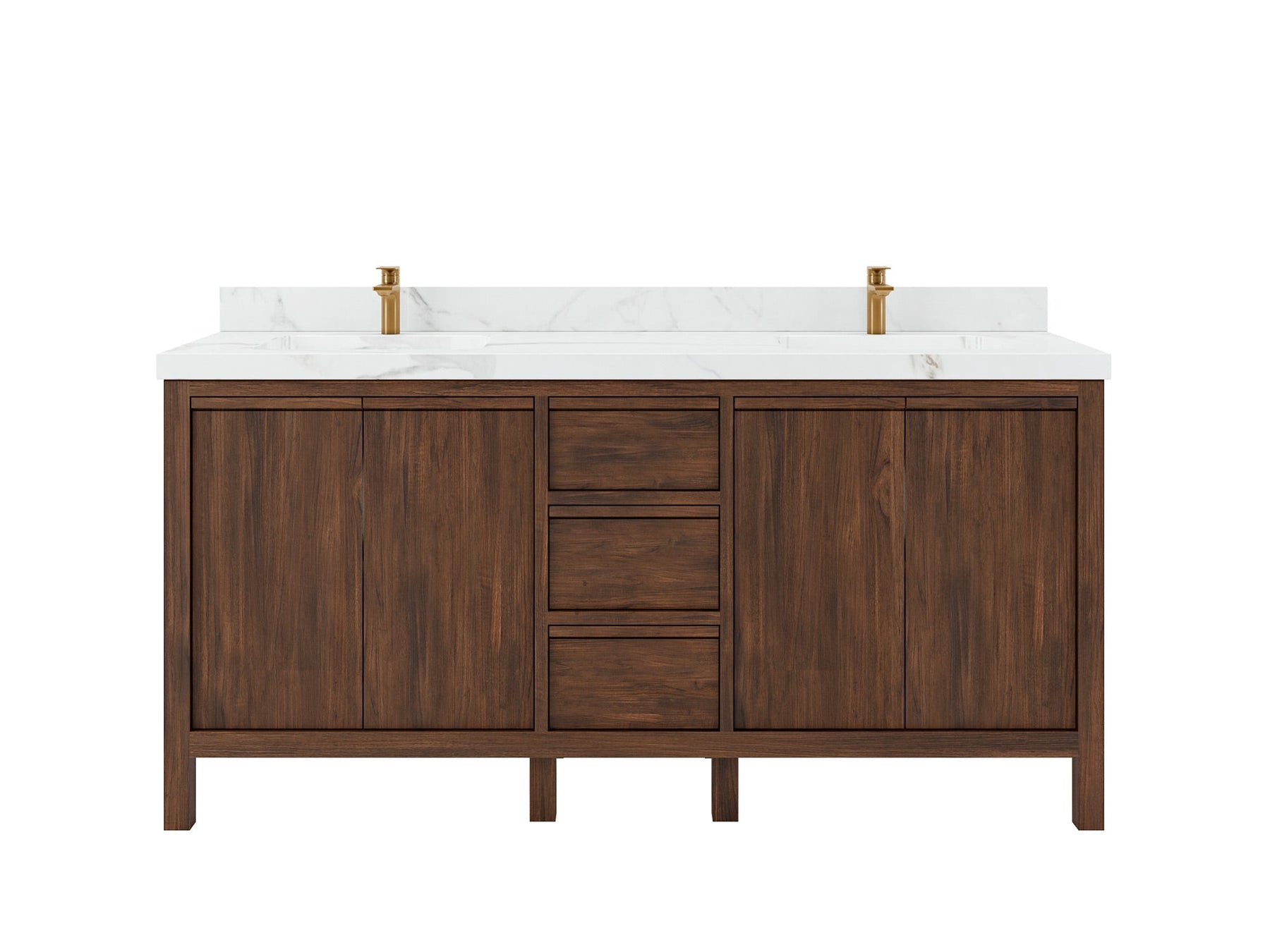 Elizabeth Teak 72 in. W x 22 in. D Double Sink Bathroom Vanity in Dark Walnut with 2 in Calacatta Nuvo Quartz Countertop