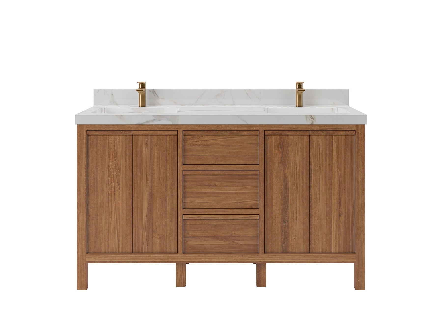 Elizabeth Teak Wood 60 in. W x 22 in. D Double Sink Bathroom Vanity | Dark Natural Teak