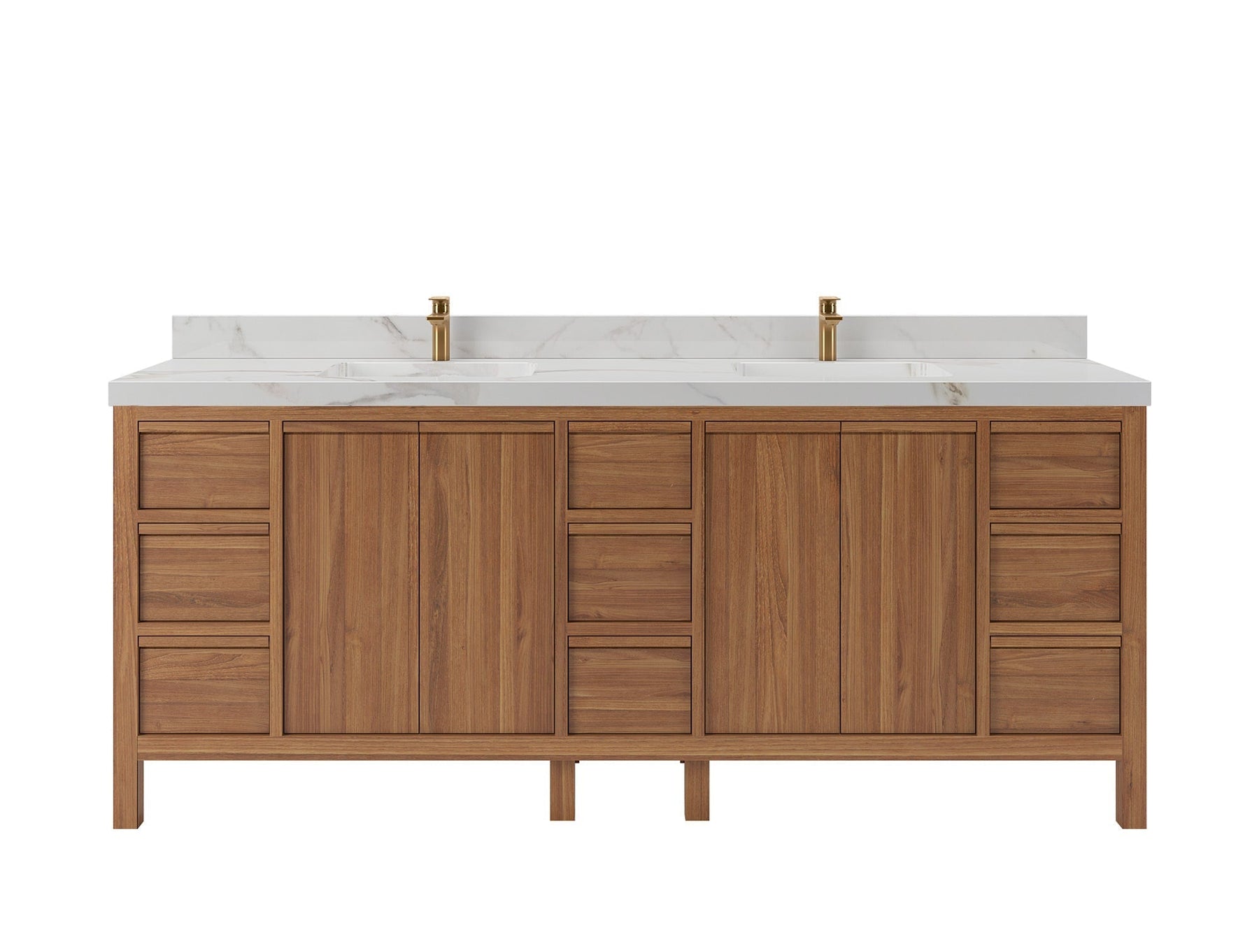Elizabeth Teak Wood 84 in. W x 22 in. D Double Sink Bathroom Vanity | Dark Natural Teak