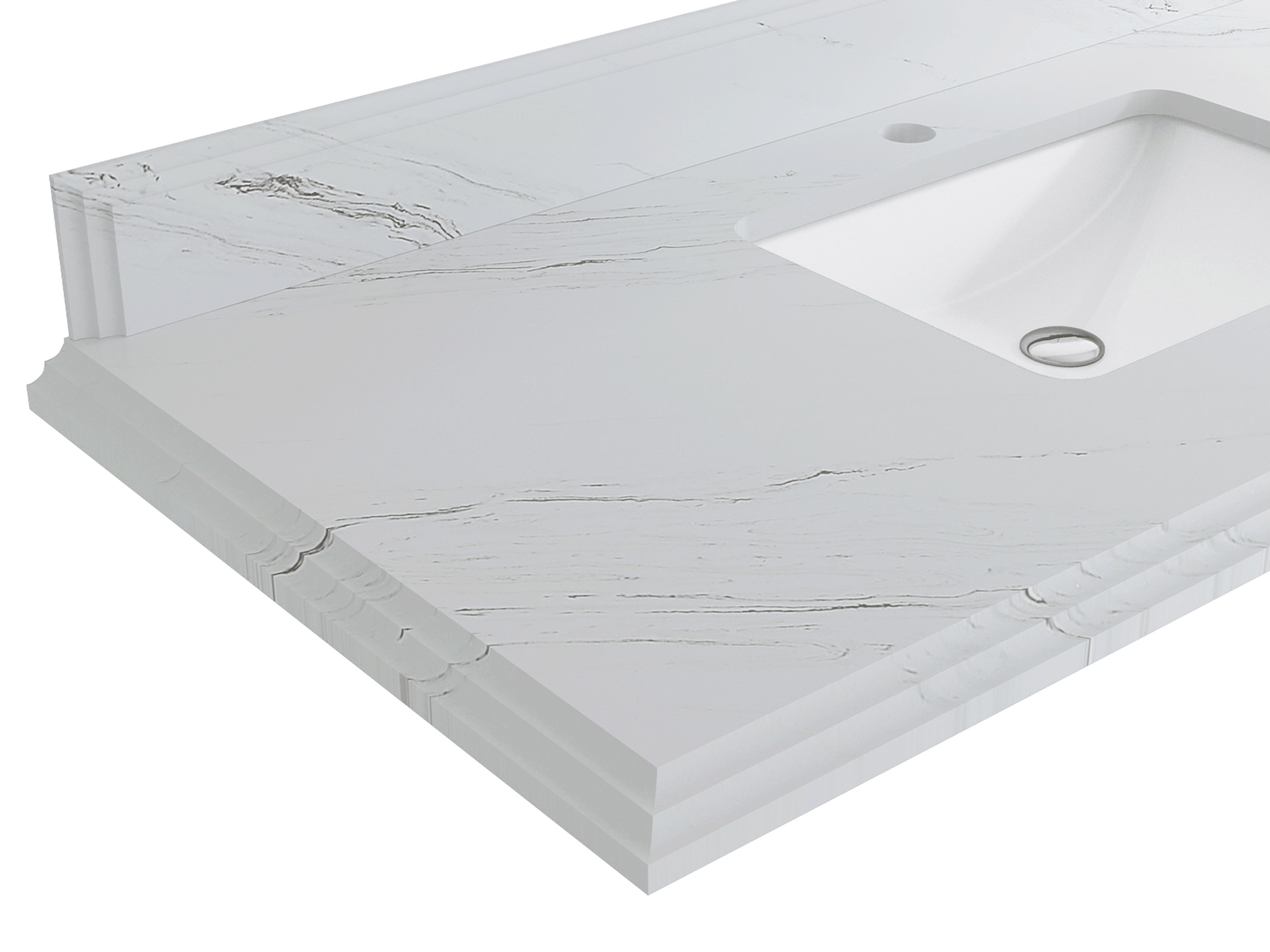 Vanity Countertops options: For Calacatta Laza Quartz, Empira White Quartz, Pure White Quartz we have 2 options Straight-Mitered Edge and Double Cove Edge; For Calacatta Nuvo Quartz, Carrara Marble, Carrara Quartz, Piatra Gray Quartz, Calacatta Black, Calacatta Gold, Venatino Quartz, Pearl Light Gray, Viola Brown, Viola Gold, Viola Night, Viola Biagio, Calacatta Sienna, Calacatta Poanazzo we only have Straight - Mitered Edge option.