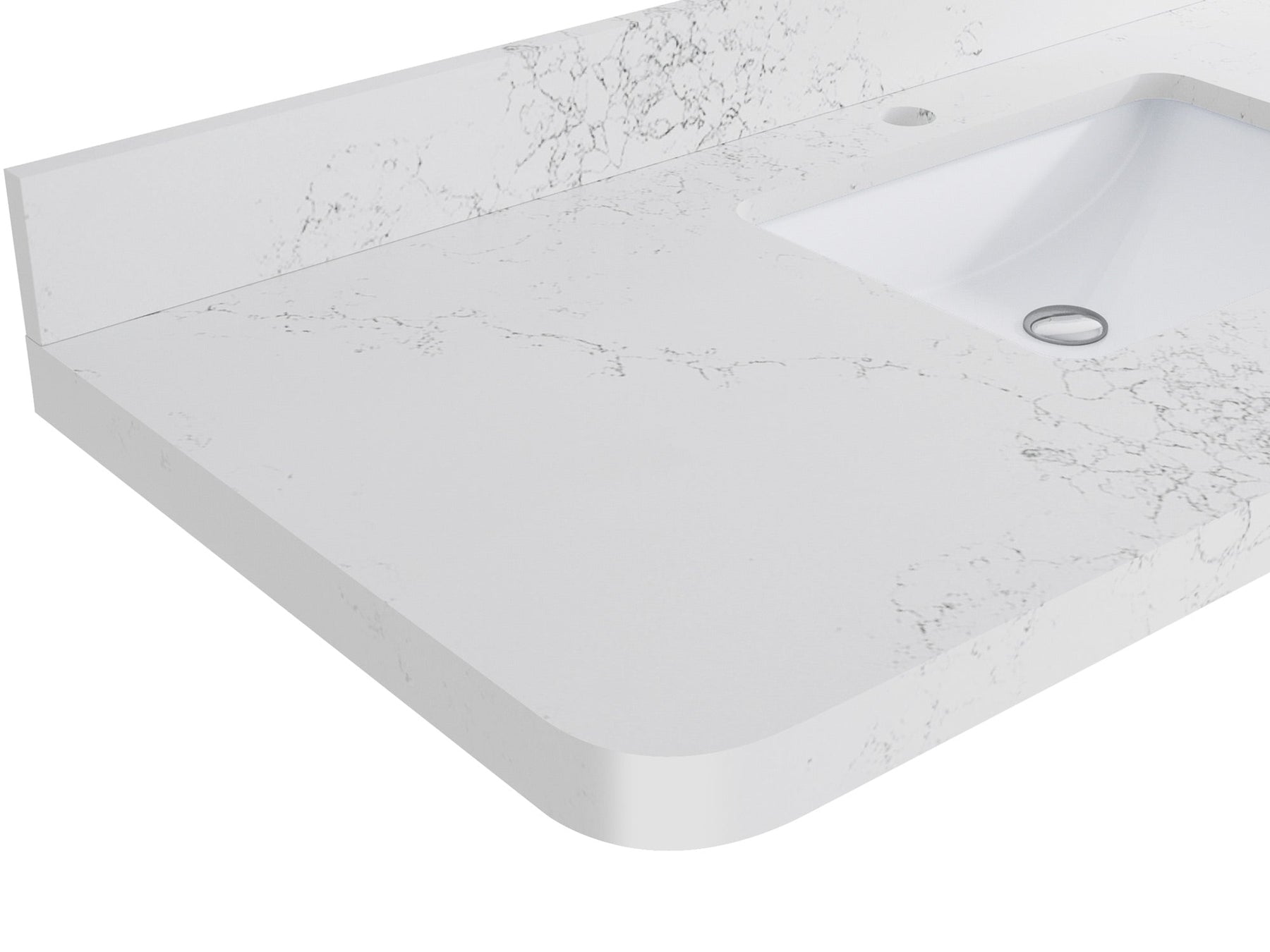 Faucet Hole(S): Comes with Single Faucet, 8 (in.) Widespread Faucet, Wall mount Faucets - Only Available for White Quartz and Carrara Quartz. (PLEASE ADD THIS CONFIGURATION UNDER COUNTERTOPS SECTION )
