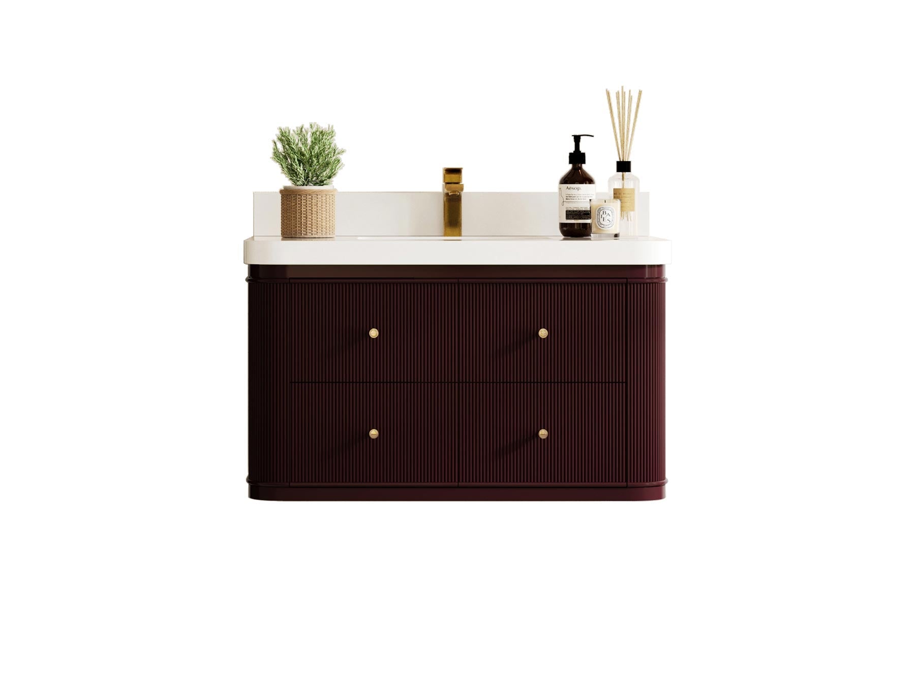 Hampton Floating 36 in. W x 22 in. D Center Sink Bathroom Vanity | Burgundy